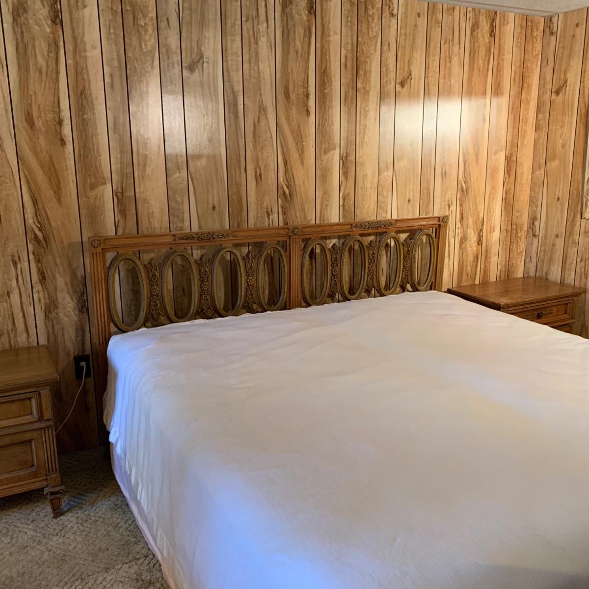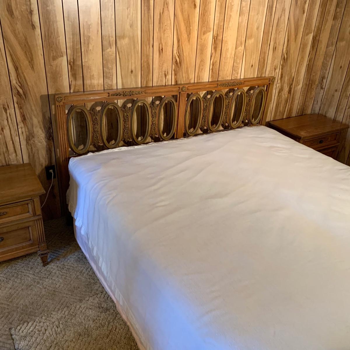 LOT 119: J B VanSciver King Sized Headboard and 2 Nightstands