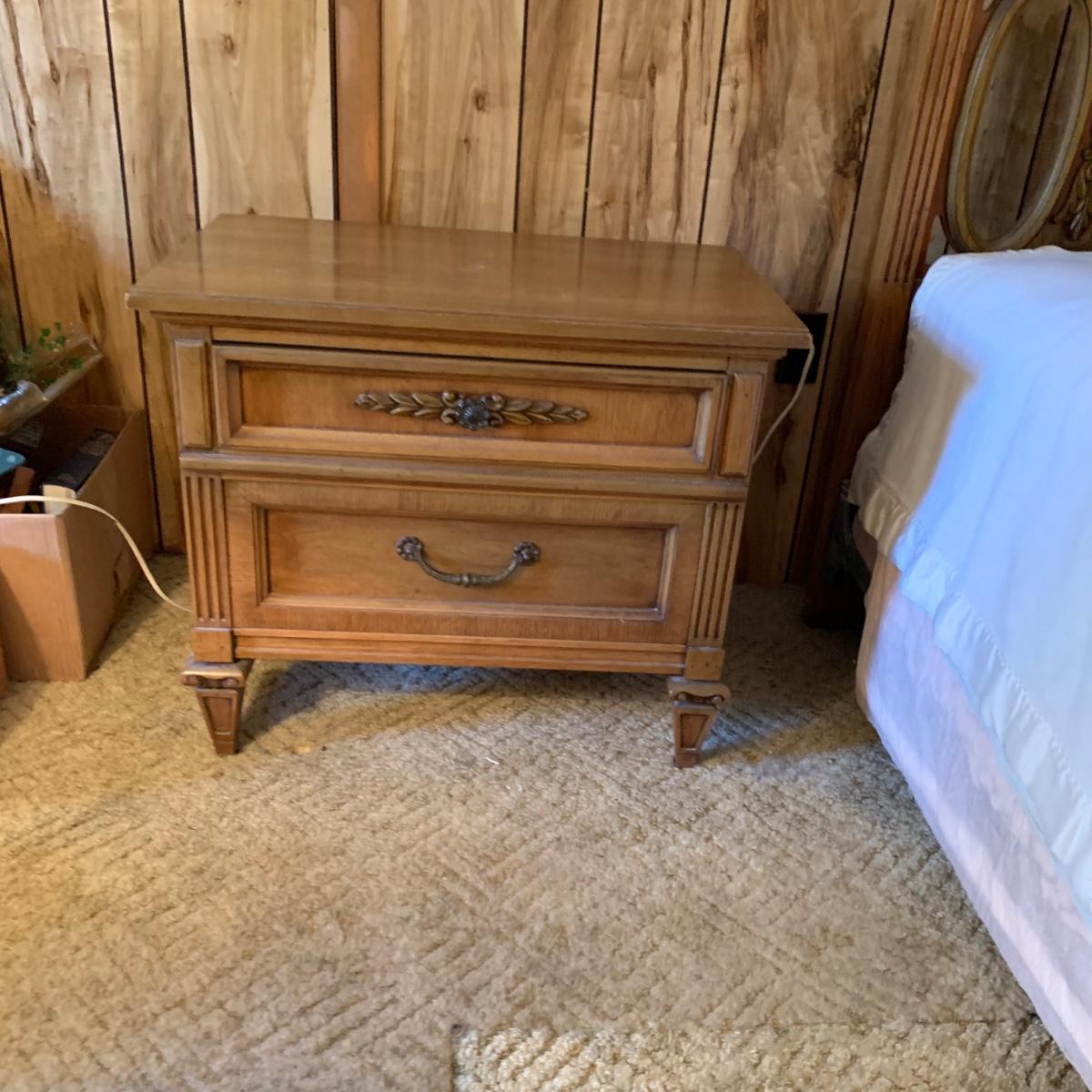 The Headboard is approximately 82” x 42” and the Nightstands are each 28” x 17” x 24”. Please see all pictures as they are the best representation of the items. The pictures show condition, measurements if taken, and what is included in the lot. Due to the large amount that we photograph and the time frame, we are not always able to take measurements. All items unless noted, are pre-owned and have been used. If you purchased furniture, you must bring help. We do not allow one person to carry large furniture out on their own. Bring help, tools and a truck for the safety of our client’s homes, and your personal safety. Any damages that result to the property including walls, and floors due to moving of the furniture will be charged to the buyer. Company policy. Thank you.