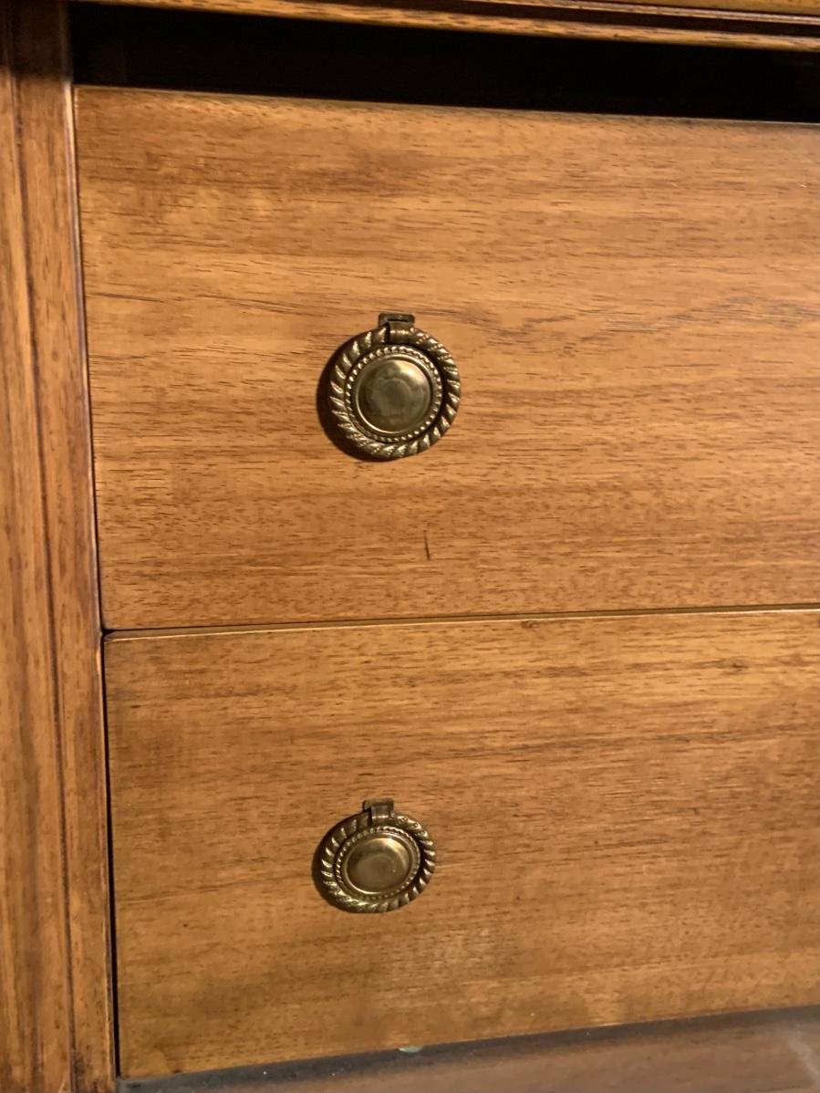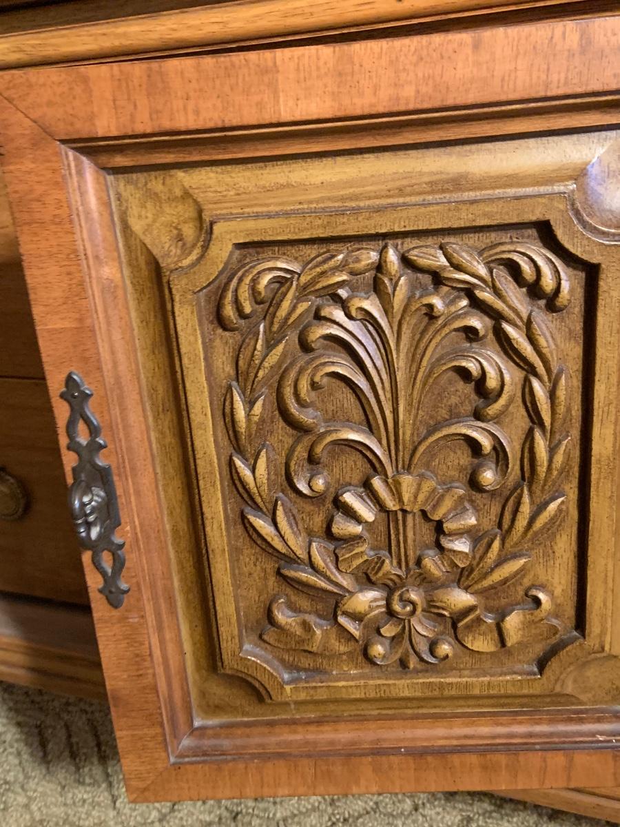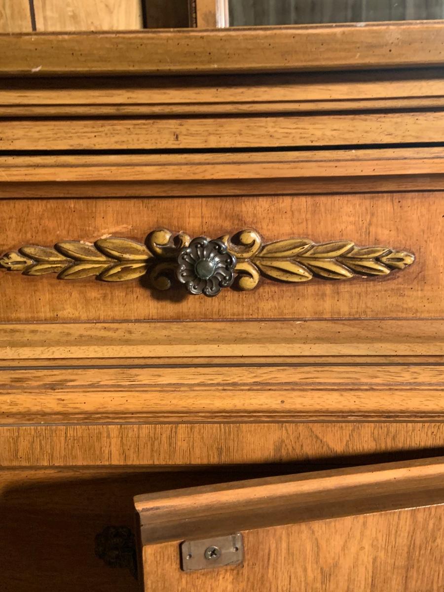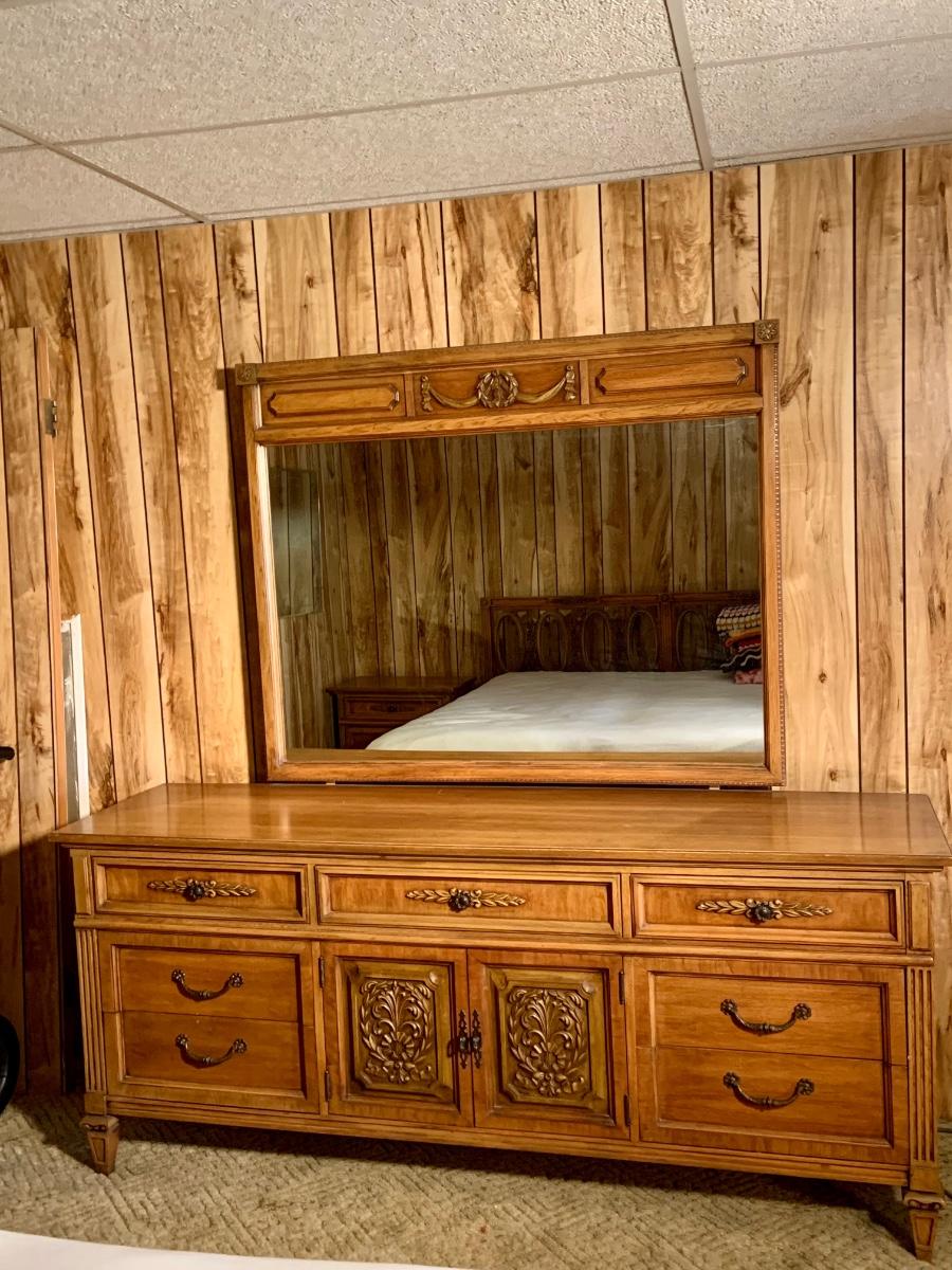 The dresser is approximately 75” x 20” x 32” and the Mirror is approximately 51” x 42”. Please see all pictures as they are the best representation of the items. The pictures show condition, measurements if taken, and what is included in the lot. Due to the large amount that we photograph and the time frame, we are not always able to take measurements. All items unless noted, are pre-owned and have been used. If you purchased furniture, you must bring help. We do not allow one person to carry large furniture out on their own. Bring help, tools and a truck for the safety of our client’s homes, and your personal safety. Any damages that result to the property including walls, and floors due to moving of the furniture will be charged to the buyer. Company policy. Thank you.