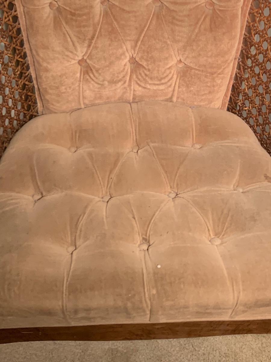 LOT:122G: Vintage Mid-Century Modern  Upholstered Cane Barrel Chair
