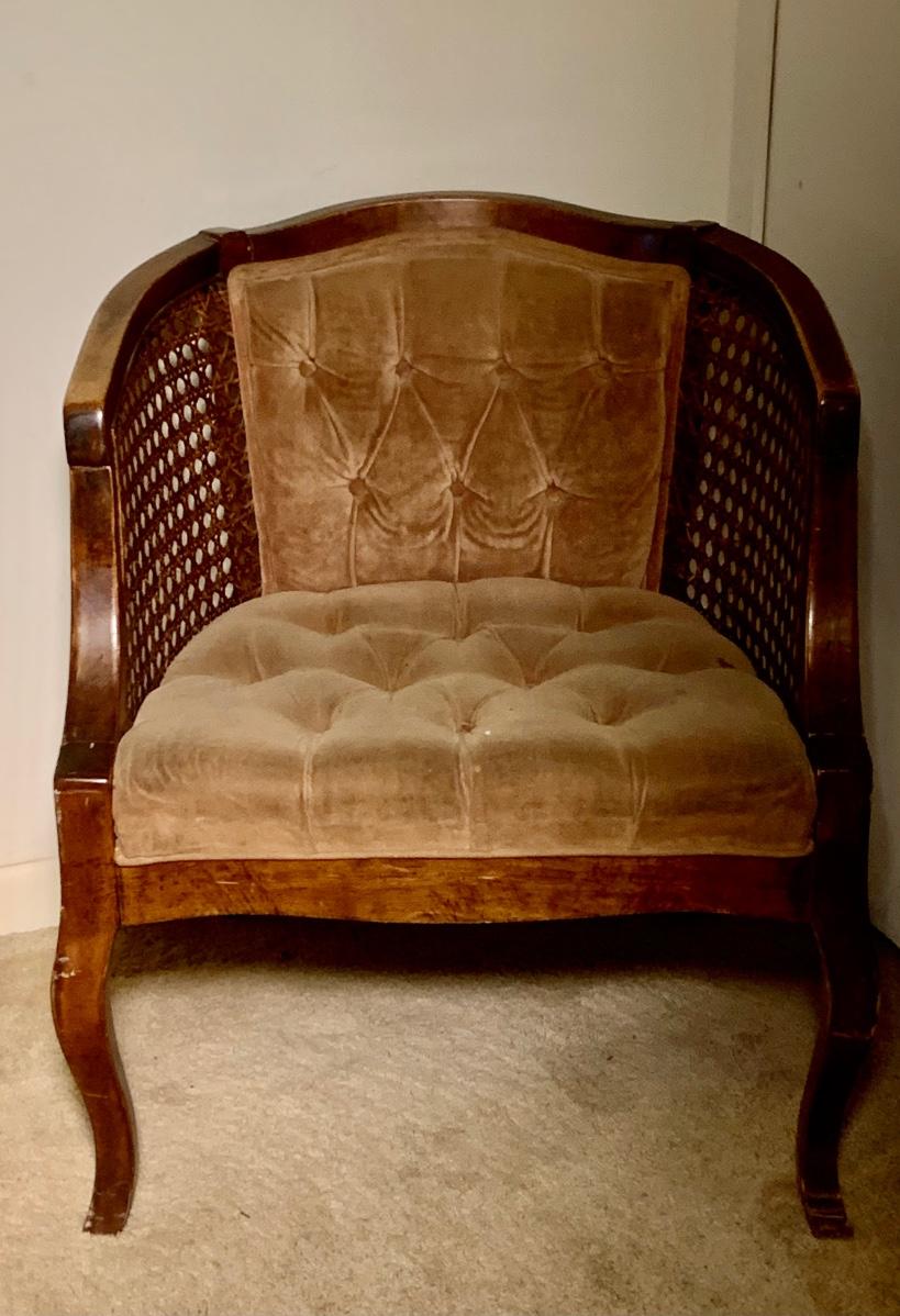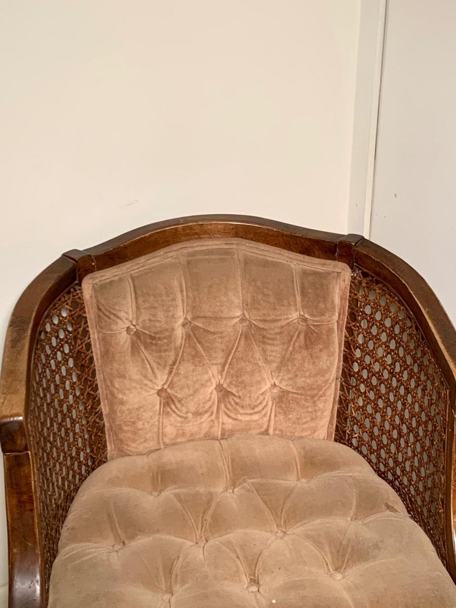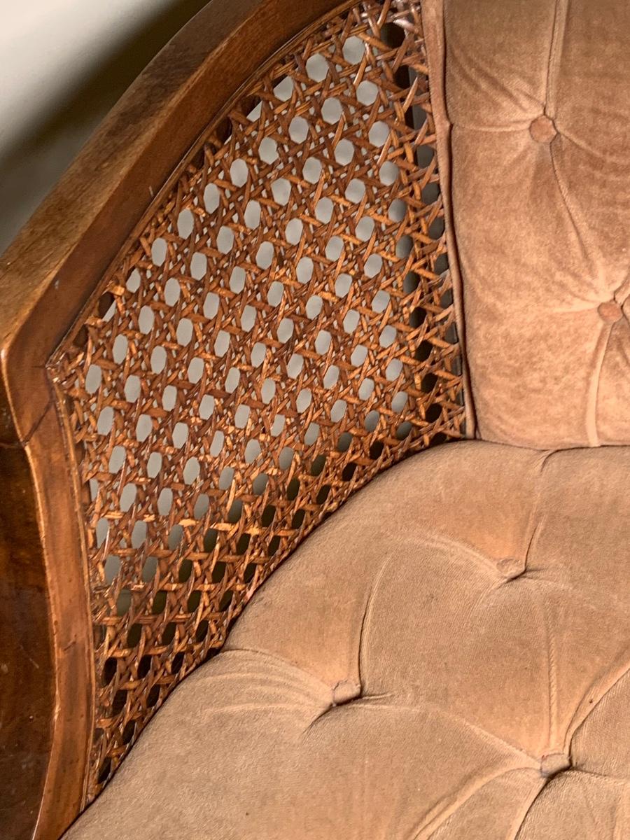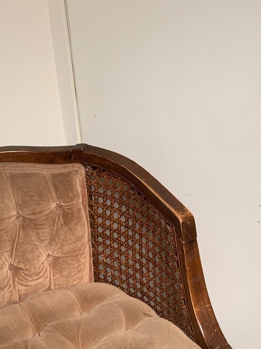 LOT:122G: Vintage Mid-Century Modern Upholstered Cane Barrel Chair