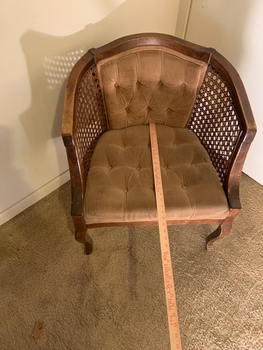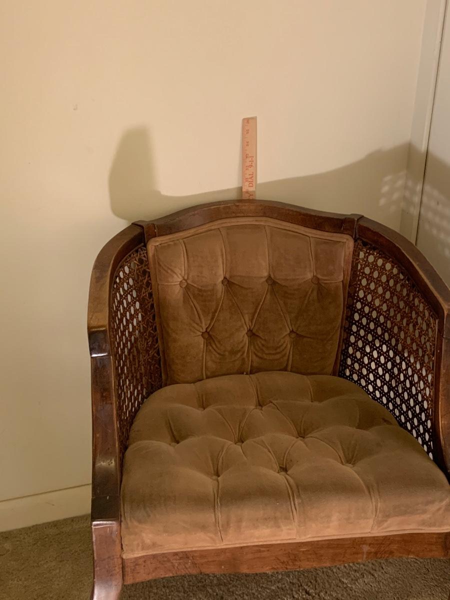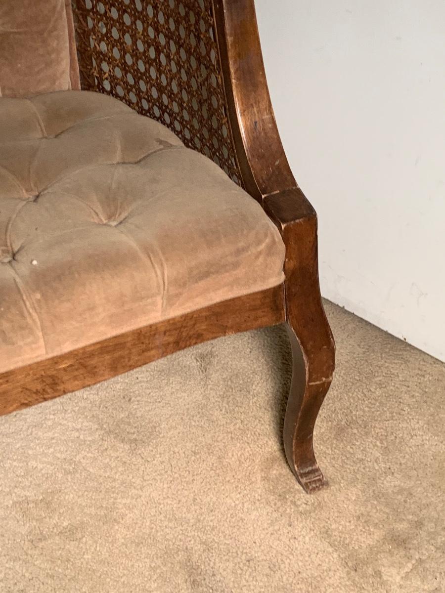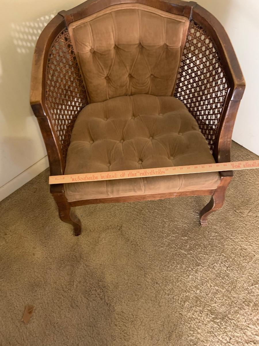 LOT:122G: Vintage Mid-Century Modern Upholstered Cane Barrel Chair