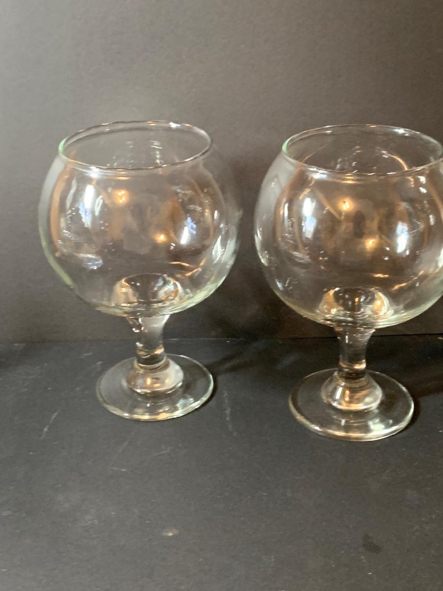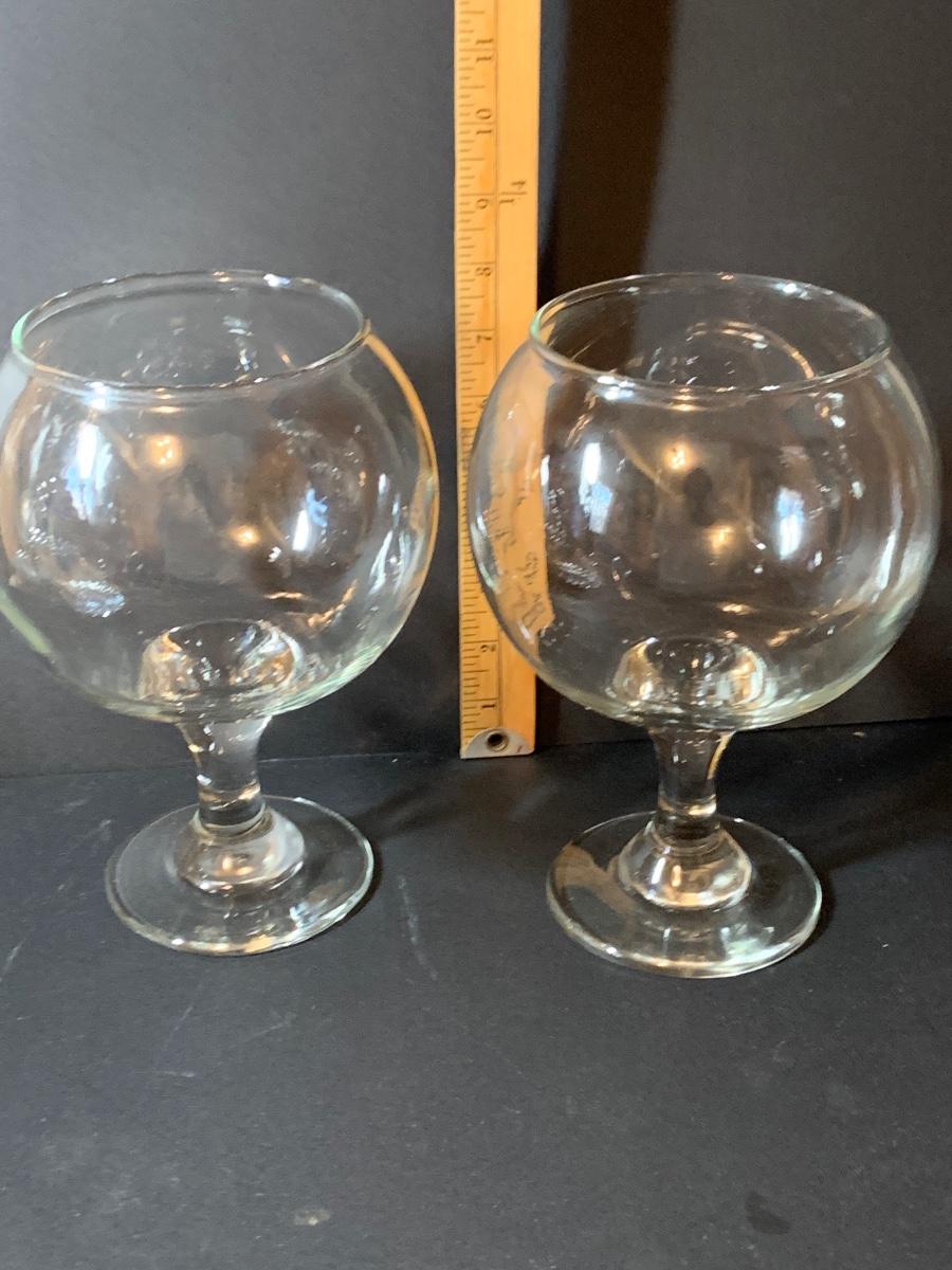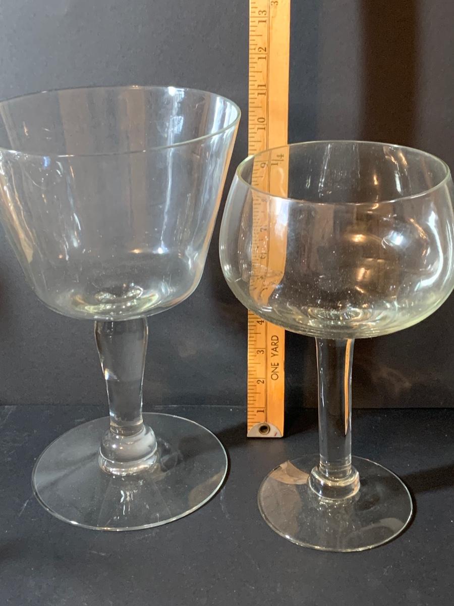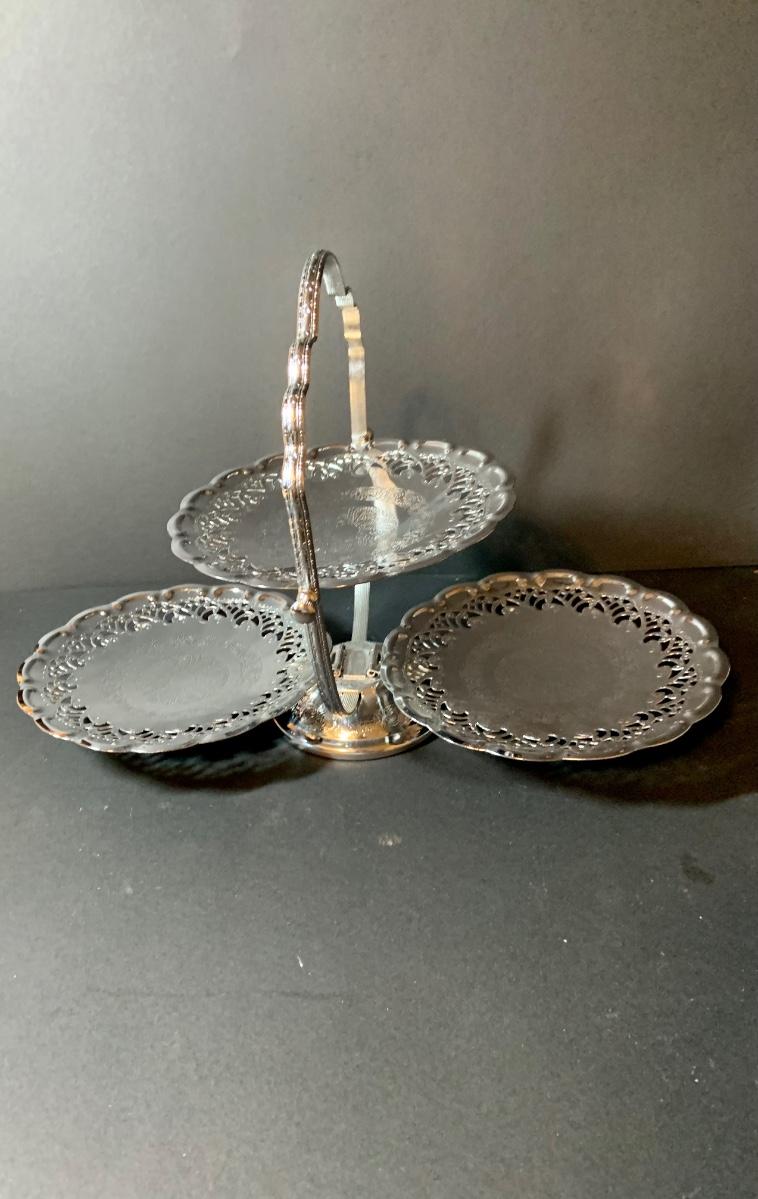 LOT:131G: 5 Large Decorative Glasses and 2 Fan Shaped 3 Tier Serving Platter