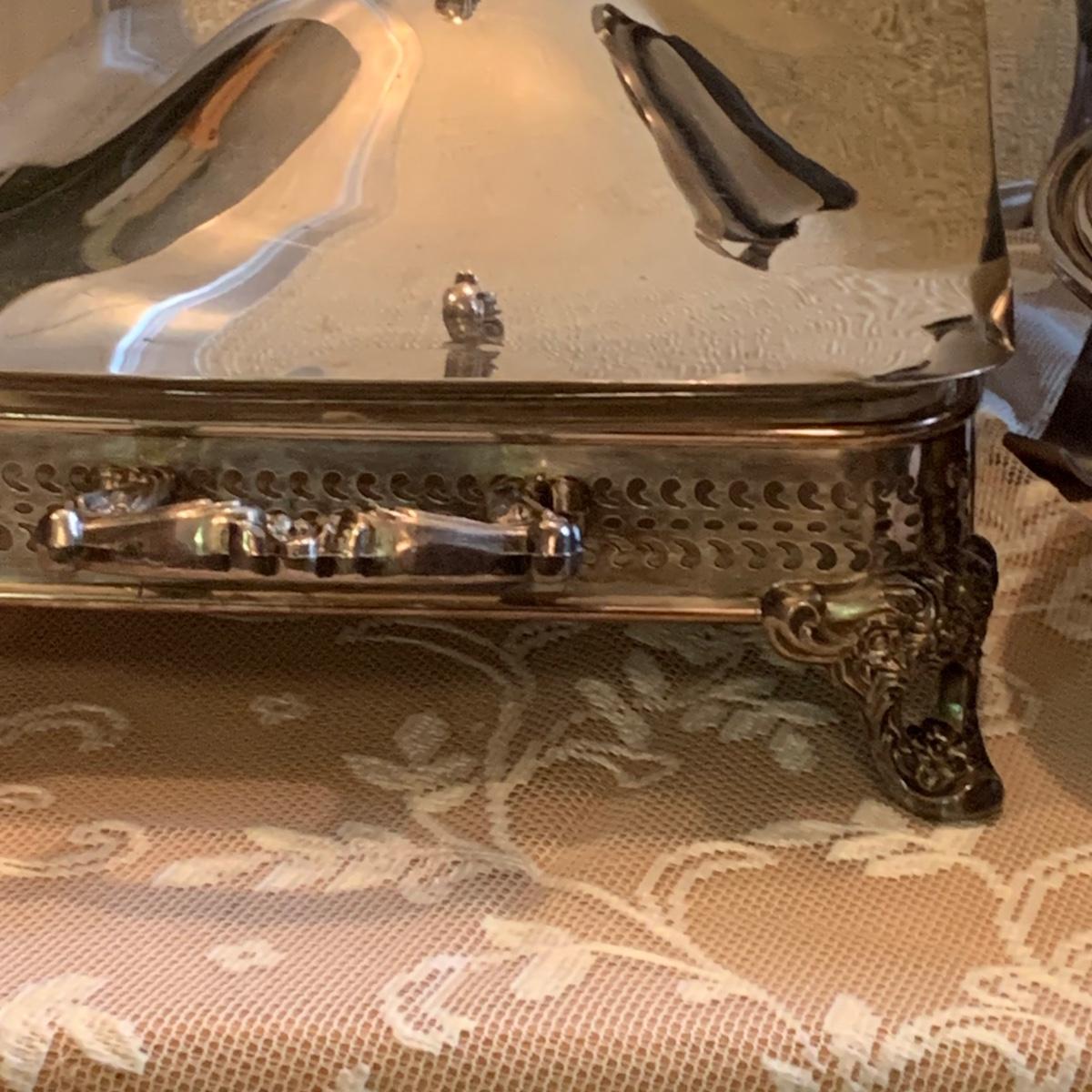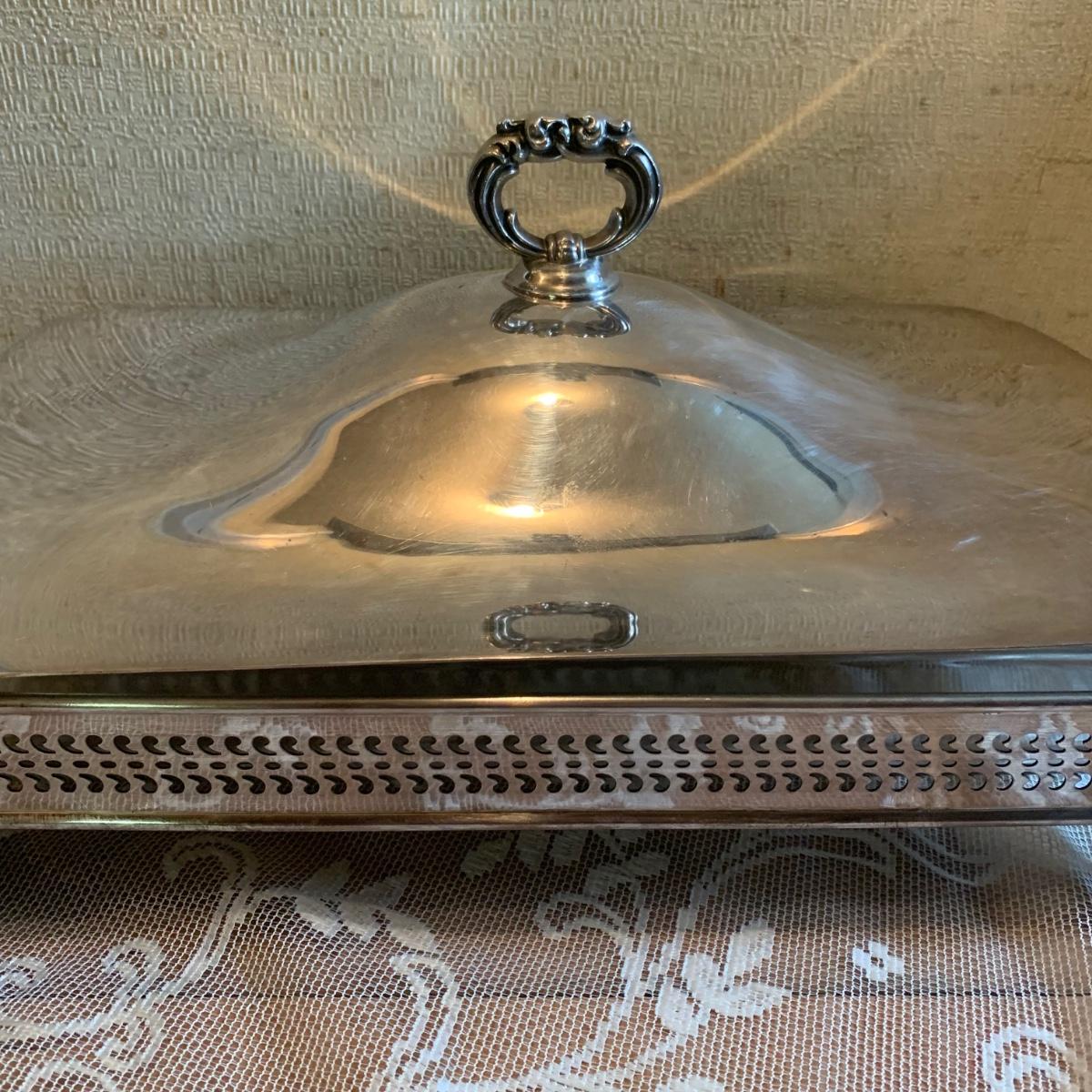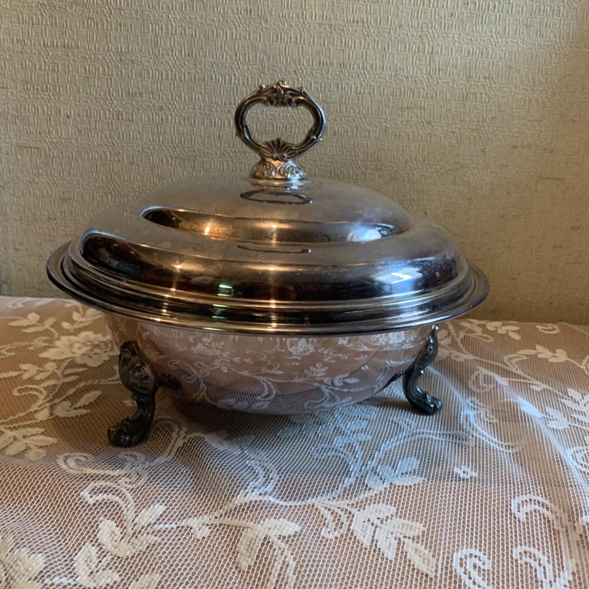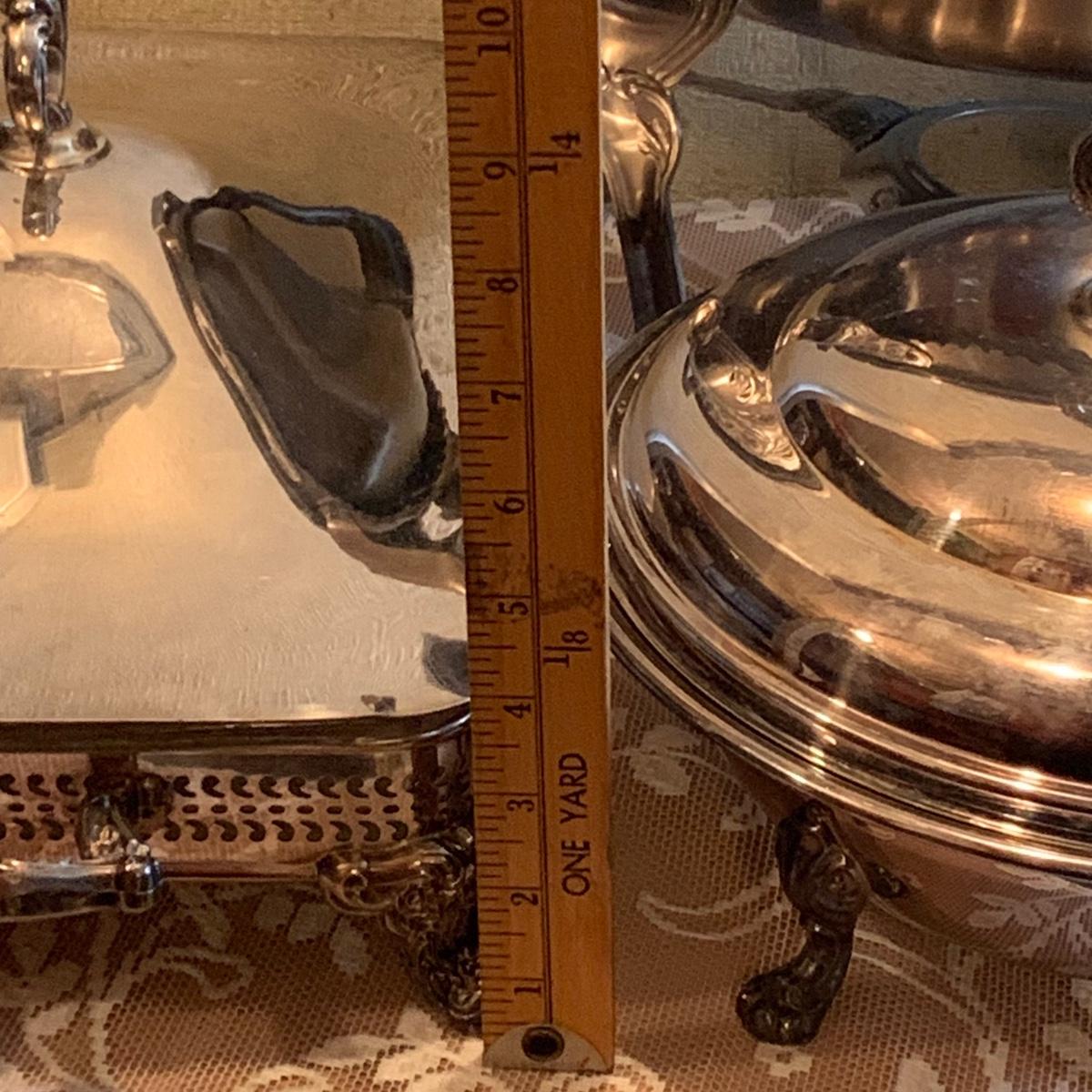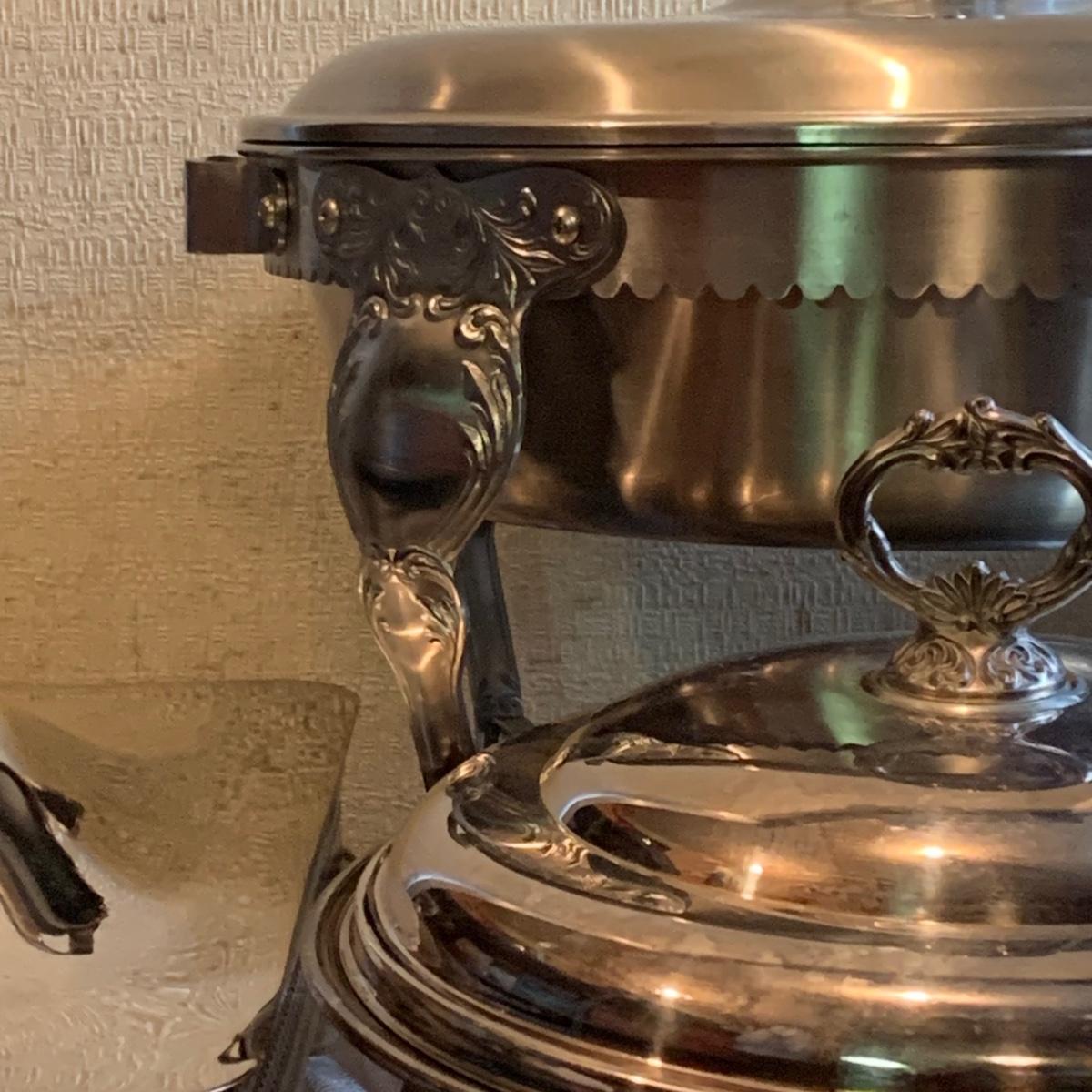 LOT 137R: Vintage Chafing Dish &  Footed and  Covered  Serving Dishes w/Pyrex Inserts