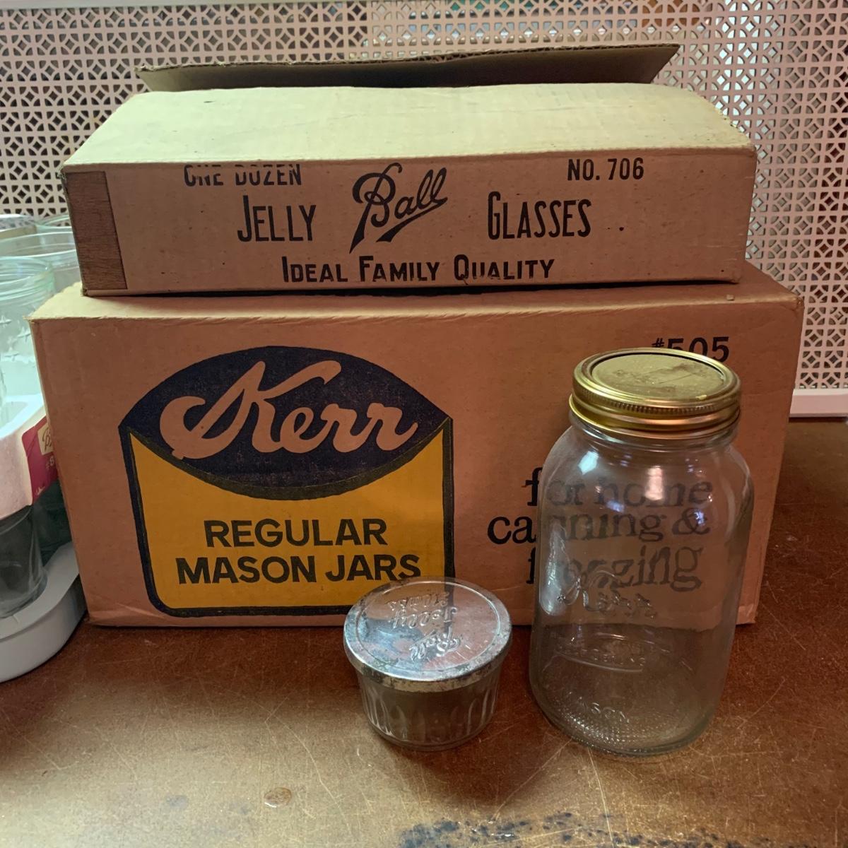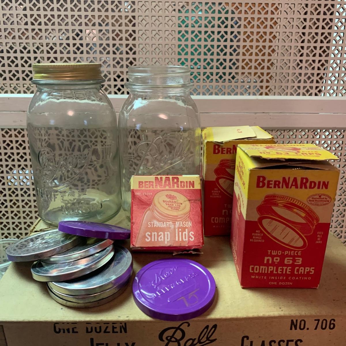 LOT 138R: Canning Collection: Vintage Jars w/Tin Lids, Kerr Jars w/Lids