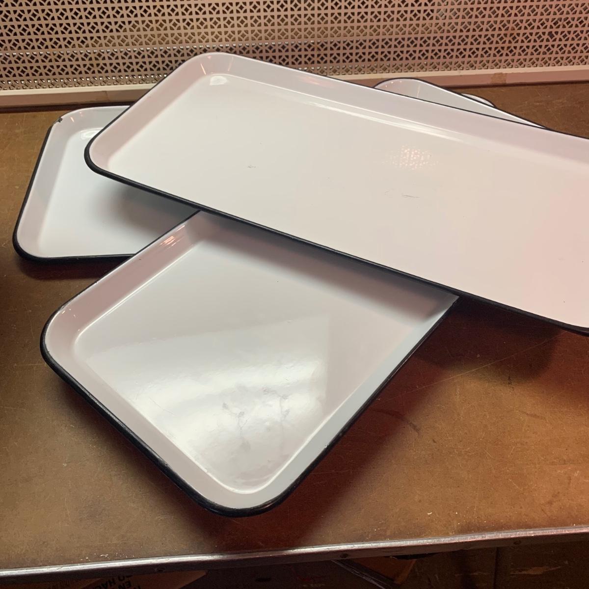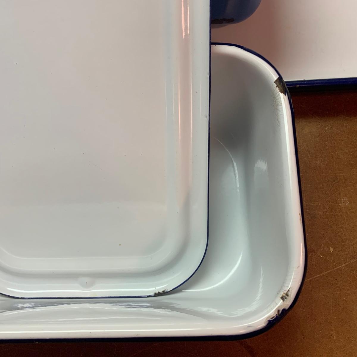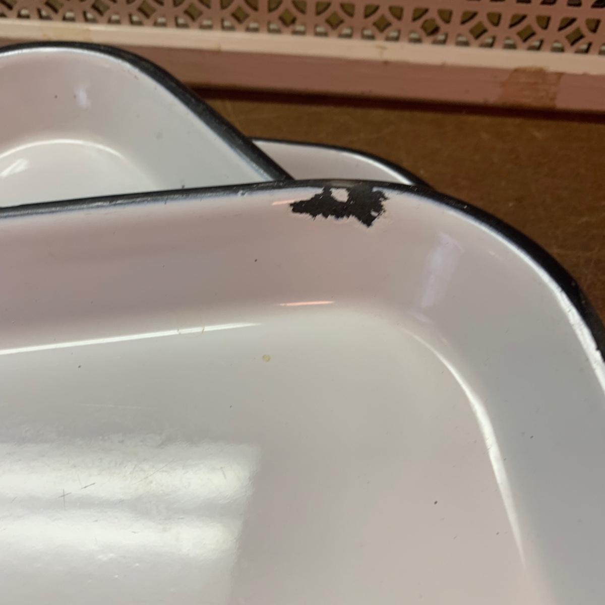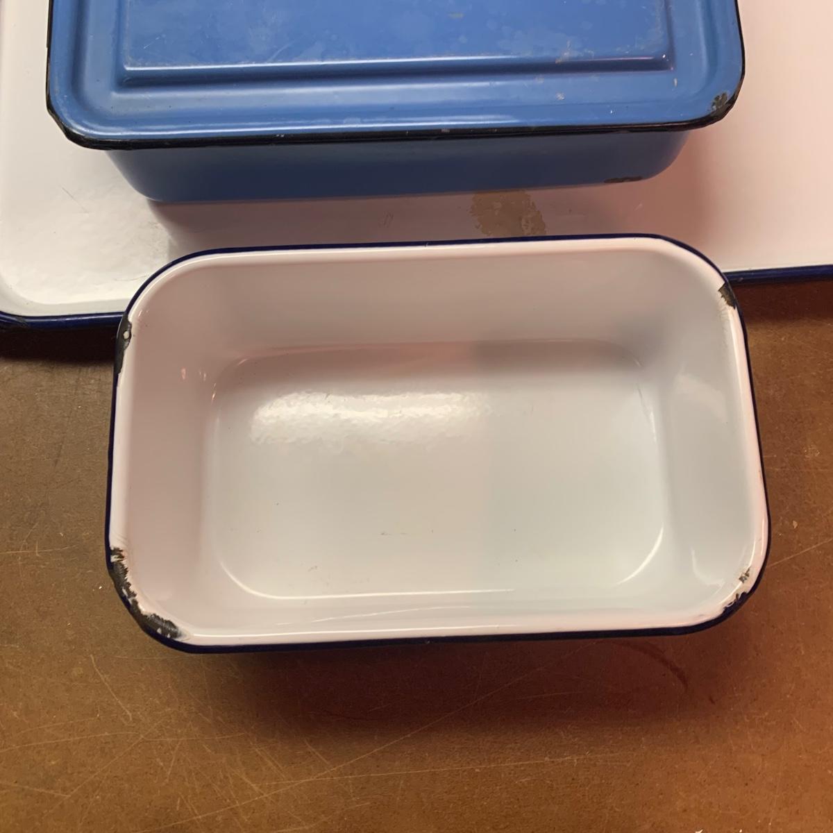 LOT 140R: Vintage Enamel Metal Refrigerator Dishes, Trays and Oval Platters
