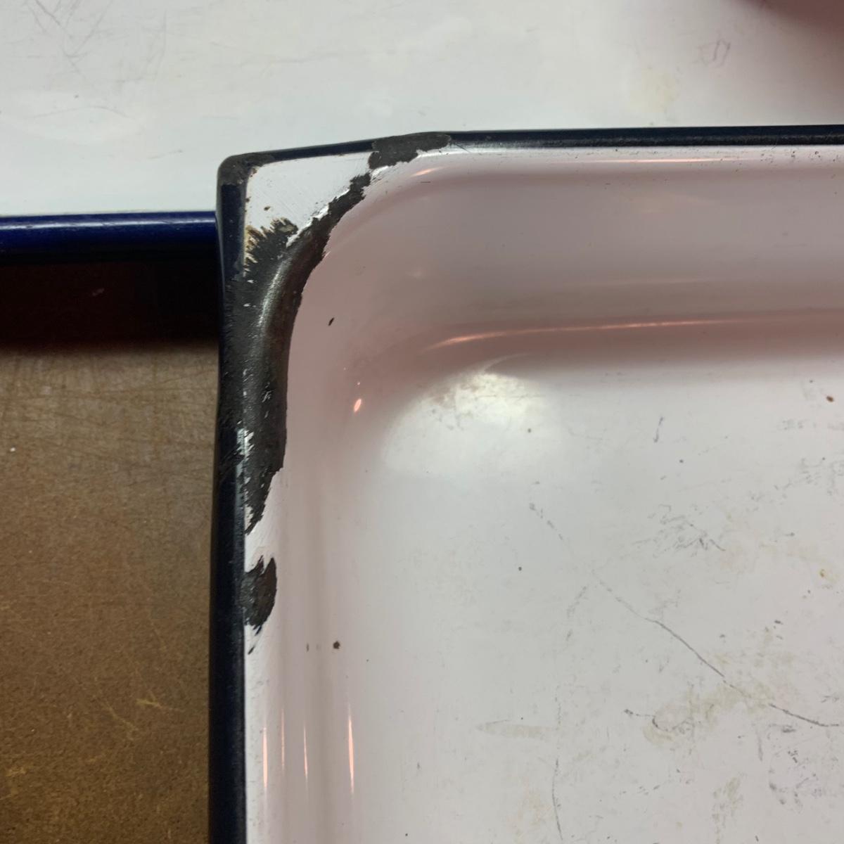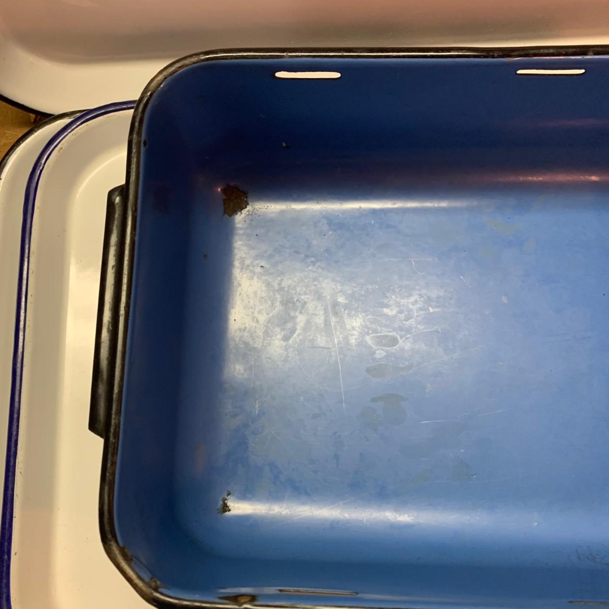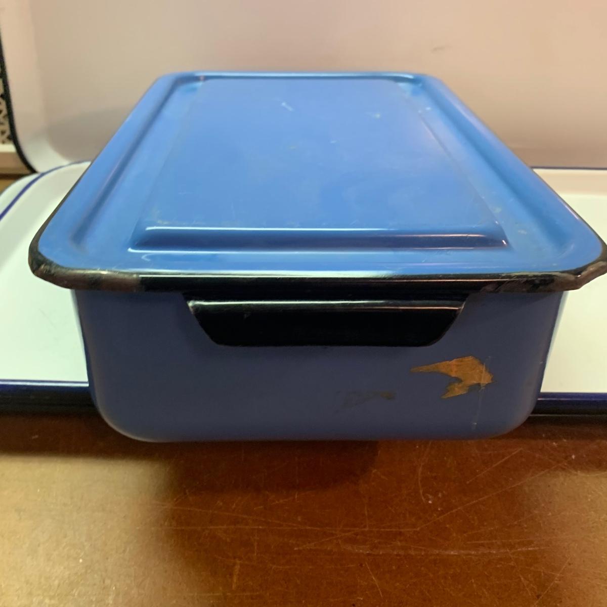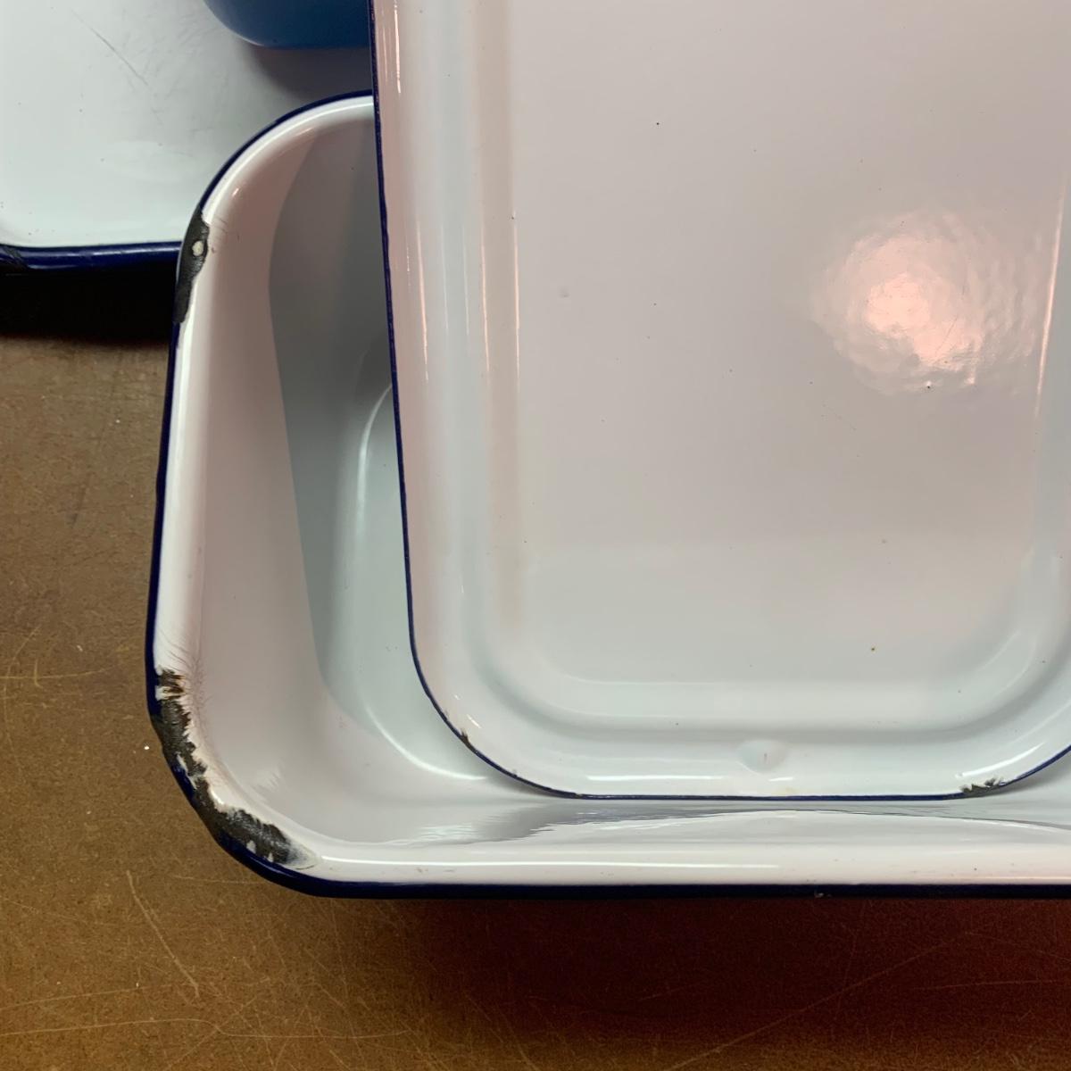 LOT 140R: Vintage Enamel Metal Refrigerator Dishes, Trays and Oval Platters