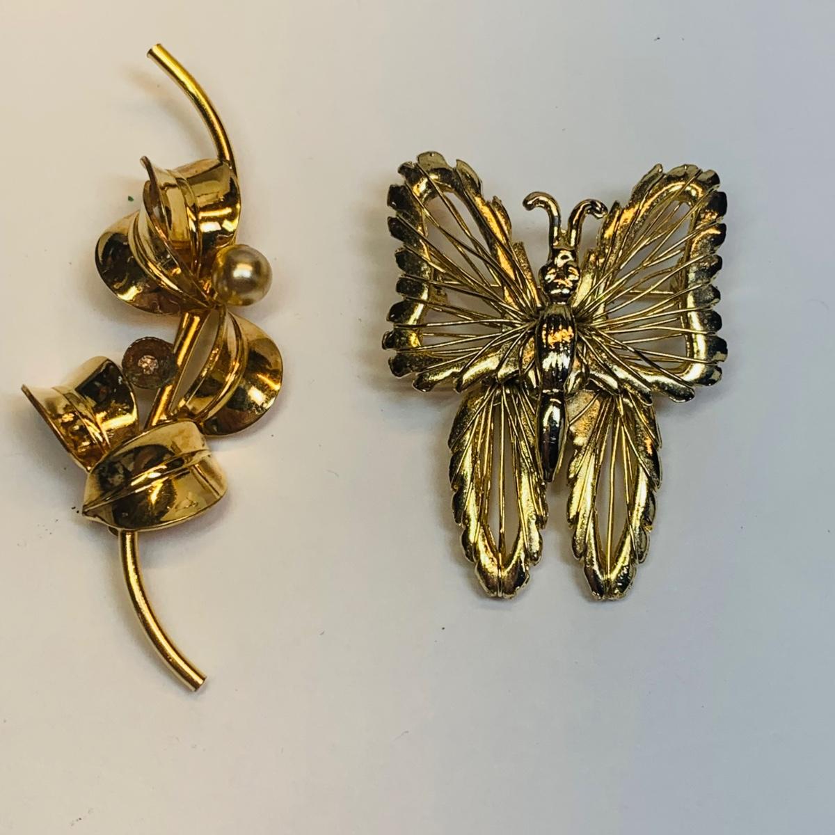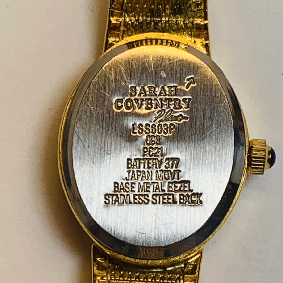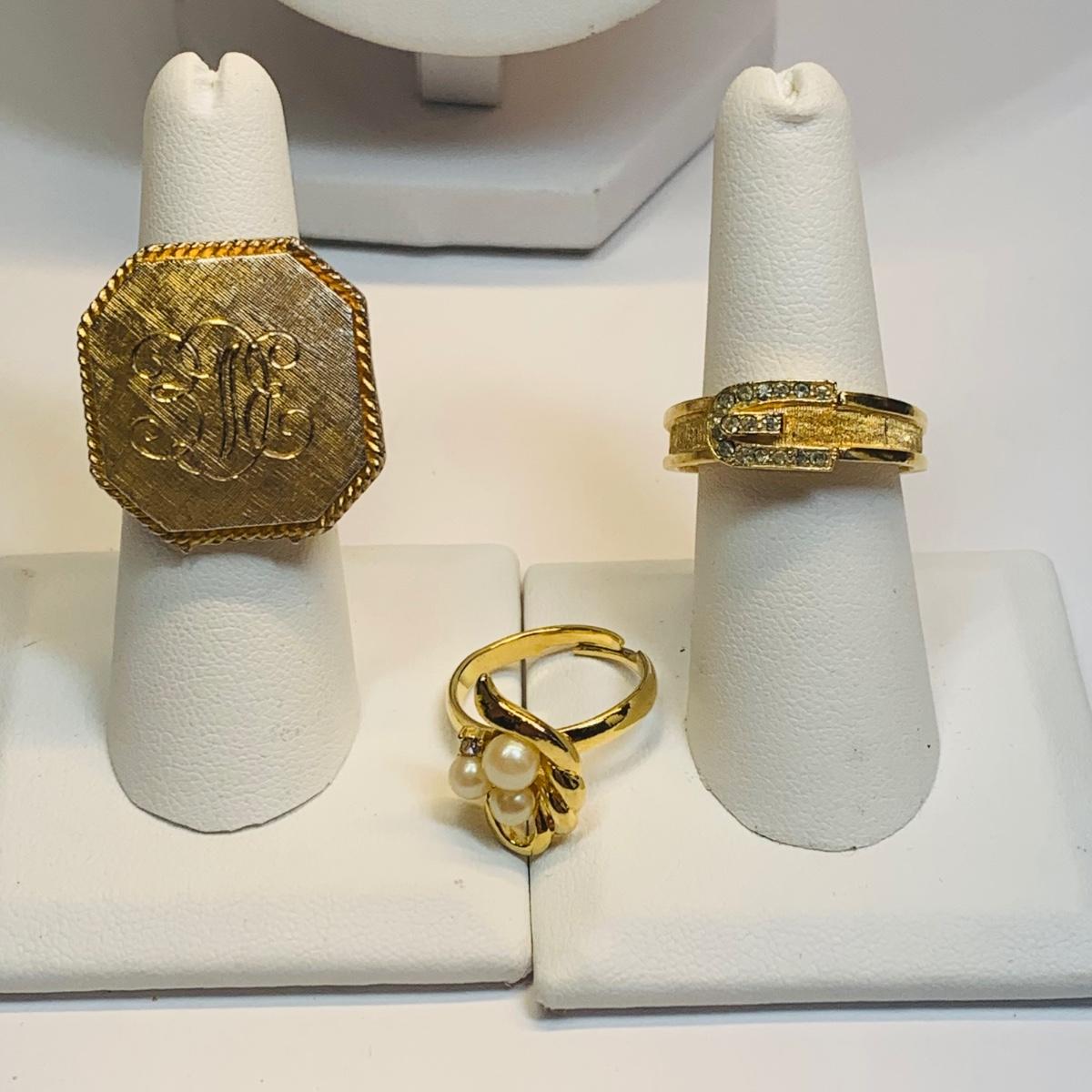 LOT 148R: Sarah Coventry Watch (Missing Stones), Adjustable Rings, Lucky Pig Kef Chain, 30" Necklace Gold Fill Pin w/Missing Pearl