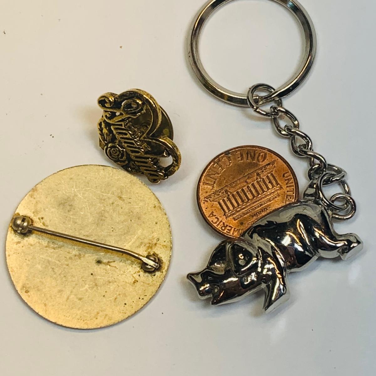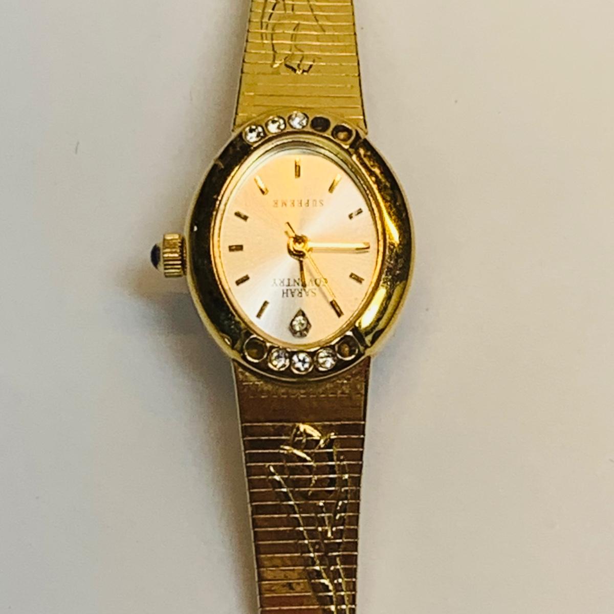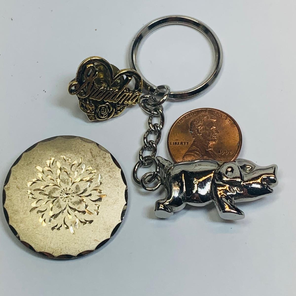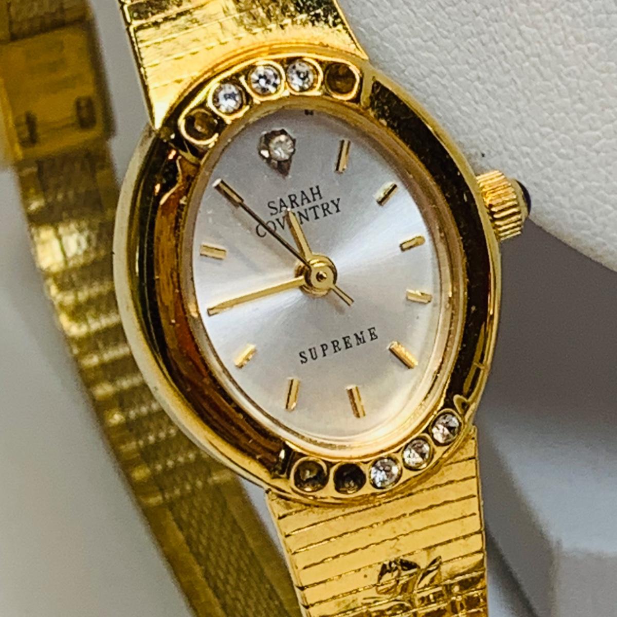 LOT 148R: Sarah Coventry Watch (Missing Stones), Adjustable Rings, Lucky Pig Kef Chain, 30" Necklace Gold Fill Pin w/Missing Pearl