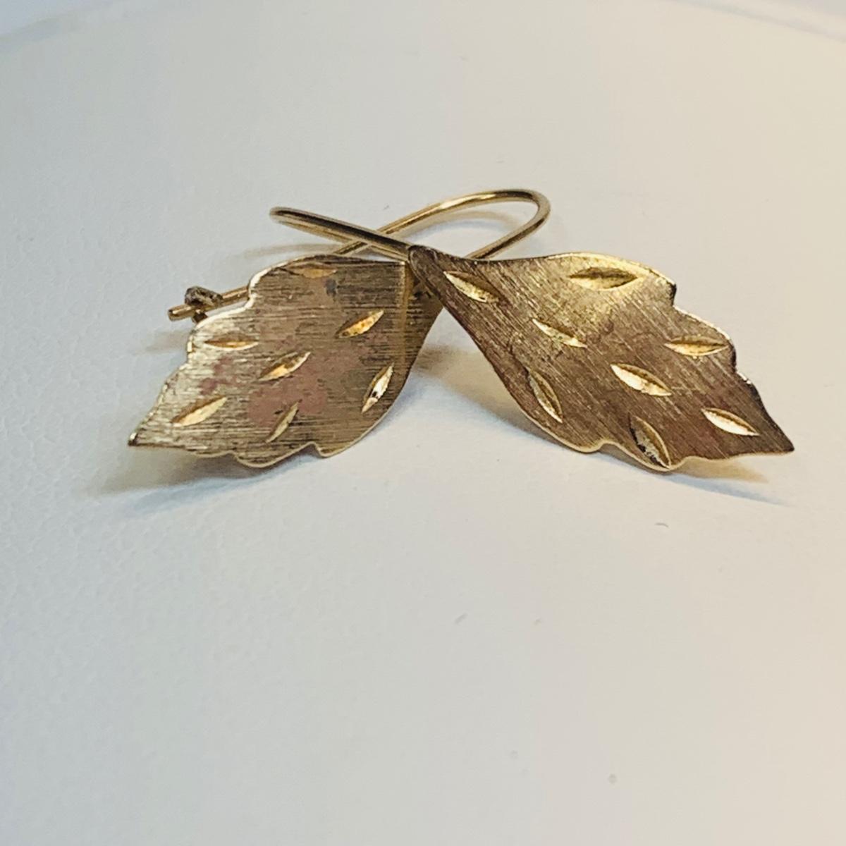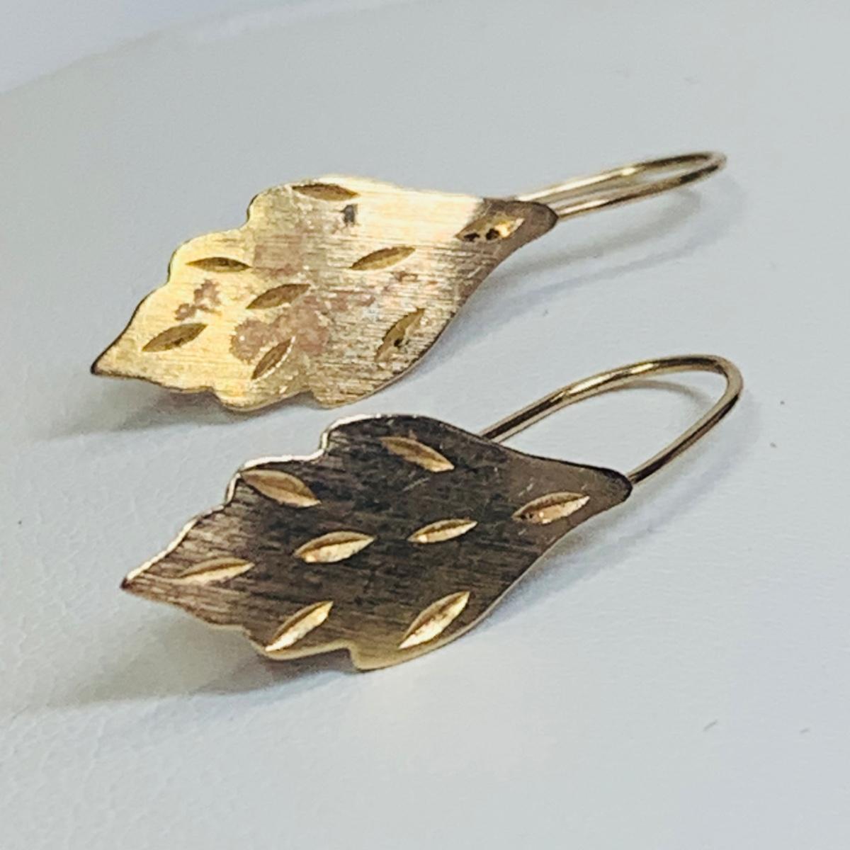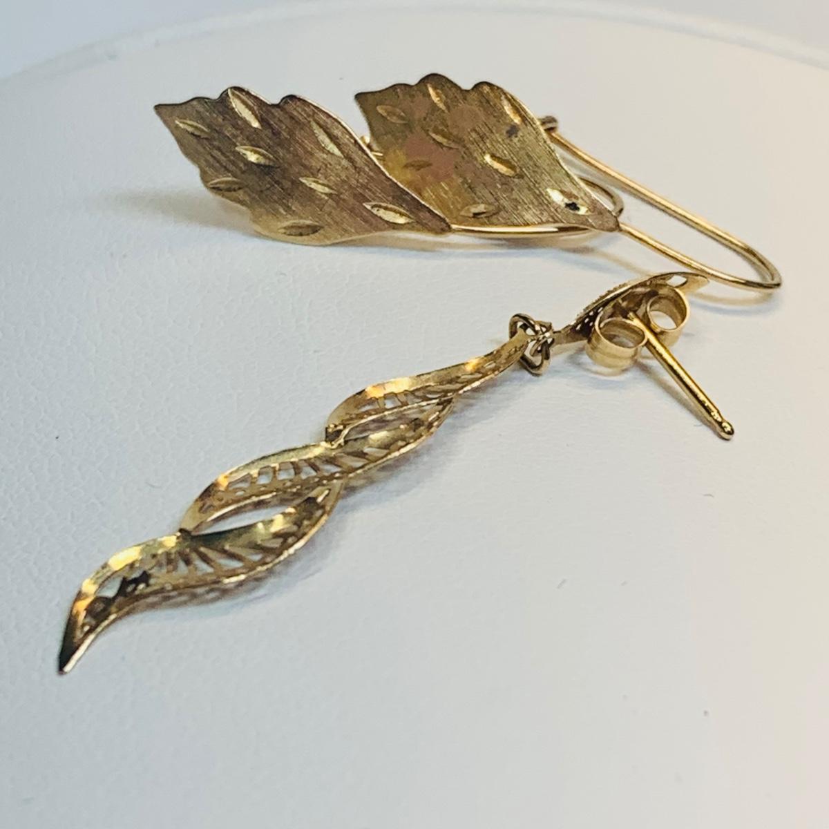 LOT 152: Tw. 1.2g, 14k Pierced Leaf Earrings & Single 14K Earring