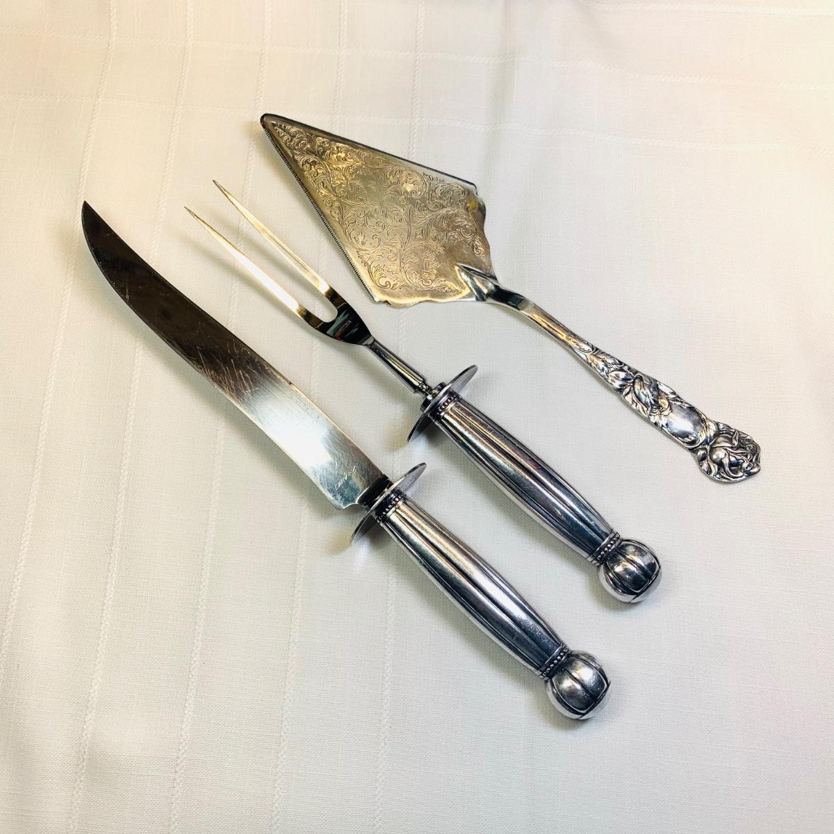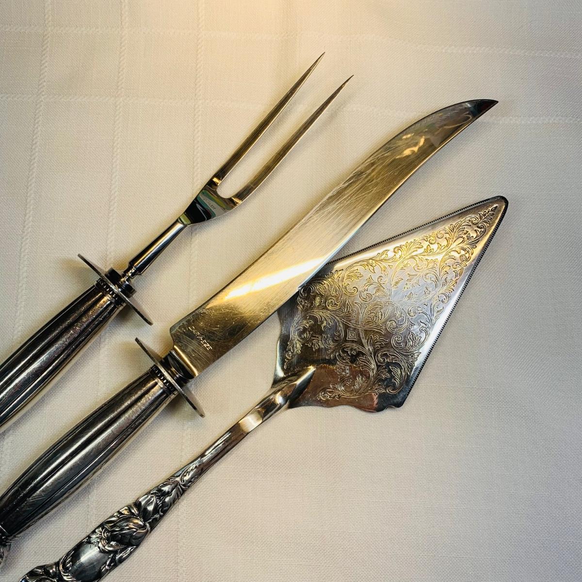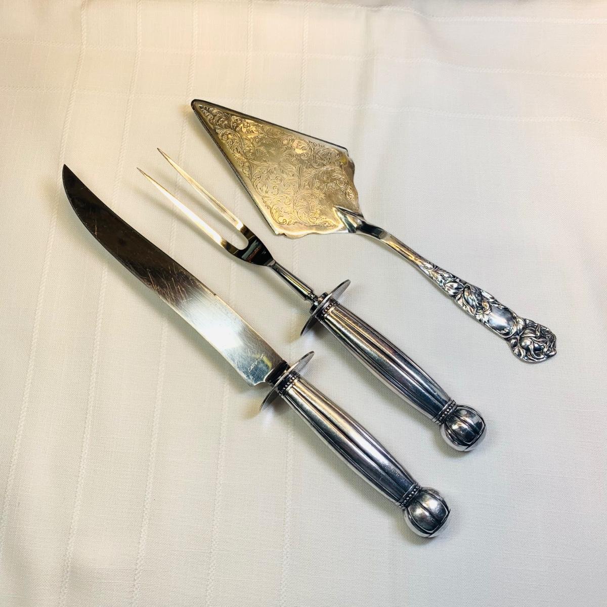 LOT 155: CARTIER Italy Ornate Pie Server & Carv-Eze Stainless Steel Carving Set