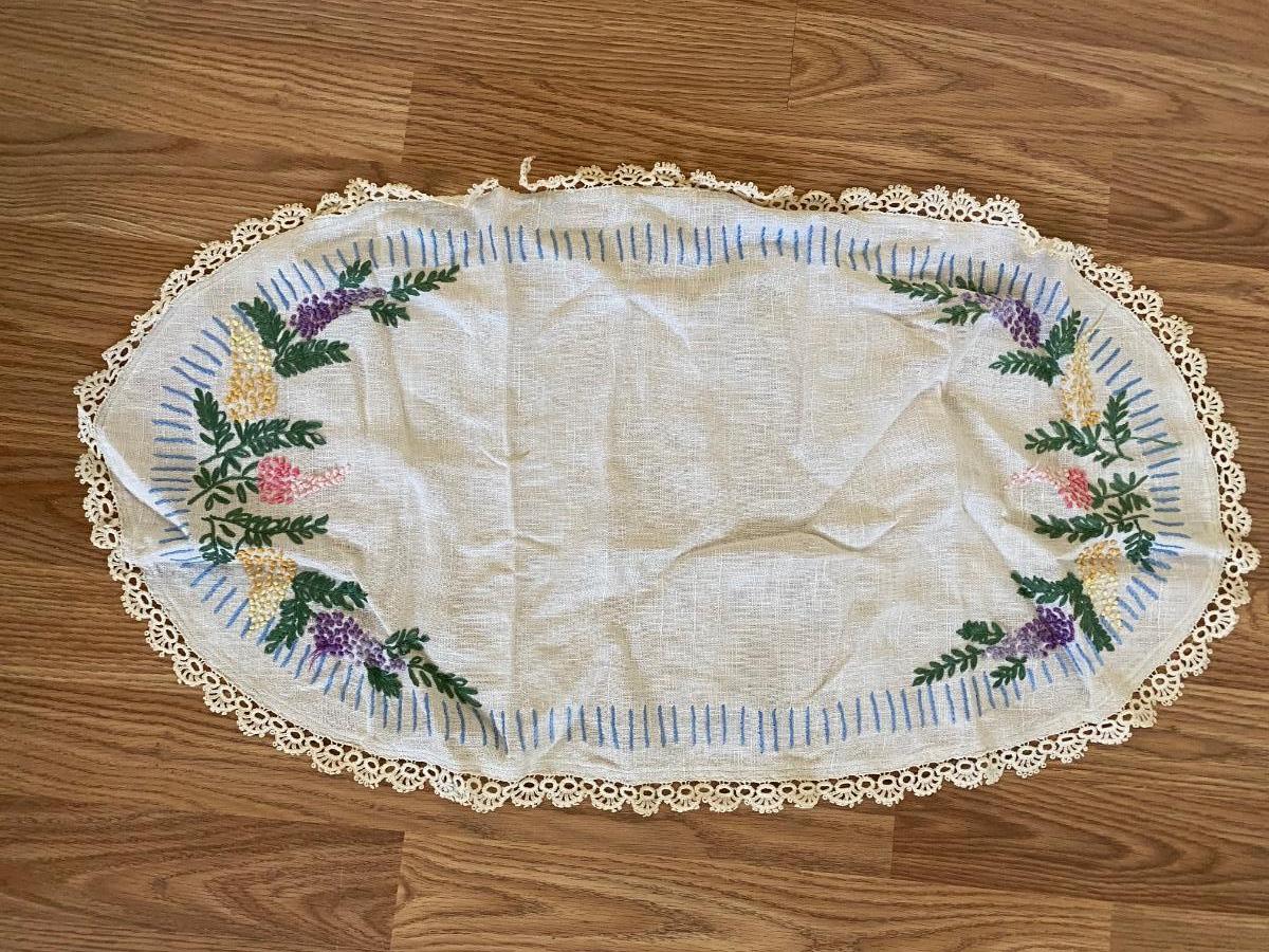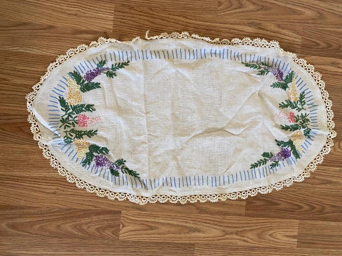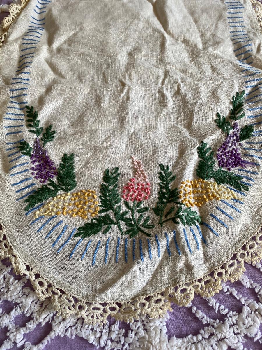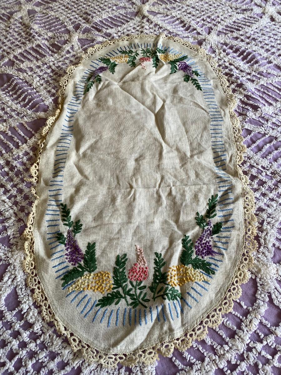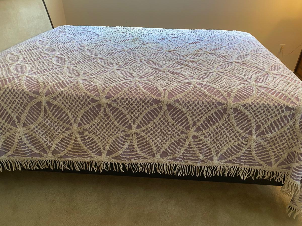 LOT 168C: Vintage Chenille Bedspread & Table Doilies