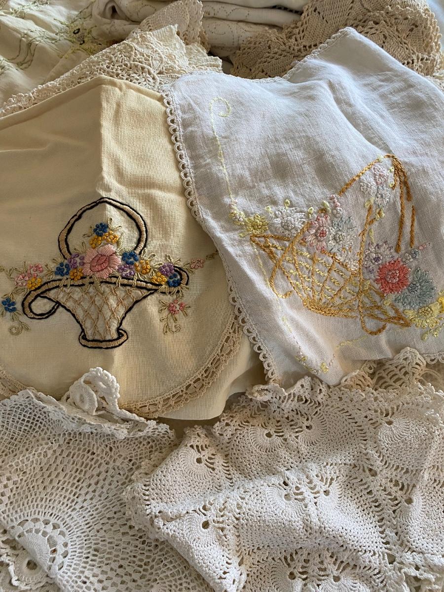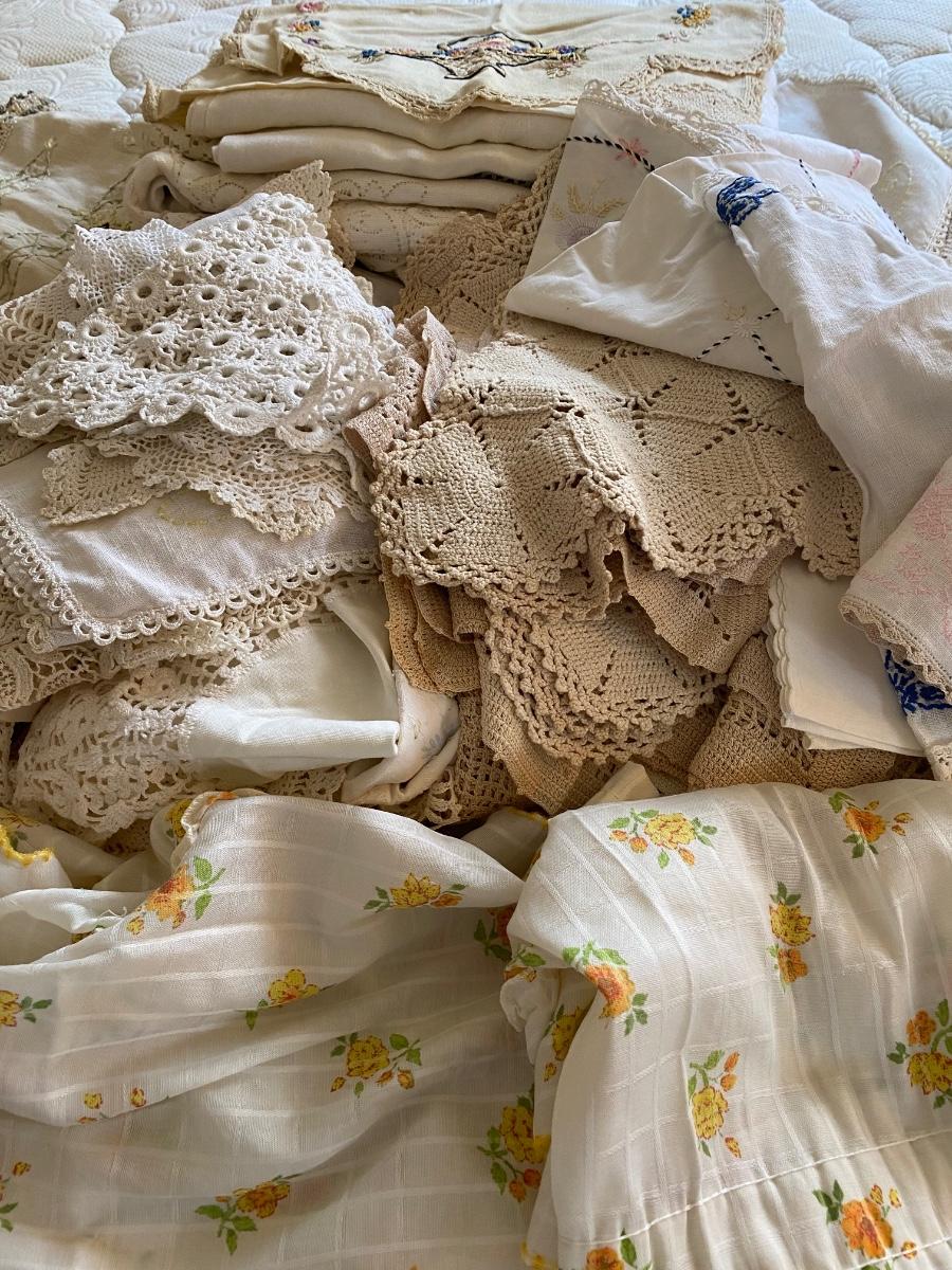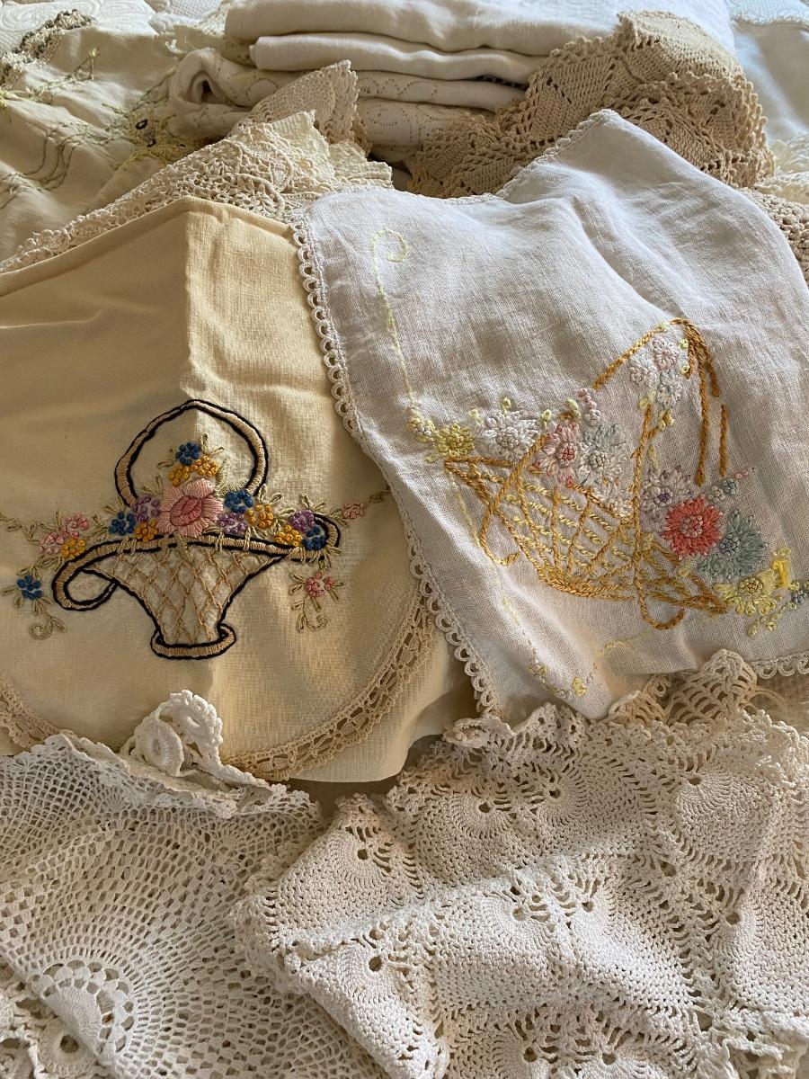 LOT 171C: Box of Vintage Linens, Doilies & More