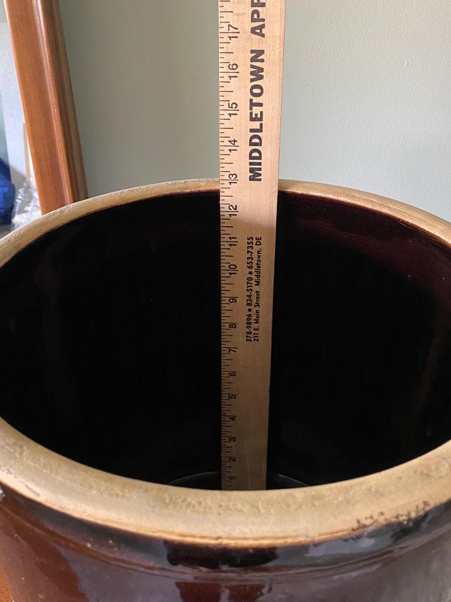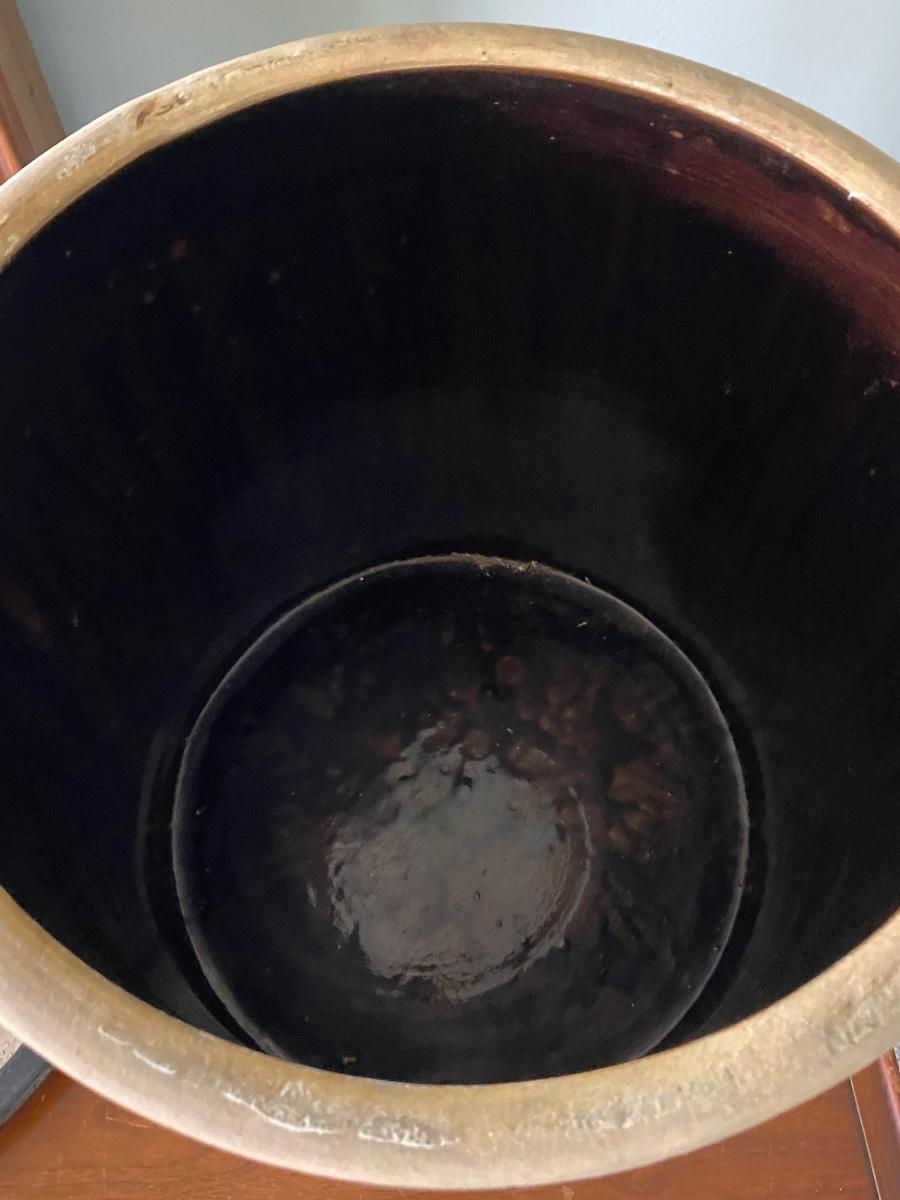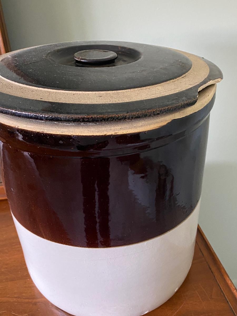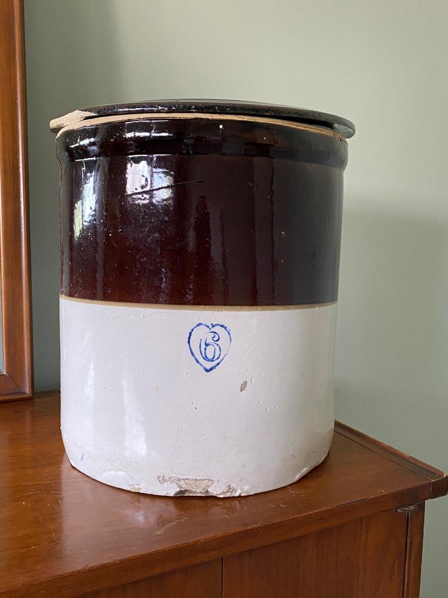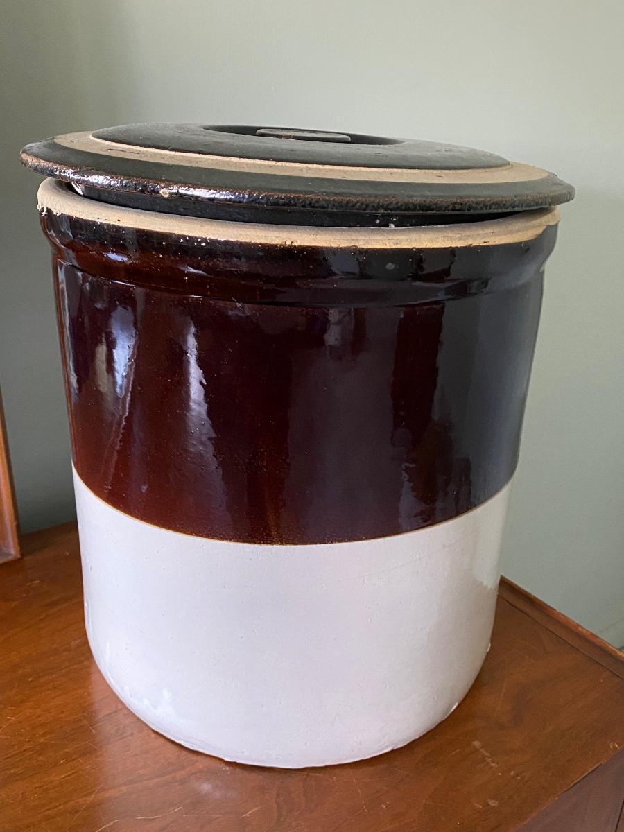 LOT 173C: #6 Stoneware Crock - 2 Tone Brown/Tan ... Great Porch Piece!