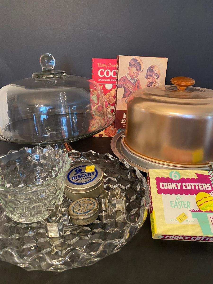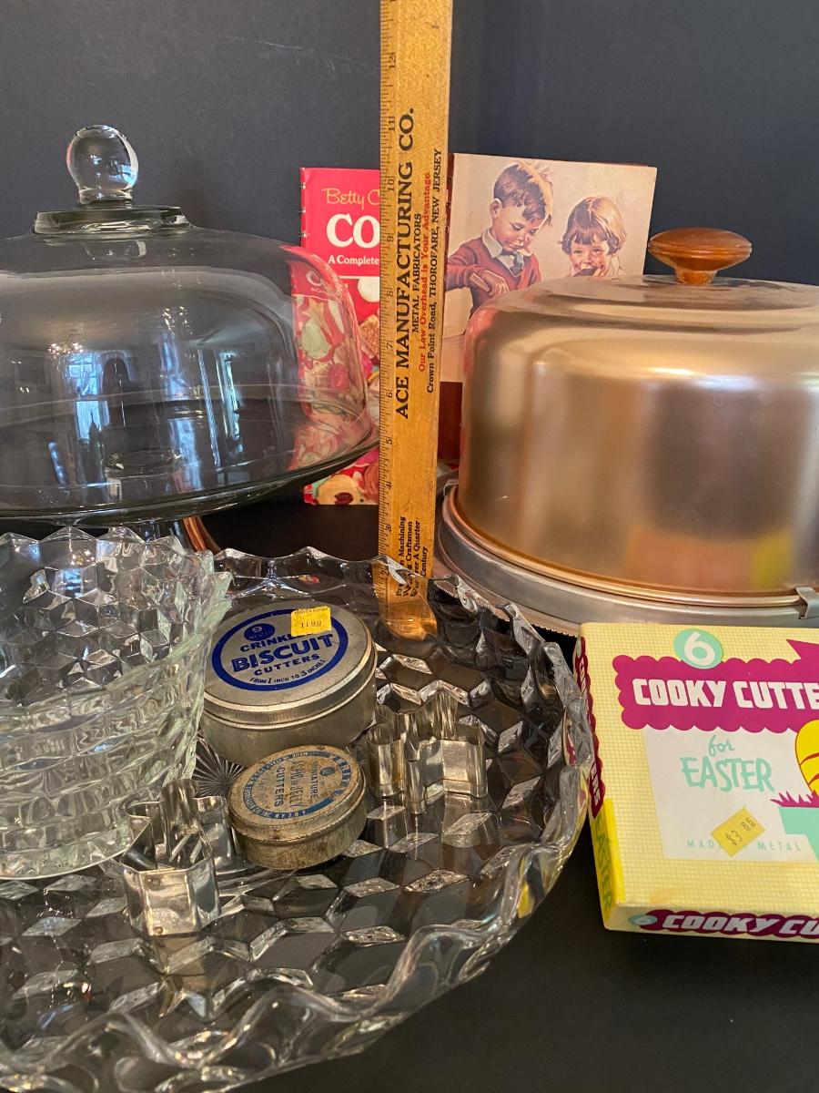 LOT 179C: Vintage Cookie Cutters, Cake Dish, Dessert Display & More