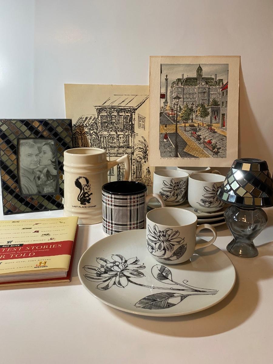 Teacup & Dishes, Frame & Candle set, mugs, book and Art.
