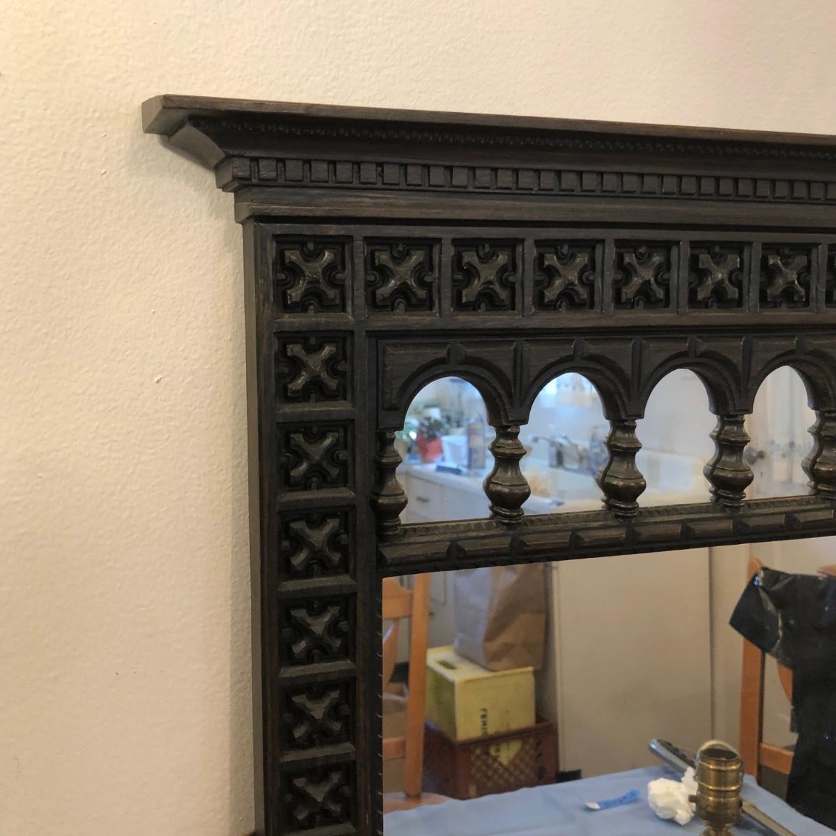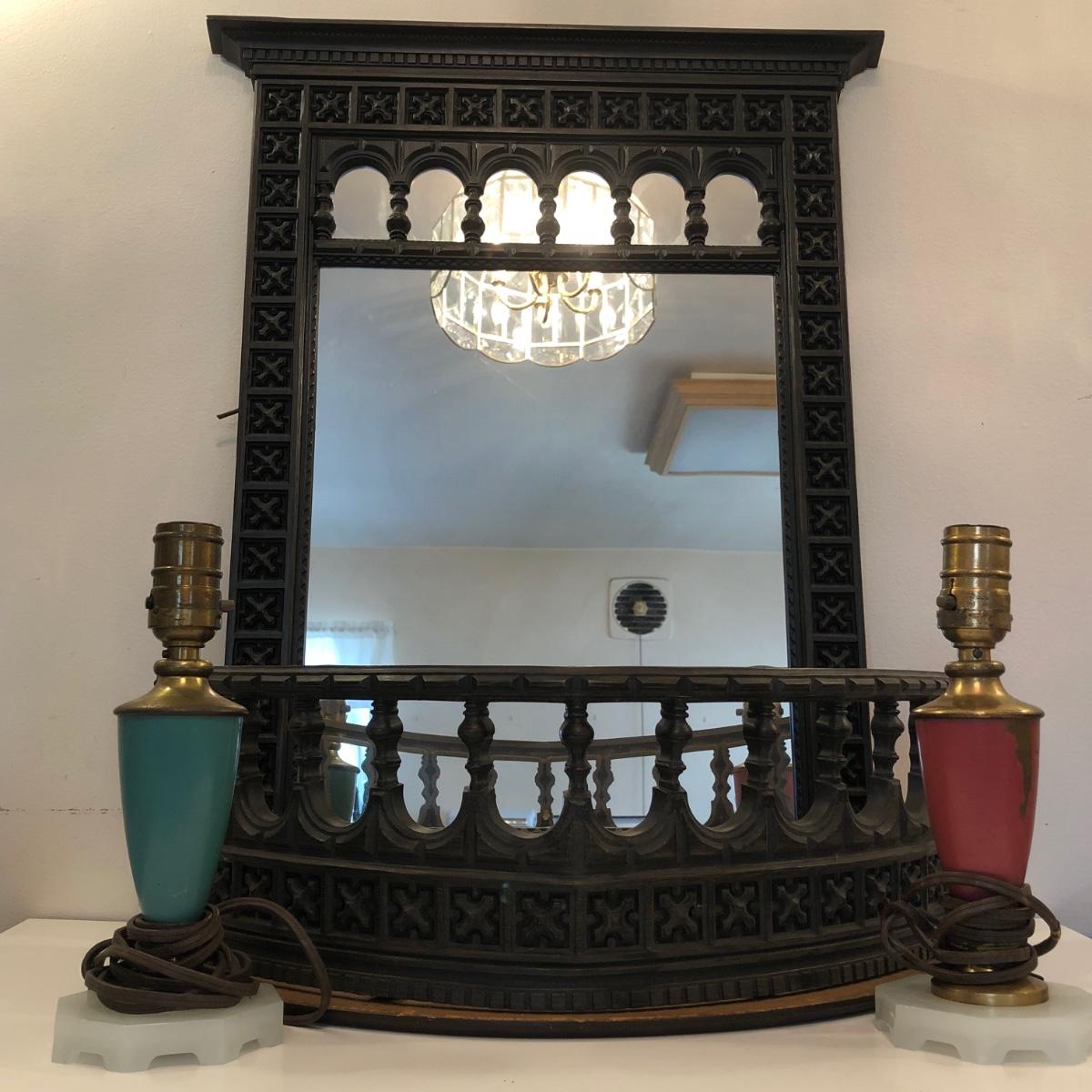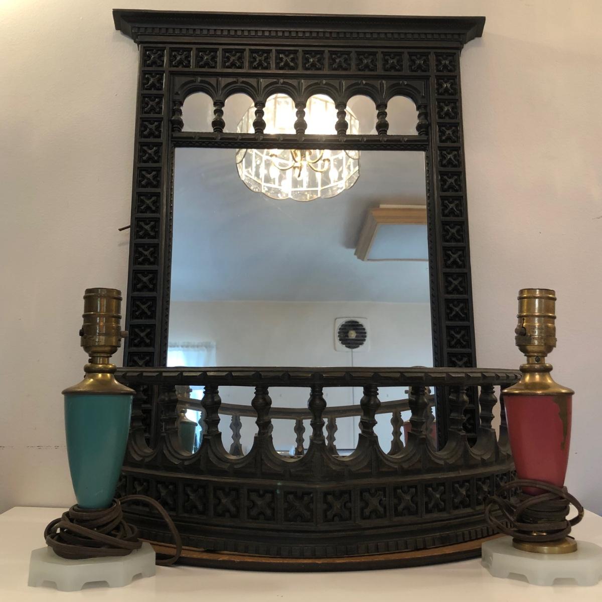 LOT 228M: Vintage Window Wall Mirror w/ Matching Shelf & Vintage Lamps