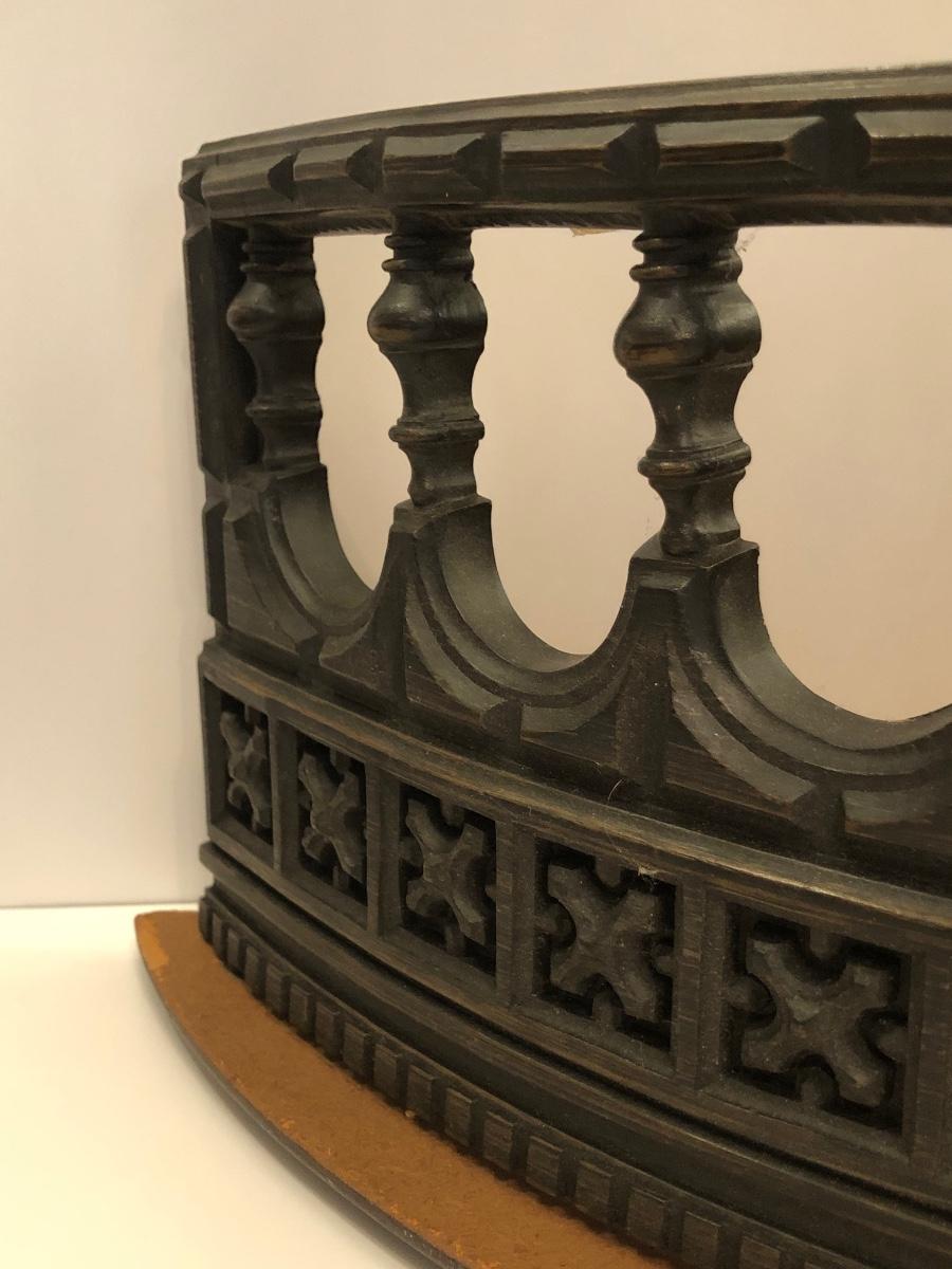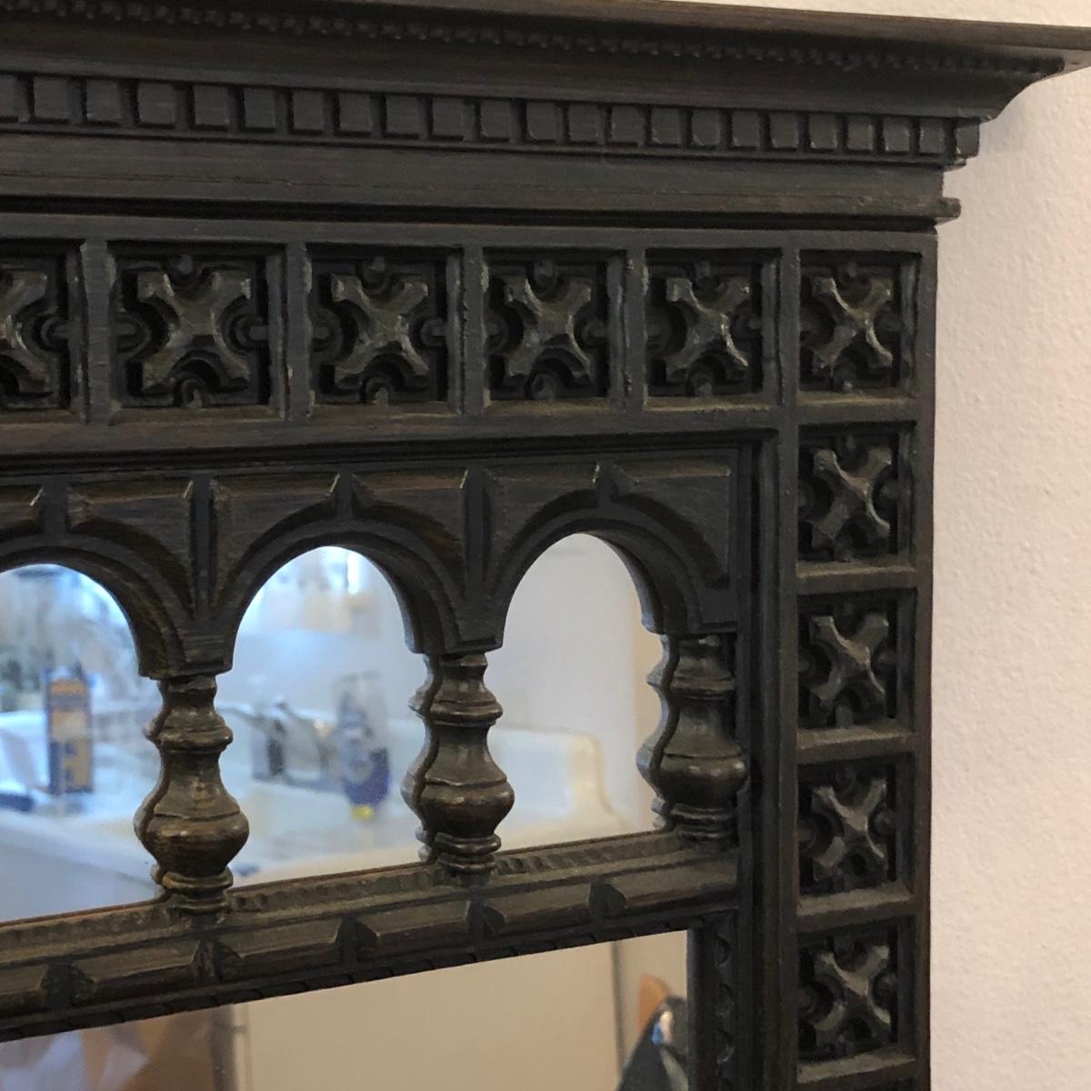 Mirror and shelf are meant to be wall mounted and have matching designs. They are made of wood and the shelf measures 22W x 9D x 7H. Includes two untested lamps, one red and one blue.