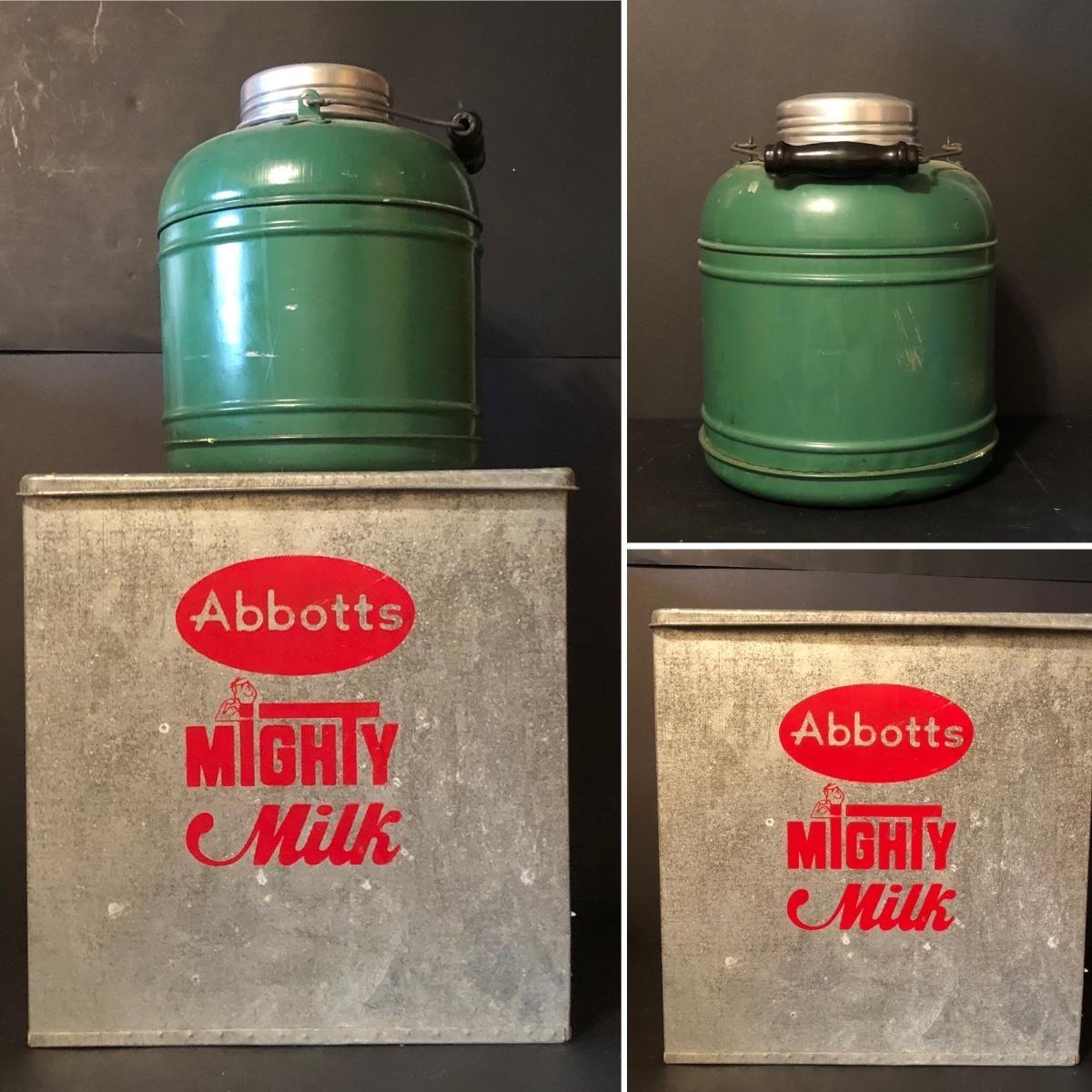 LOT 237M: Abbotts Mighty Milk Tin & Vintage Green Thermos