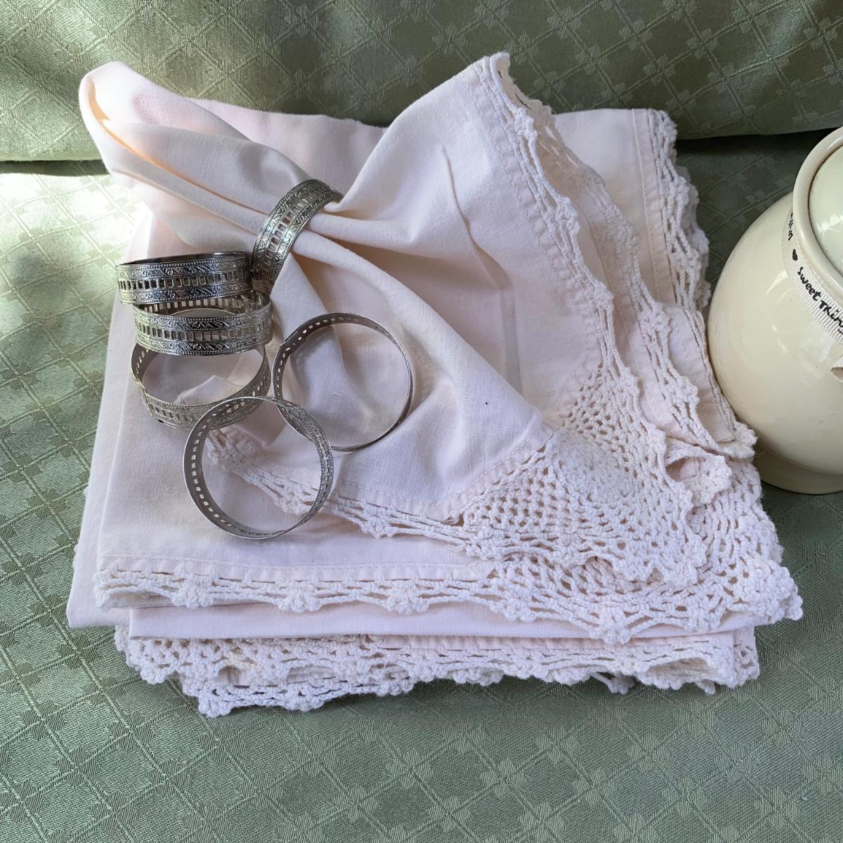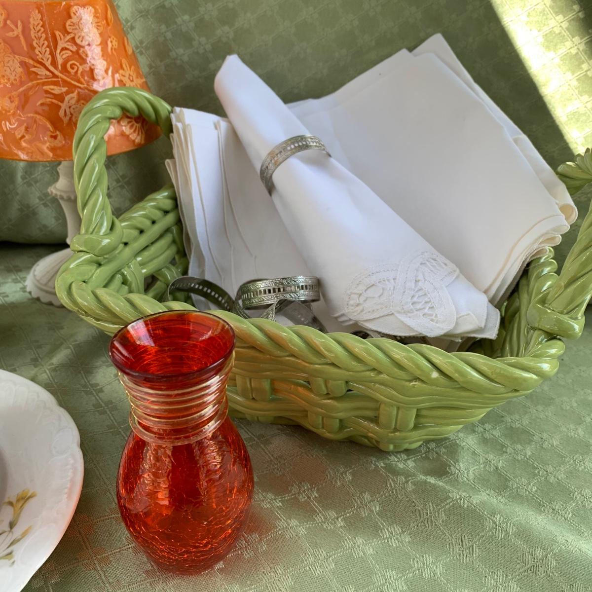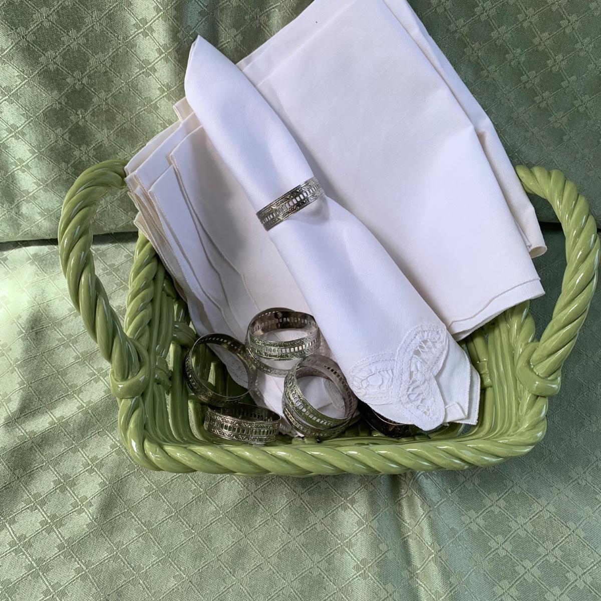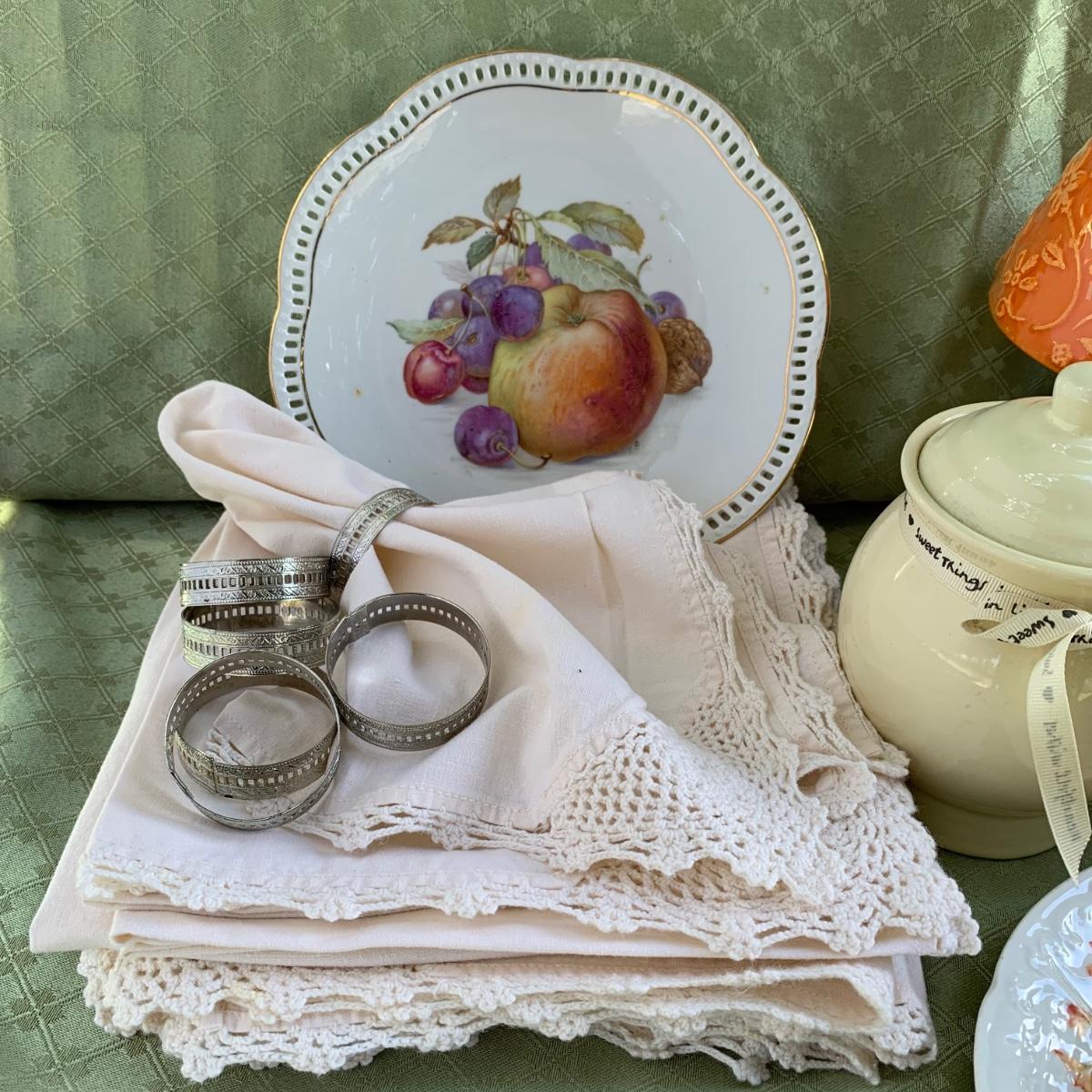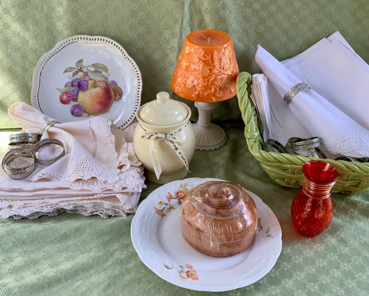 Home collection including vintage cloth napkin, napkin rings, candles Made in
