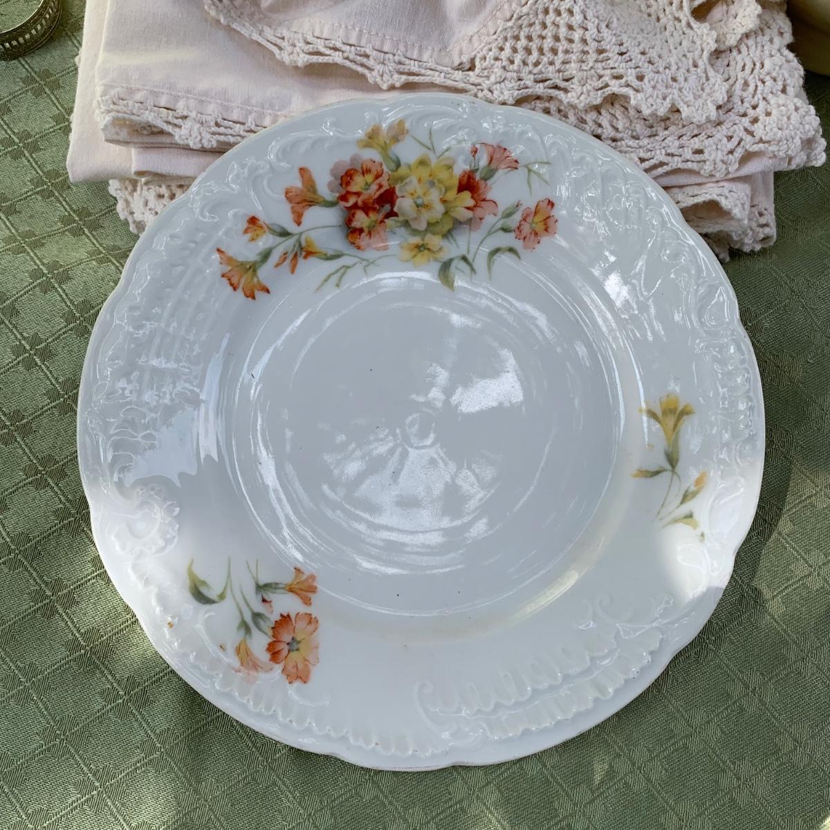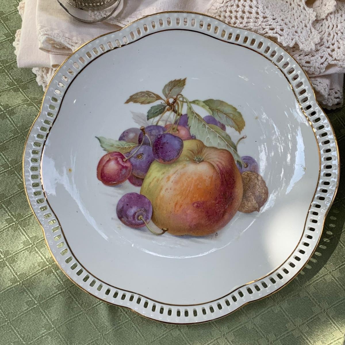 LOT 364R: Vtg Floral & Fruit Plates: Made in Germany, Gallery Table Top Ceramic Basket, Hand Blown Vase, & More