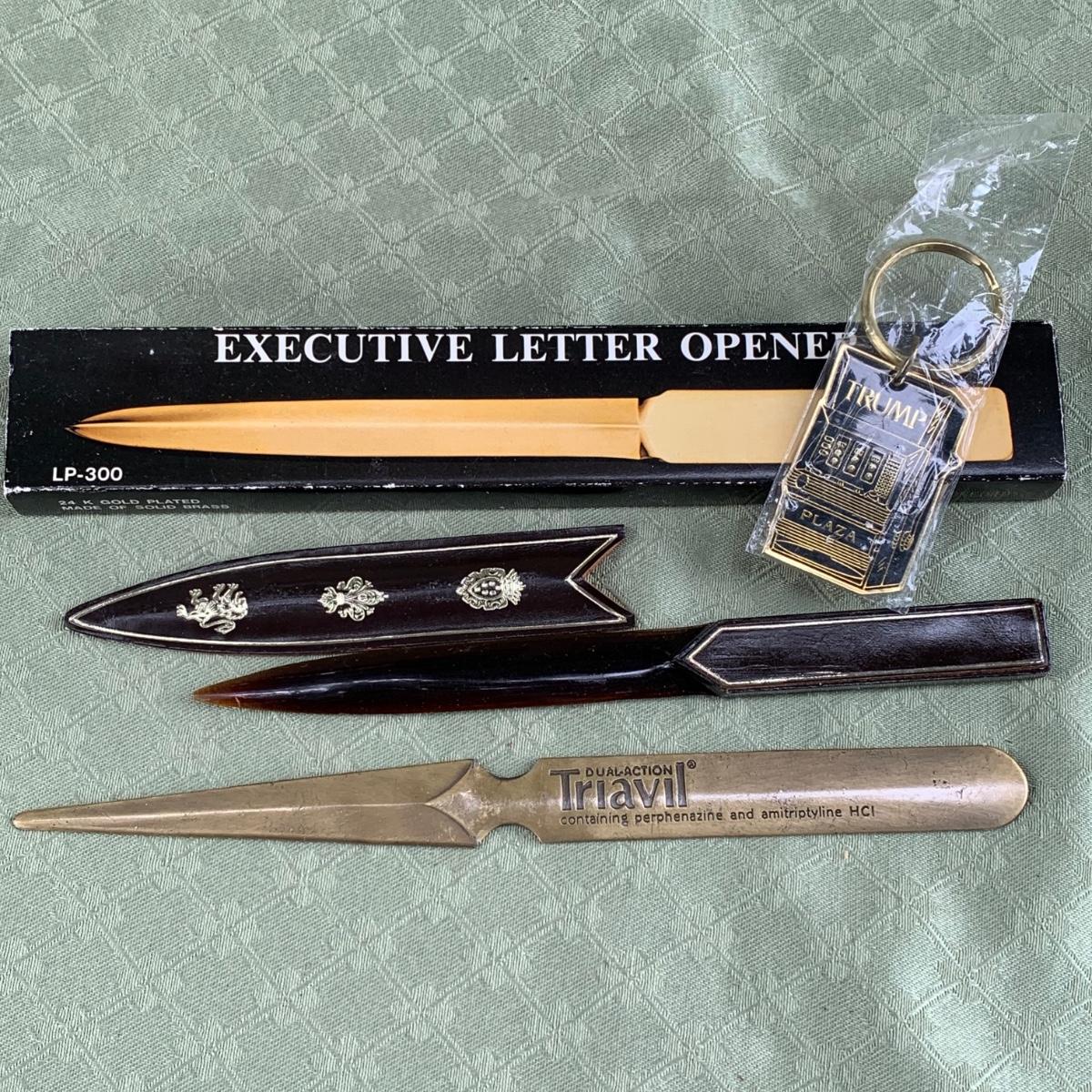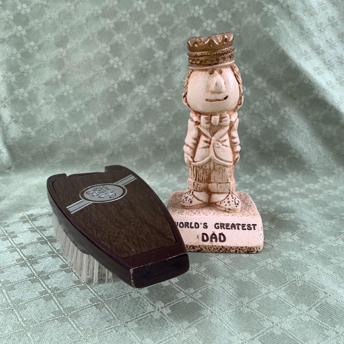LOT 368R: Men's Collection: Vtg Allegro Razor Blade Sharpener, World's Best Dad Wooden Sculpture, After /Cologne, Superman & Phillies Hats, Wooden Men's Valet Organizer, Letter Openers & More