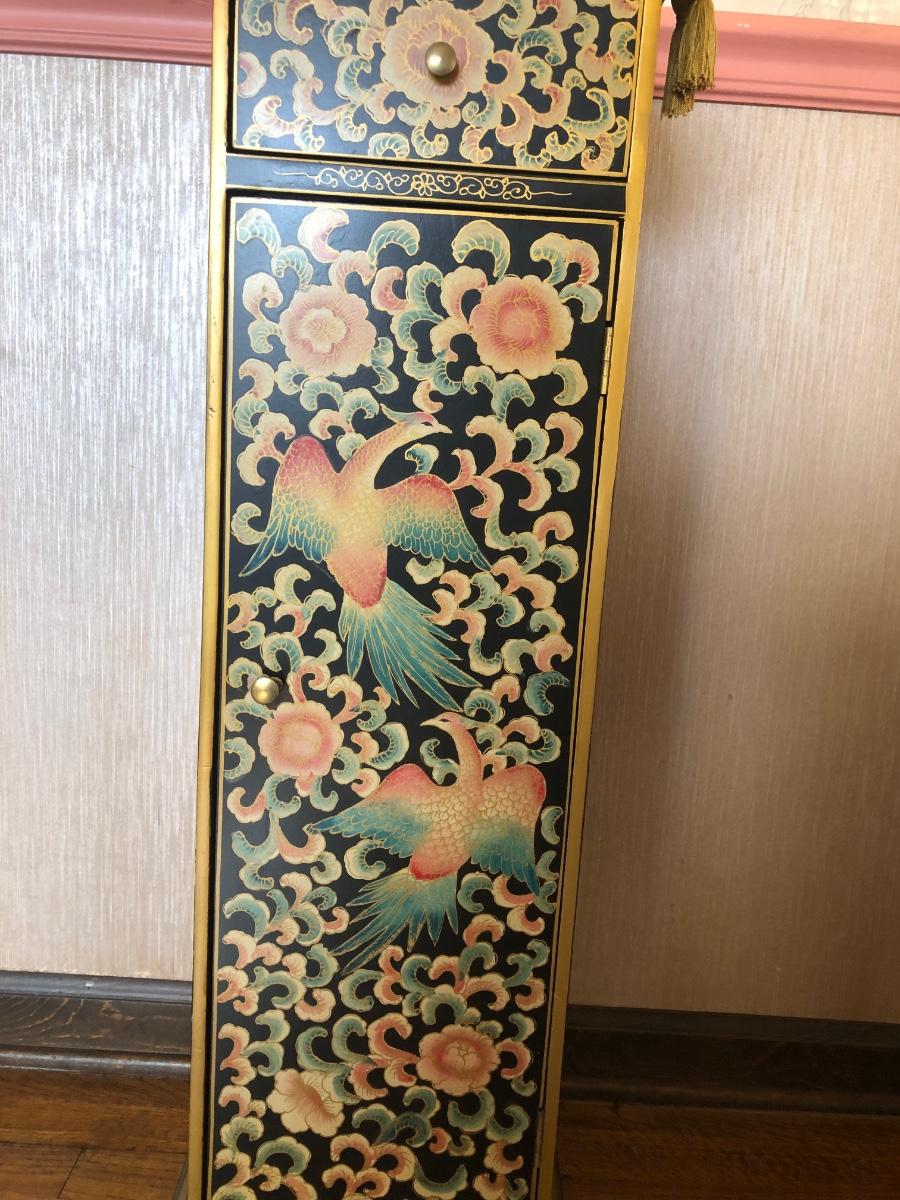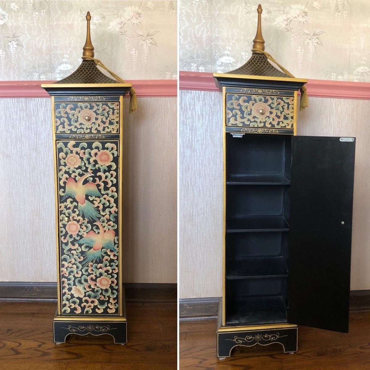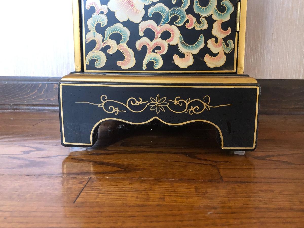 LOT 3M:  Wood Cabinet in Black & Gold with a Floral & Bird Motif