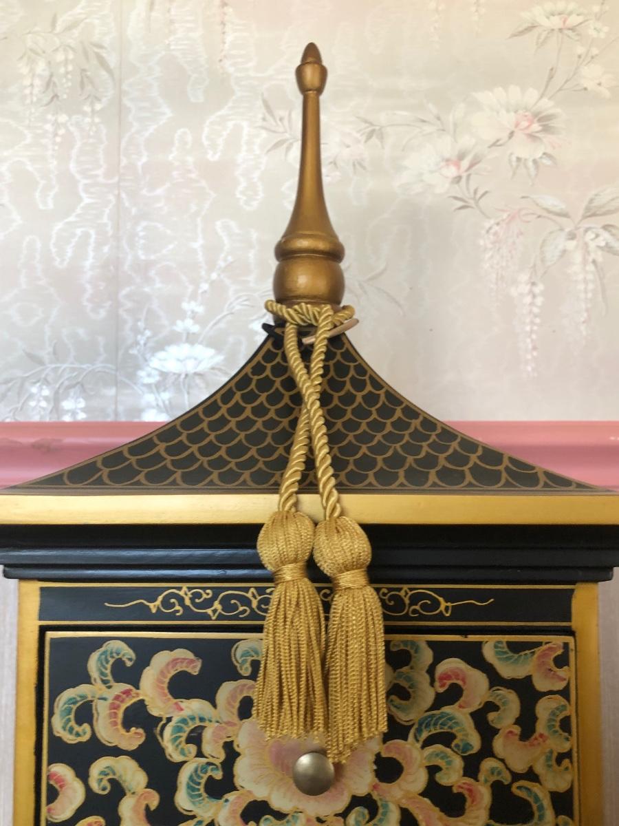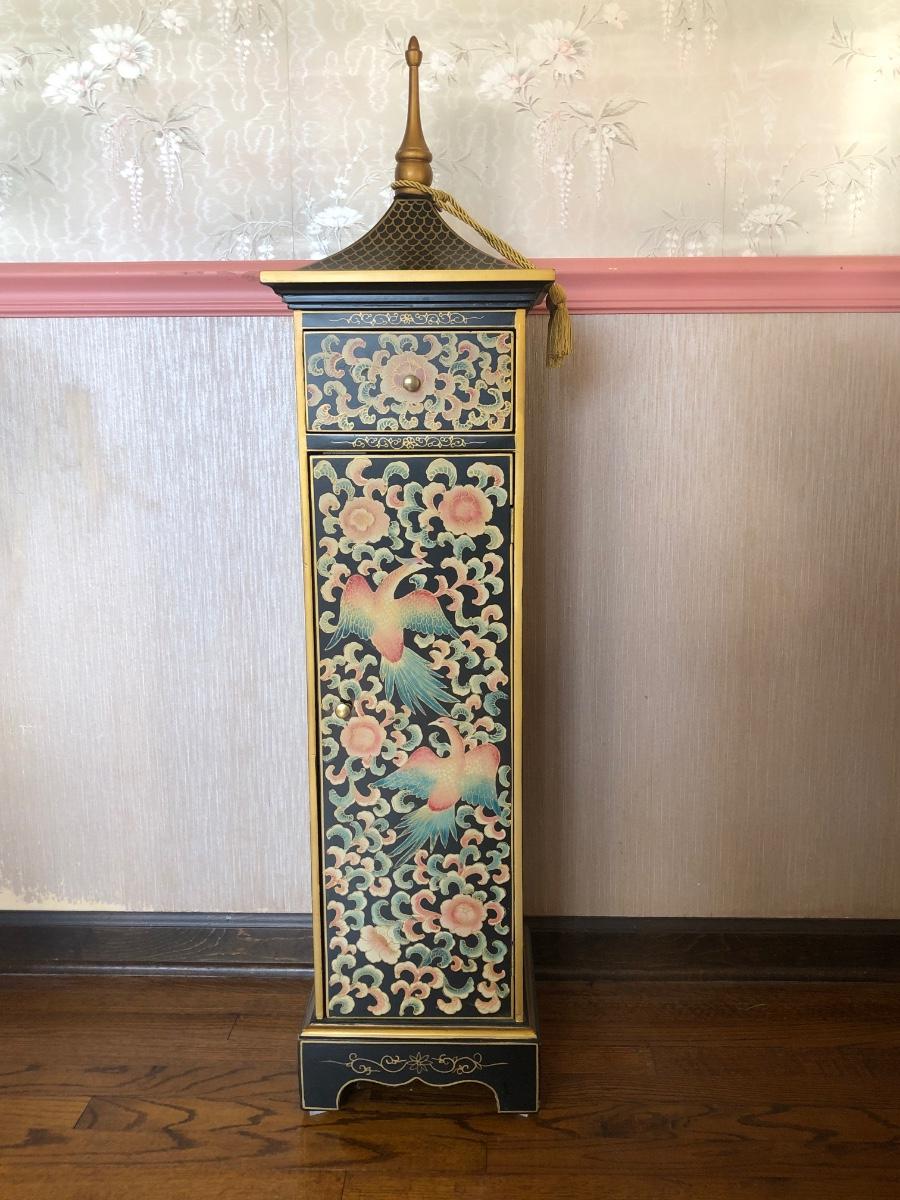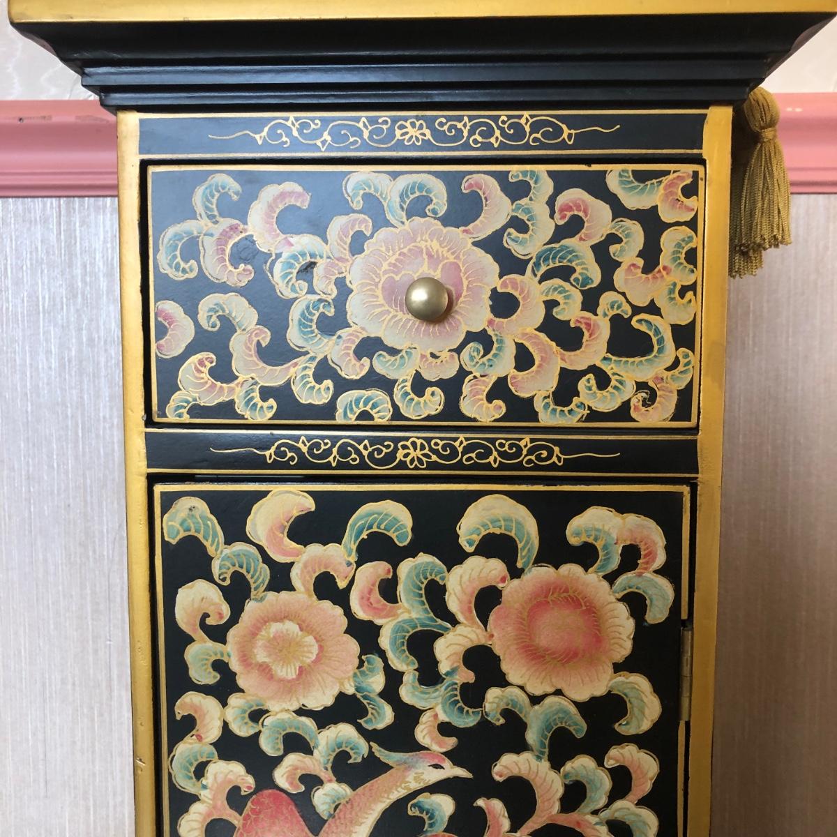 LOT 3M:  Wood Cabinet in Black & Gold with a Floral & Bird Motif