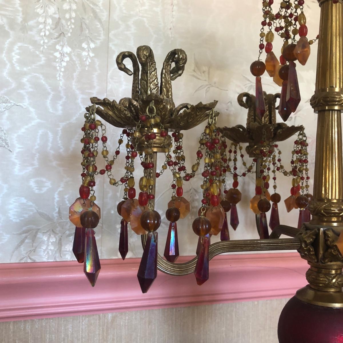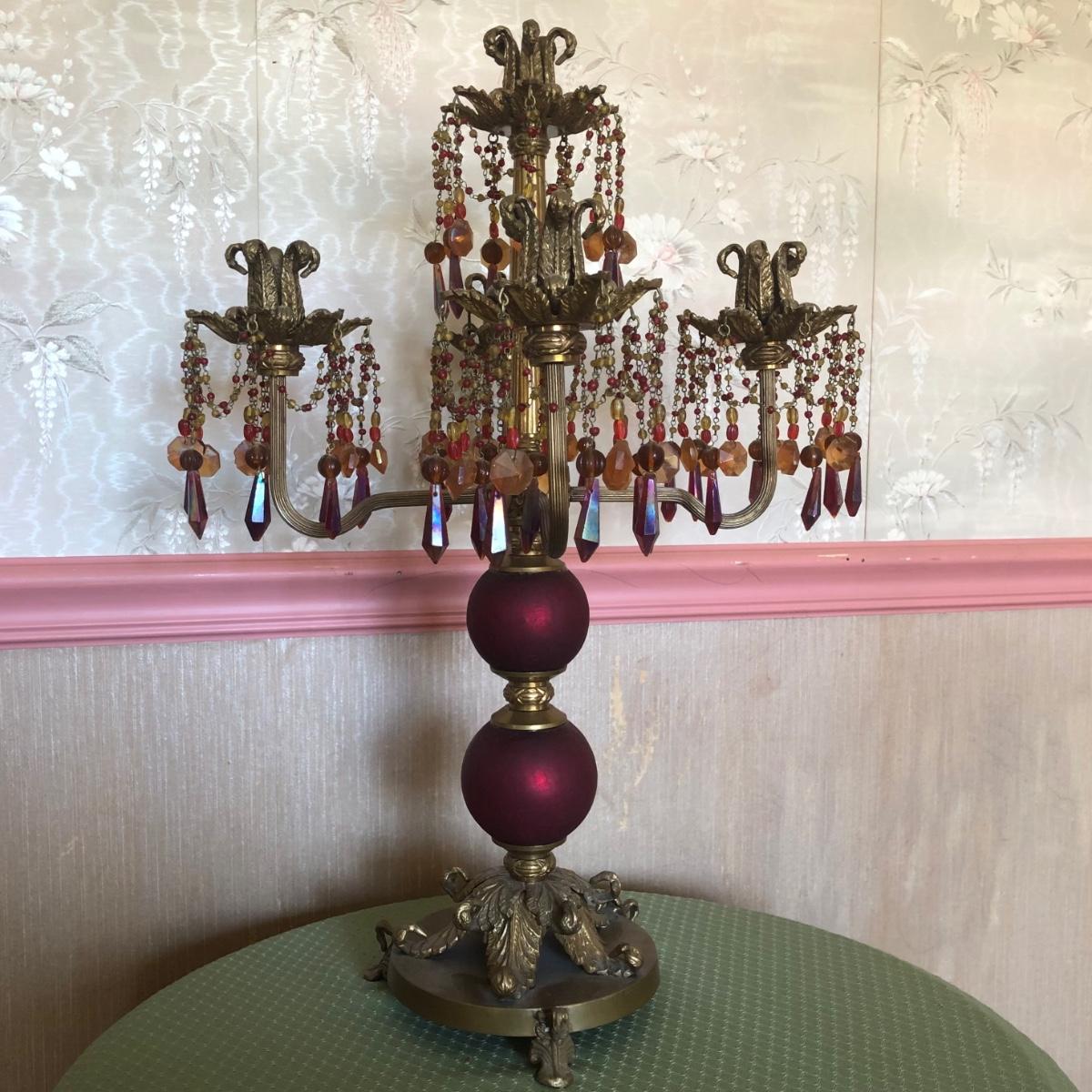 LOT 10M: Decorative Brass Candelabra w/ Waterfall Beading
