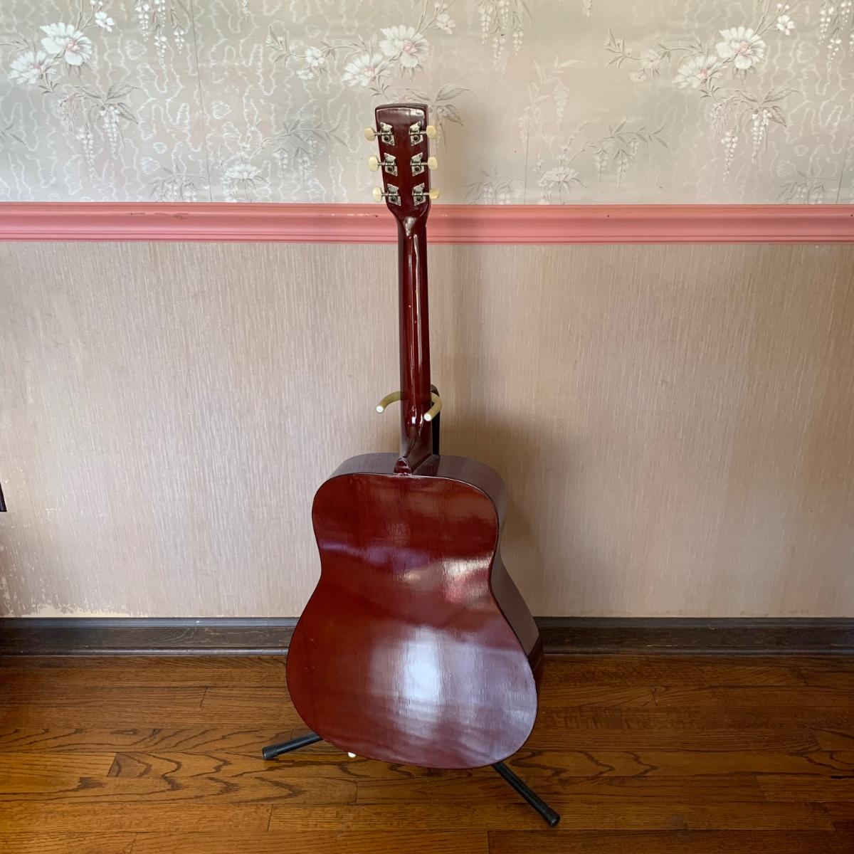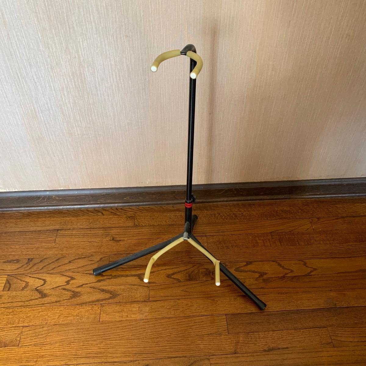 Includes guitar stand. Guitar has all its strings and is slightly worn from use.