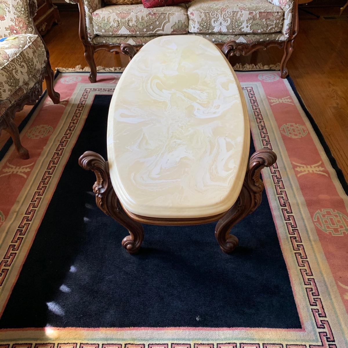 Table only, other furniture and rug not included. Table is very heavy. Measures 54W x 21D x 18H.