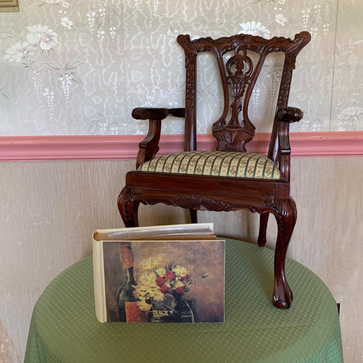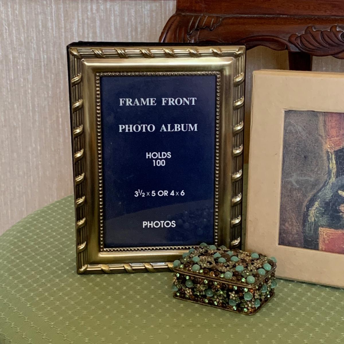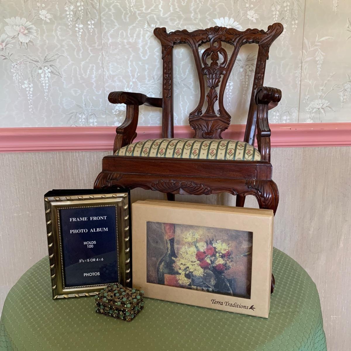 LOT 31R: Miniature Queen Anne Style Wooden Chair, Frame Front Photo Album, Terra Traditions Photo Album, & Beaded Trinket Box
