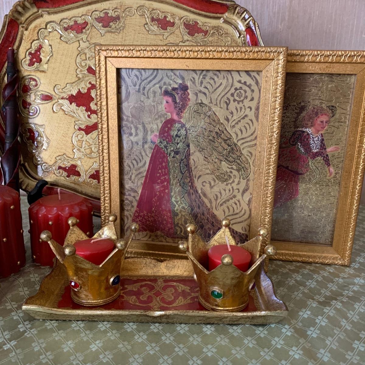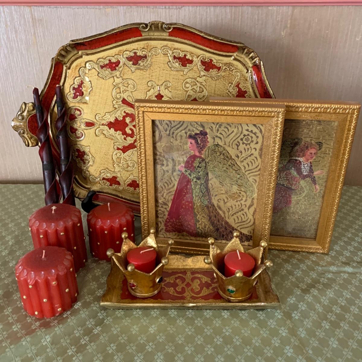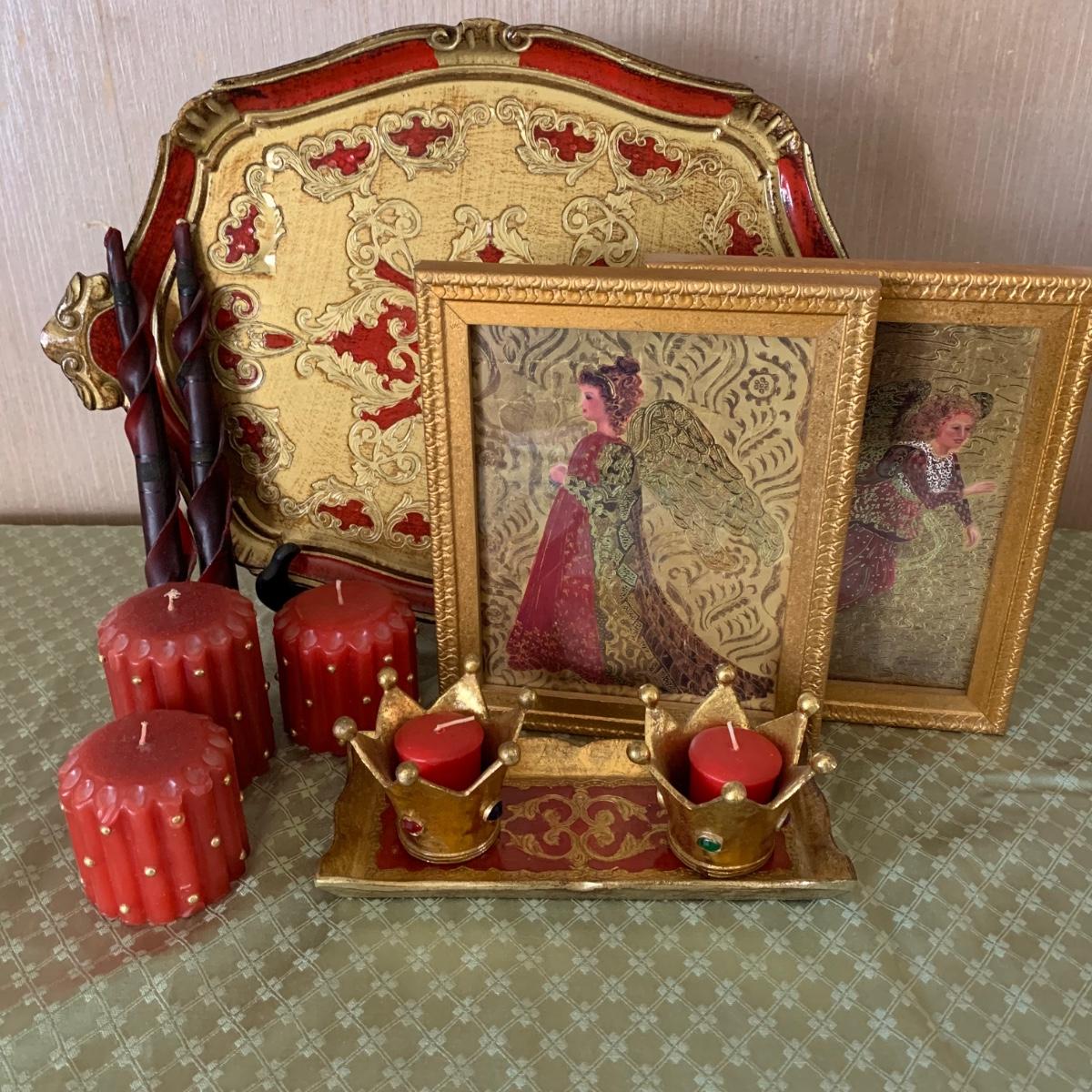 LOT 32R: Decorative Candles, Crown Candle Holder, Framed Prints & Tray Made in Italy