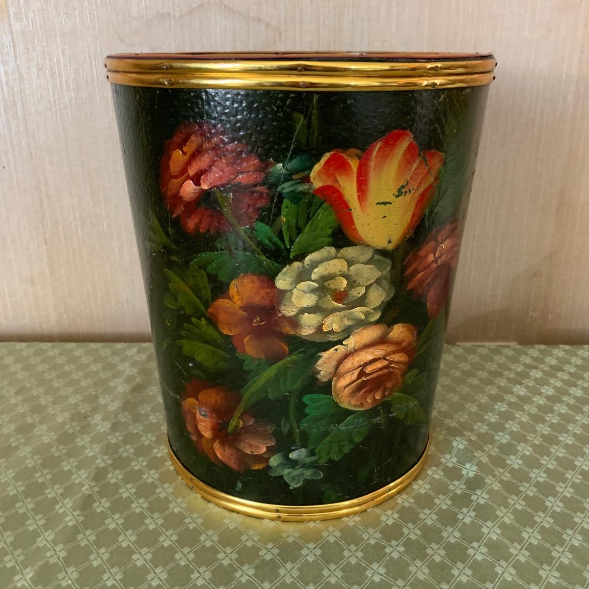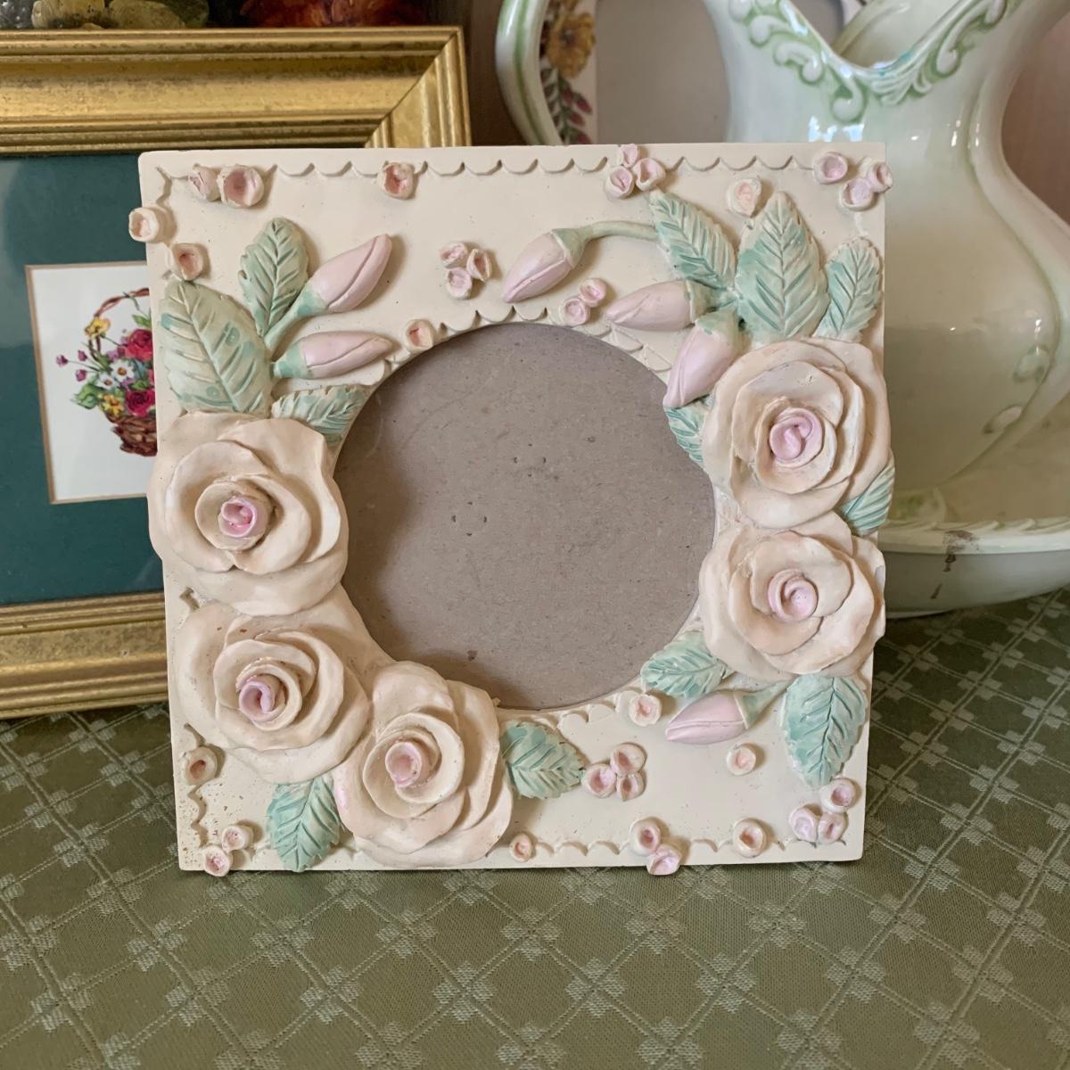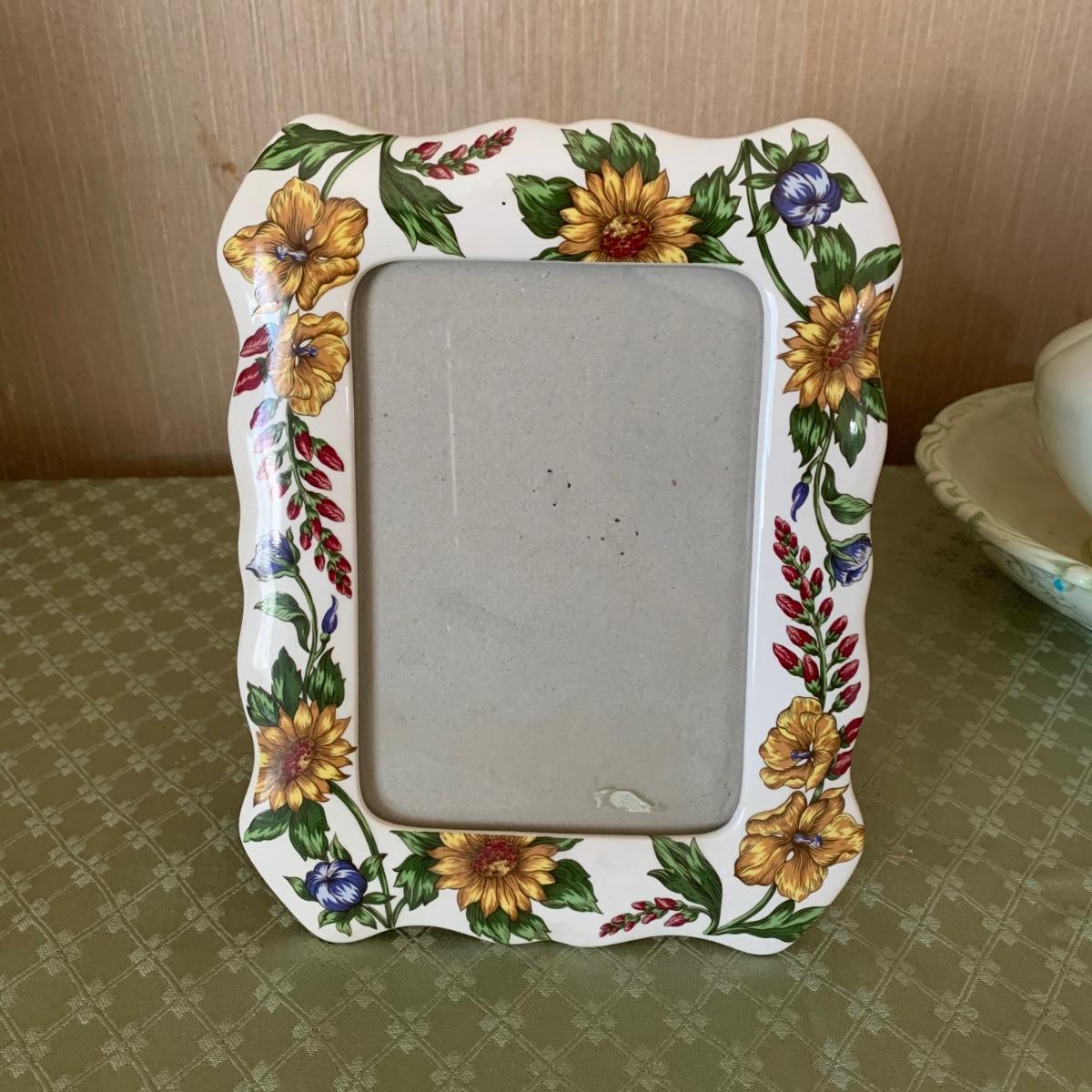 Also includes decorative floral waste basket, and another ceramic floral photo frame. Waste basket is worn.