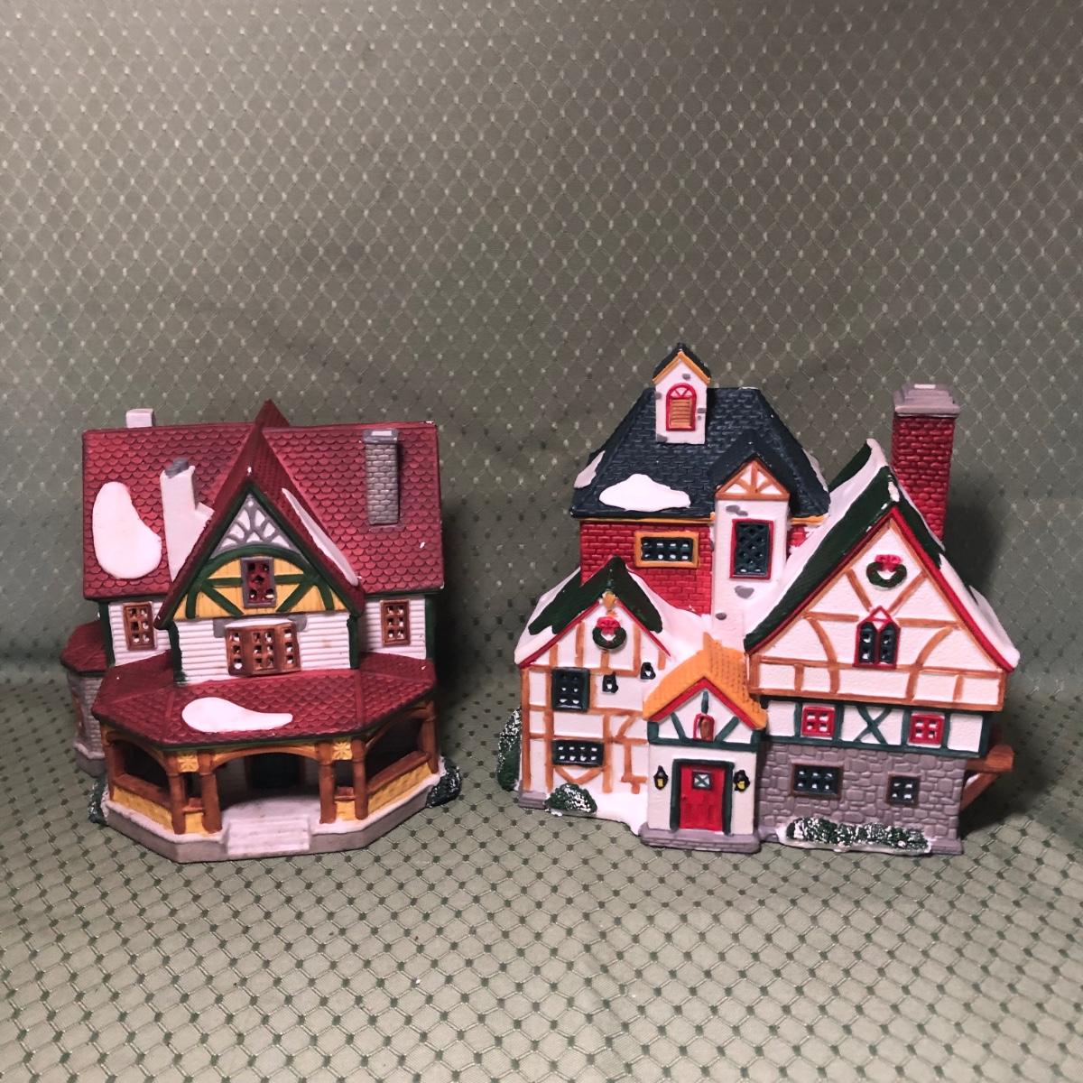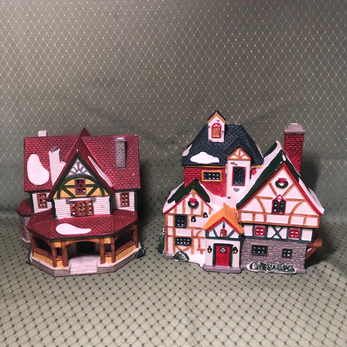 Includes 1996 Lemax Winter Home and 1995 Lemax Vaoil Village High Peaks Ski Lodge. Pieces do not include packaging or power cords.