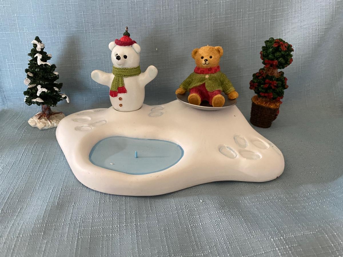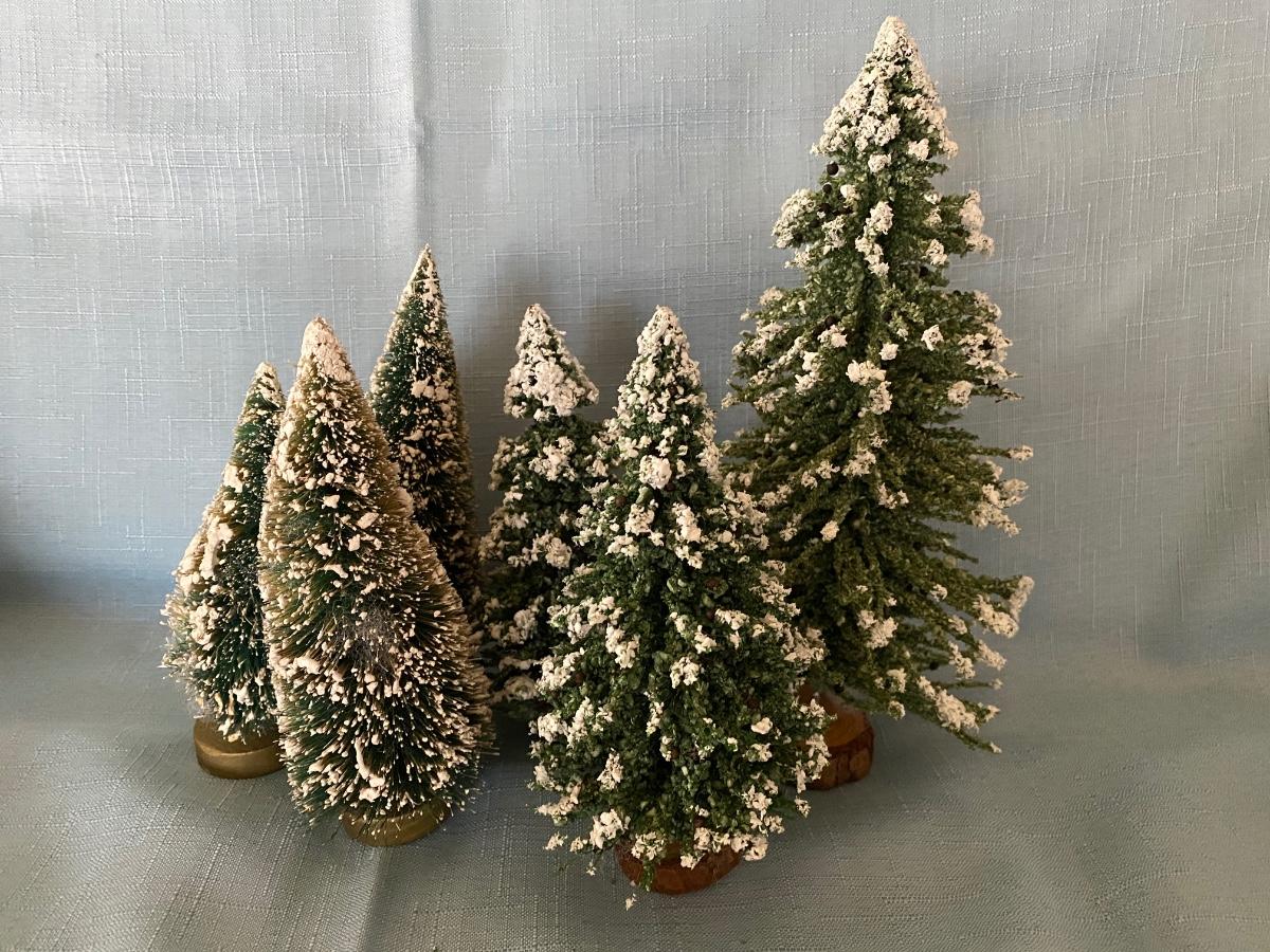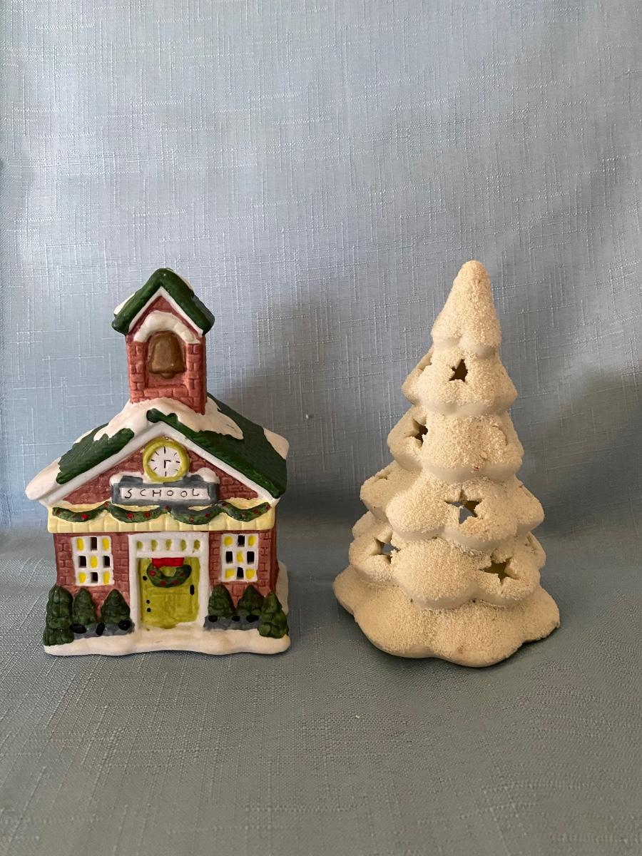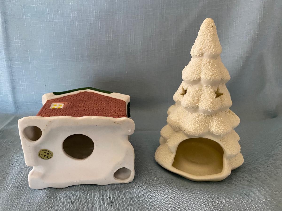 LOT 39C: Christmas Decor: Snowy Trees, Hallmark Keepsake Ornament Hollyday Hill & More