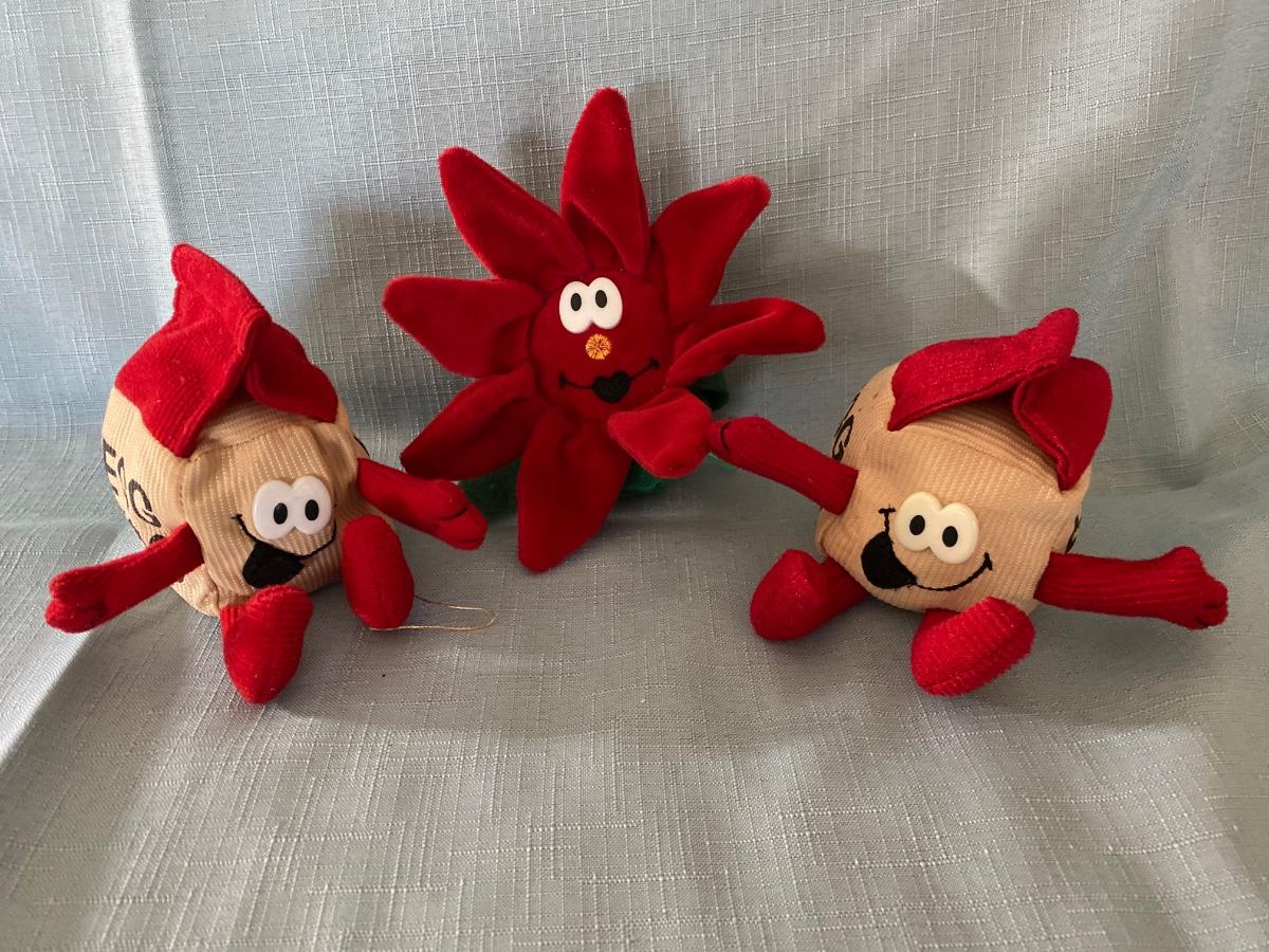 Includes a variety of small snowy trees, three small plushies, the Hallmark Keepsake 2002 Holiday Hill Ornament with Wendy Woosh, a tea candle holder and small porcelain village house.
