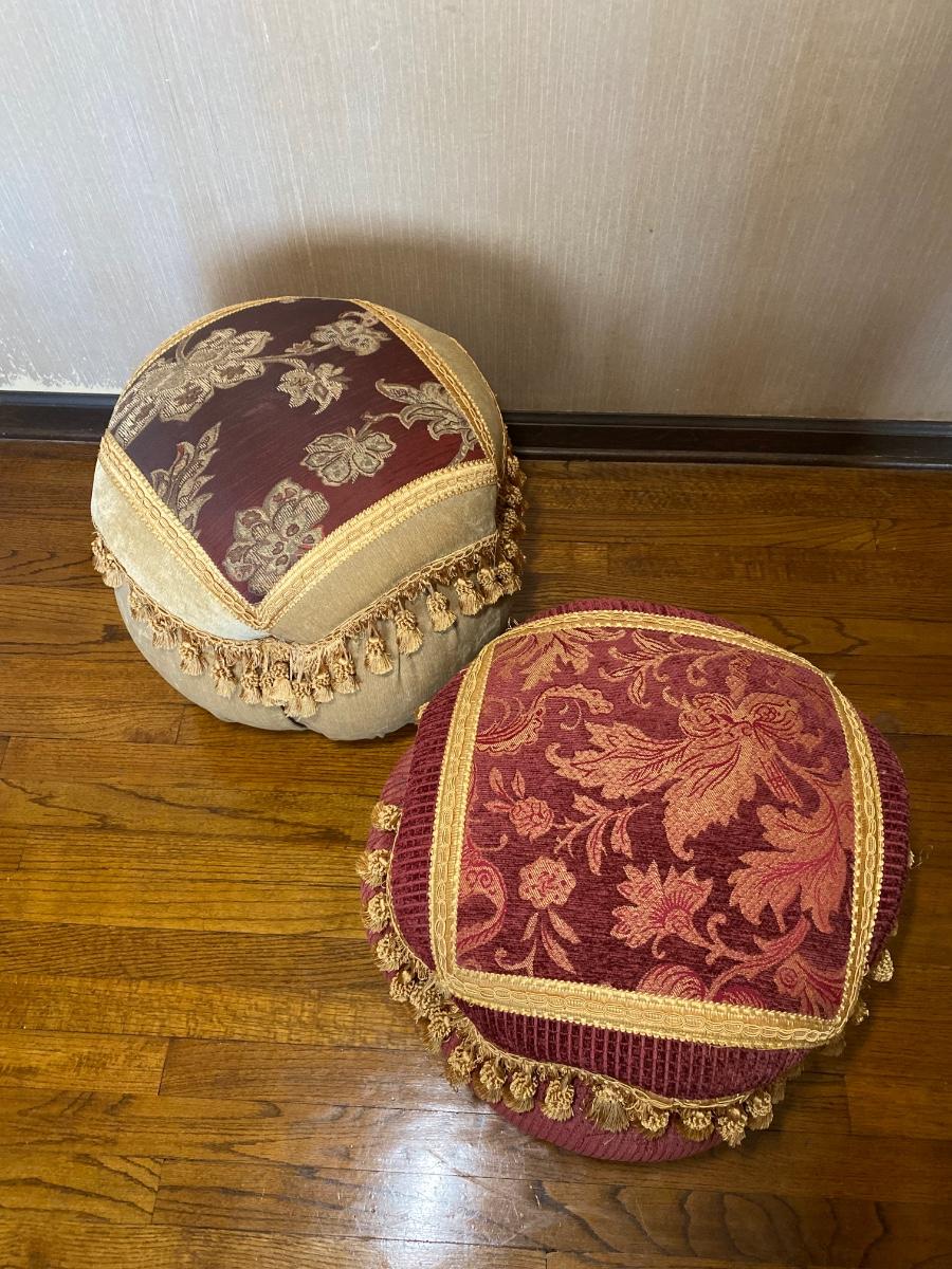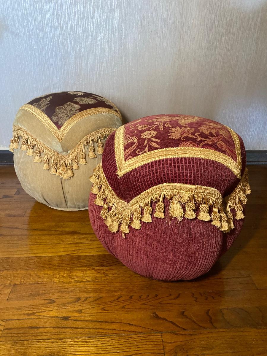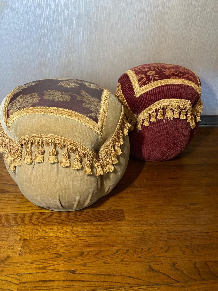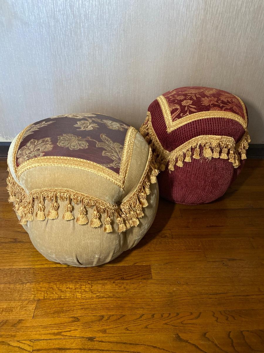 LOT 40C: Red & Tan Ottoman Poufs