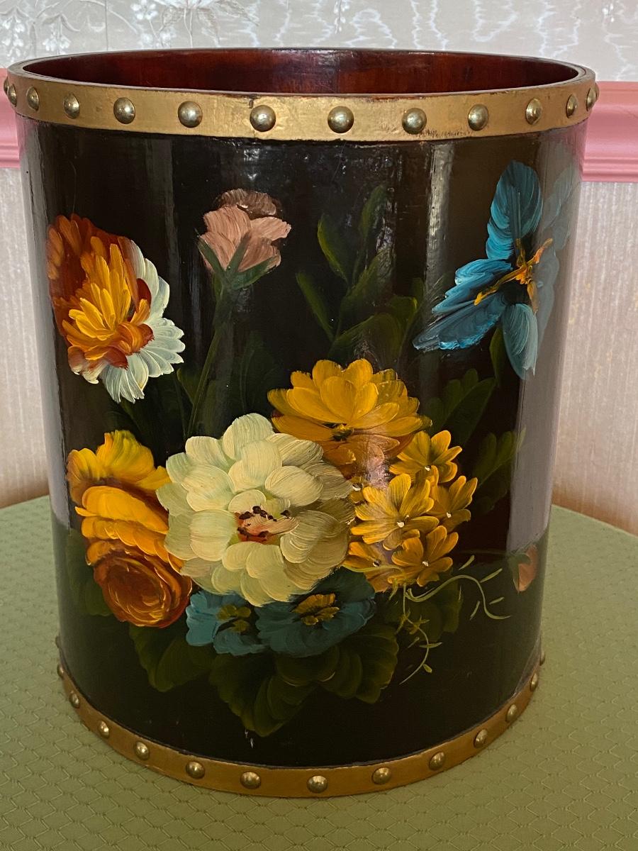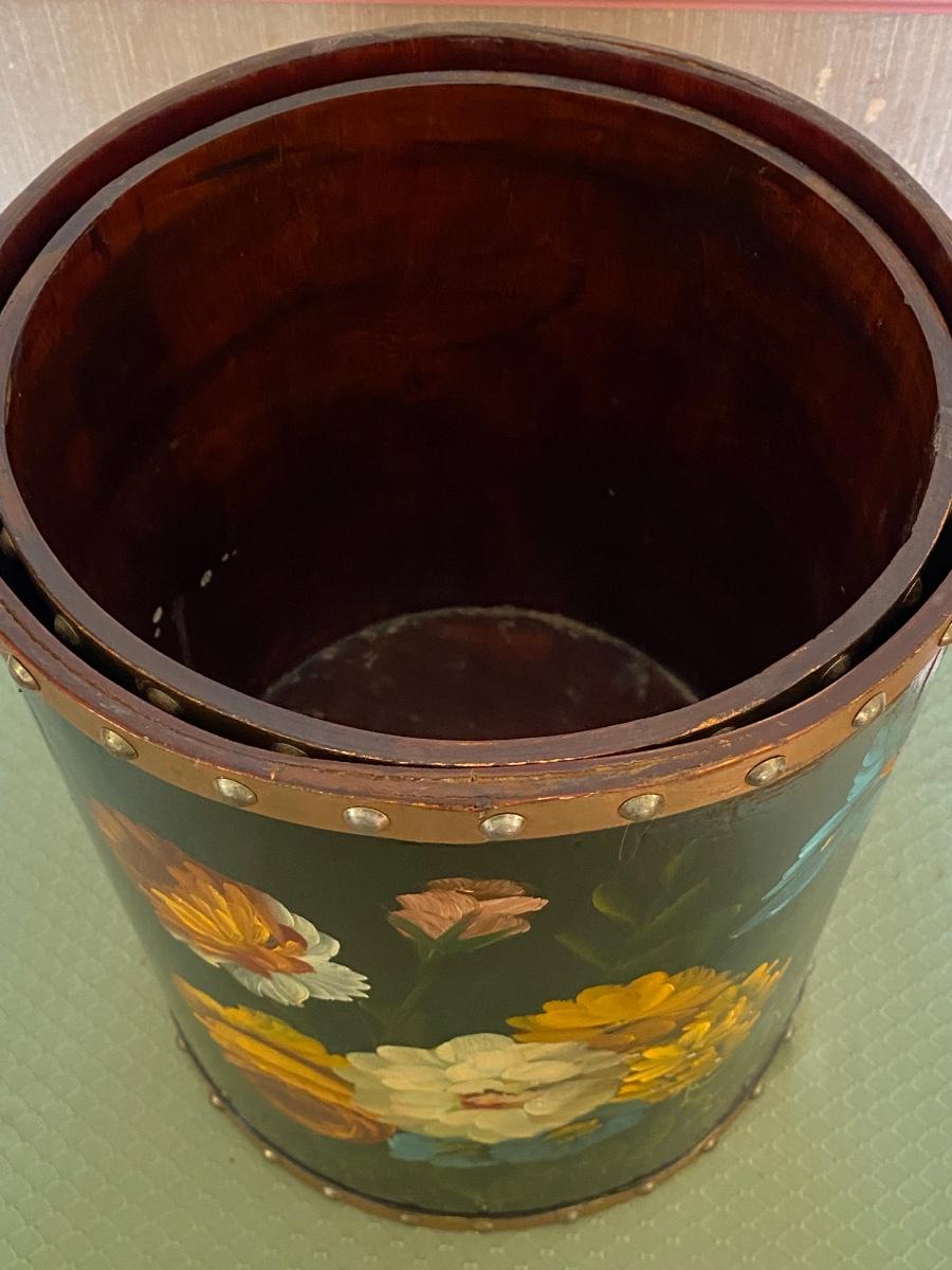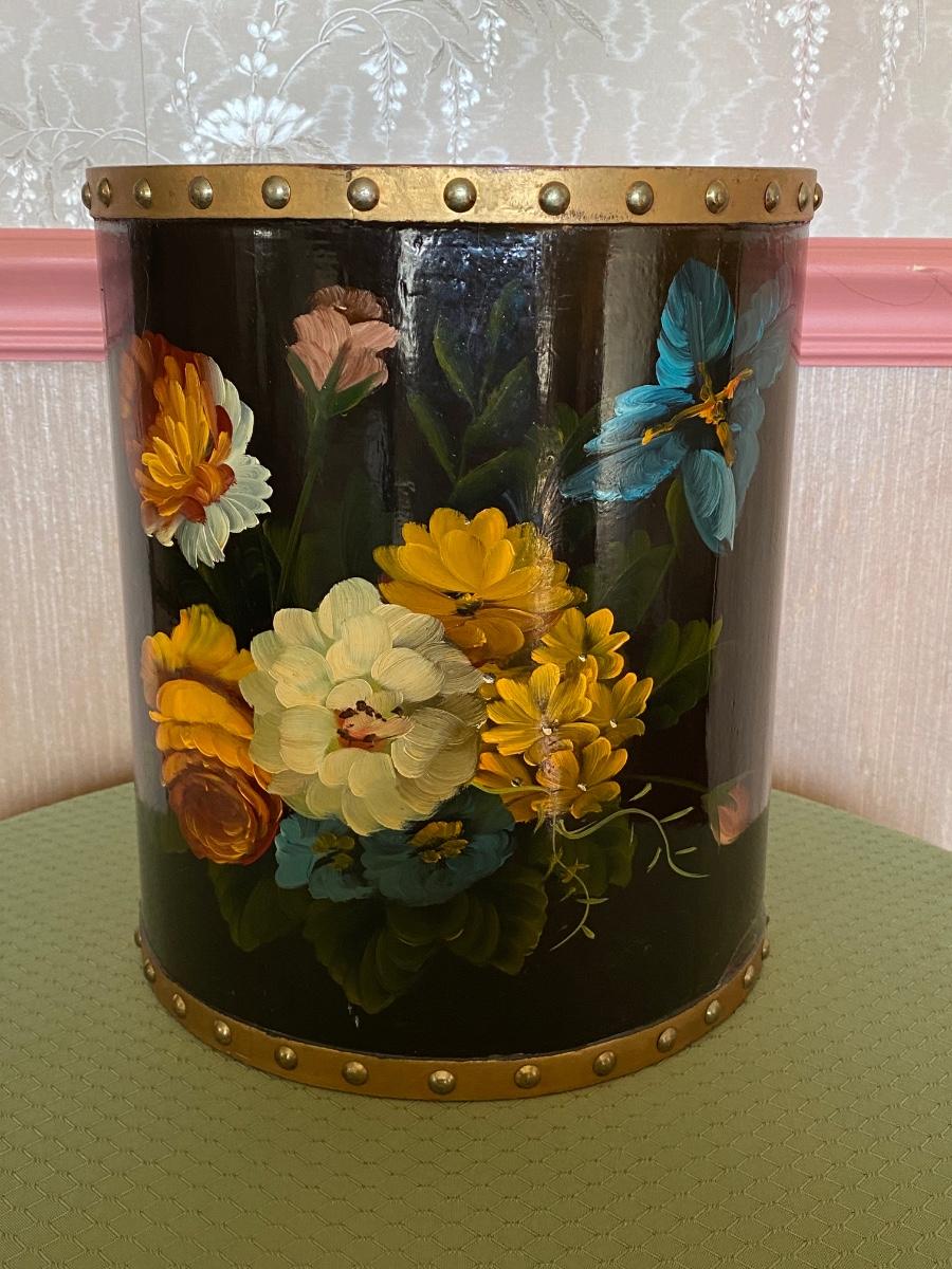 Includes two matching bins with floral designs. They measure about 10 and 11 inches tall.