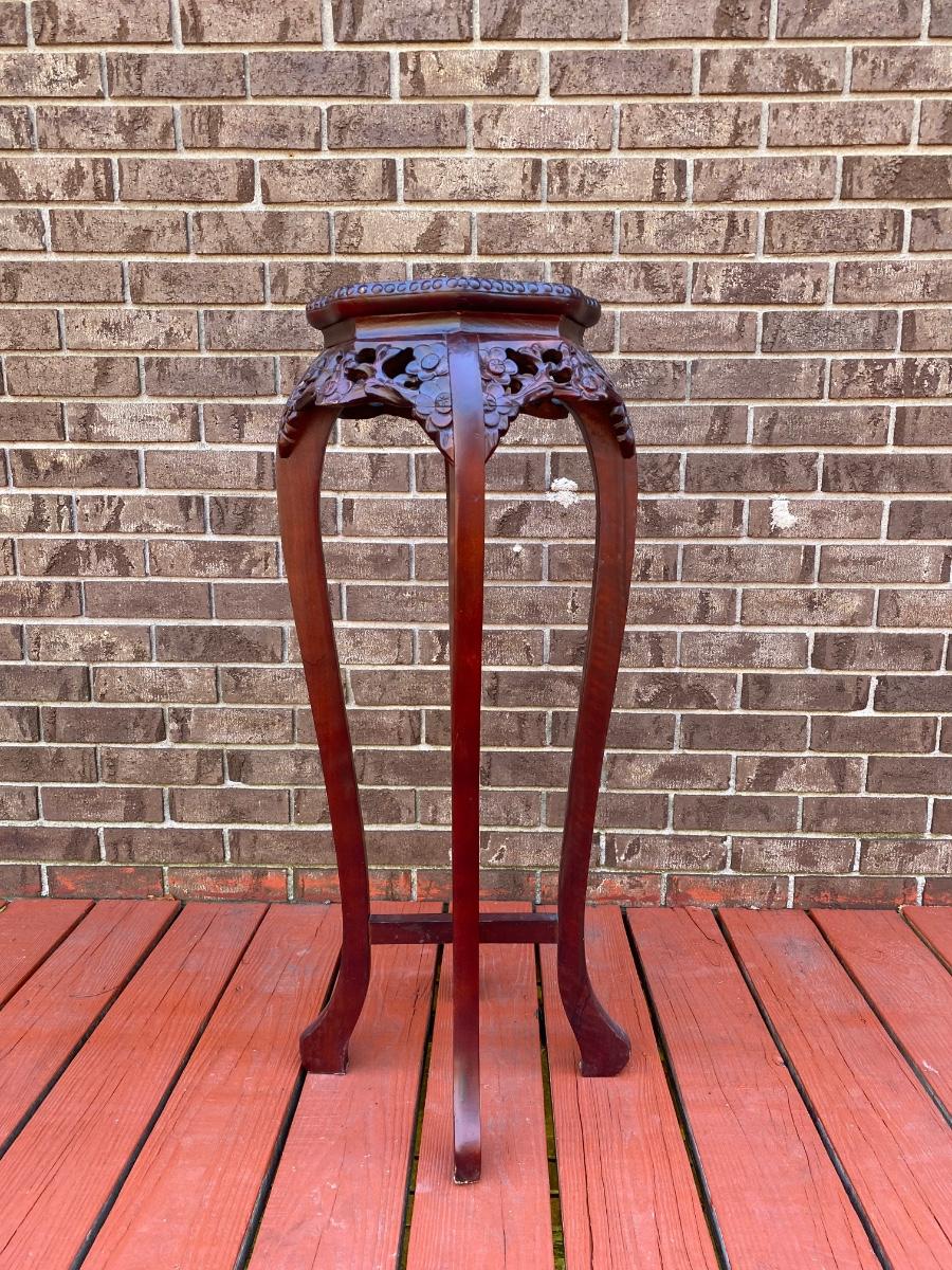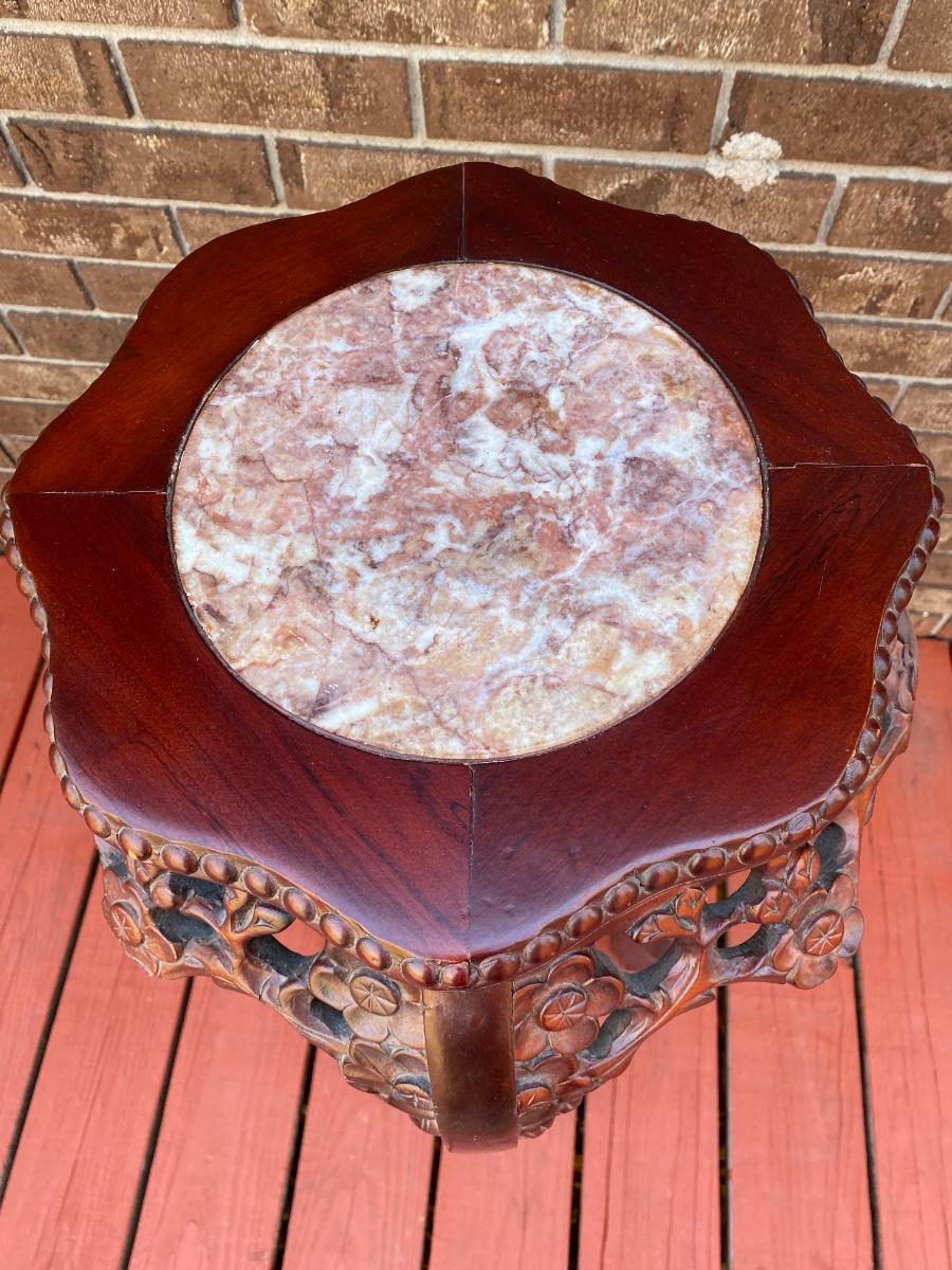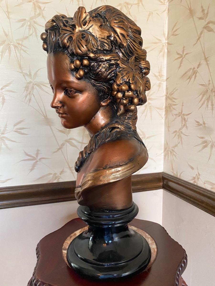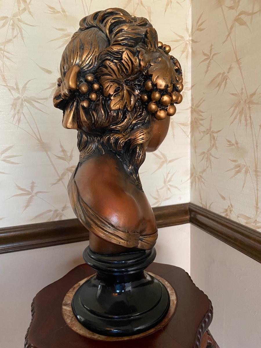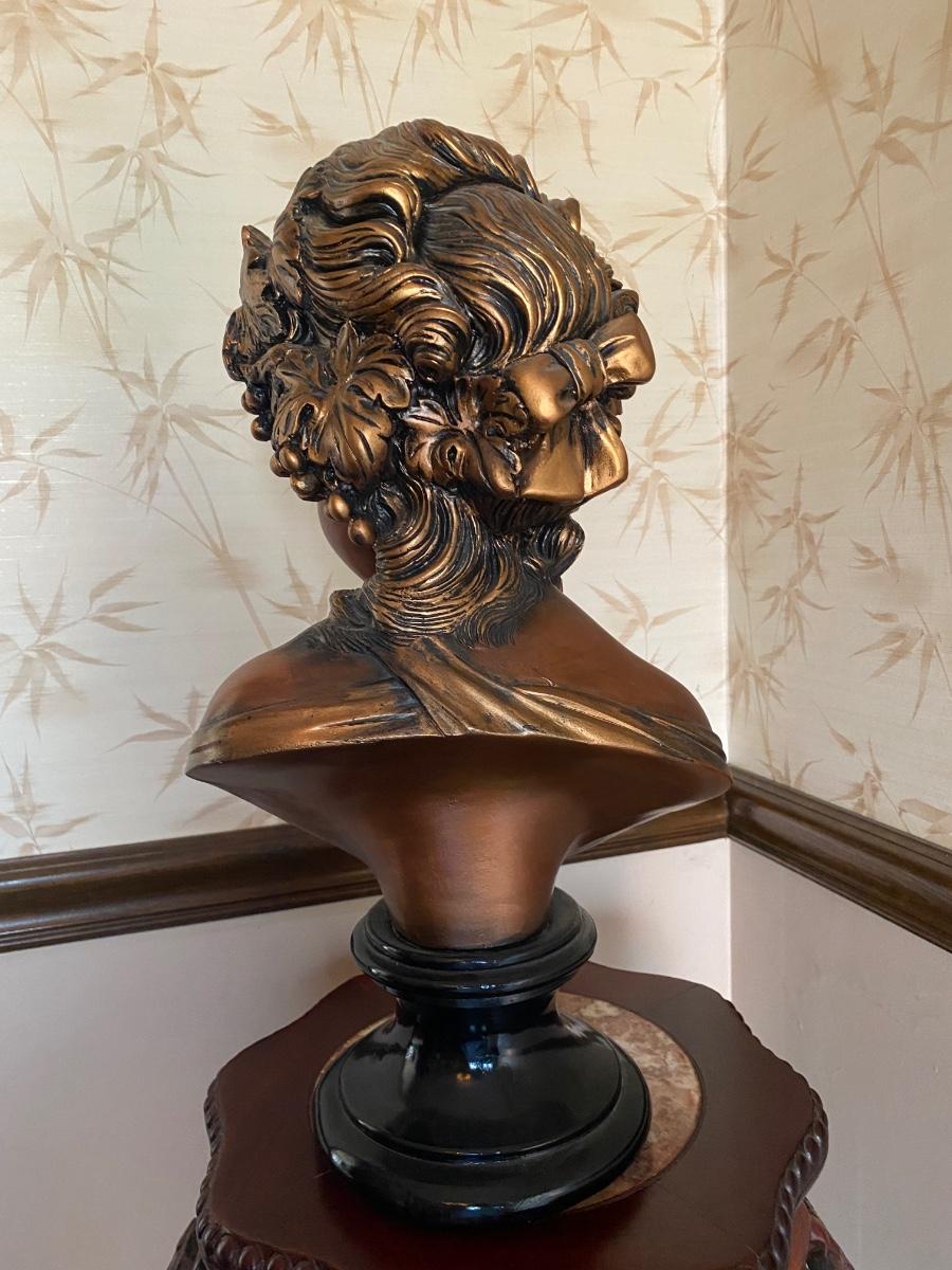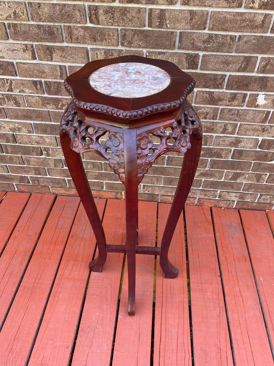 LOT 45C: Home Decor Bronze Bust & Marble Inlaid Carved Plant Stand