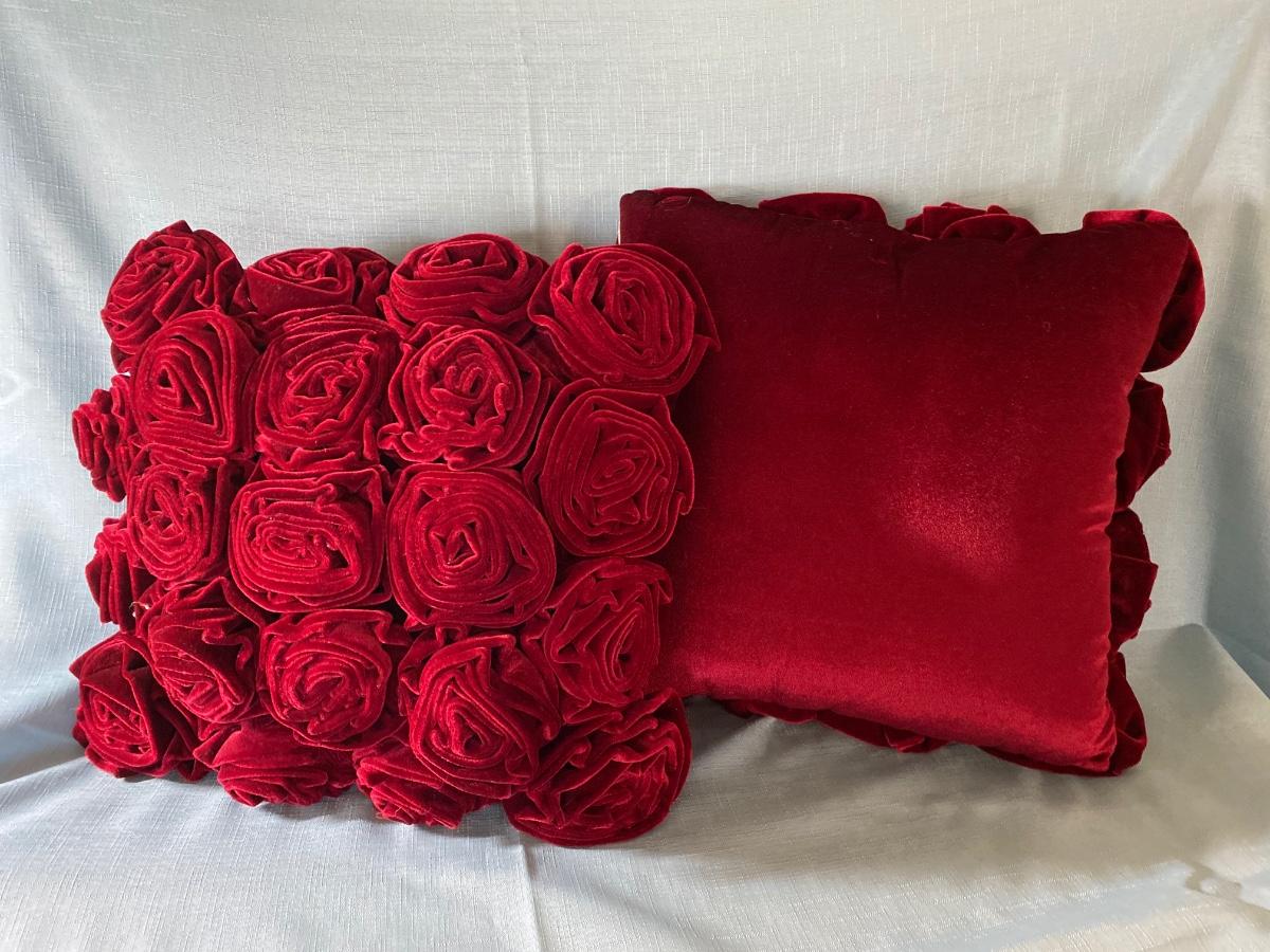 LOT 54C: Velvet 3-D Rose Throw Pillows