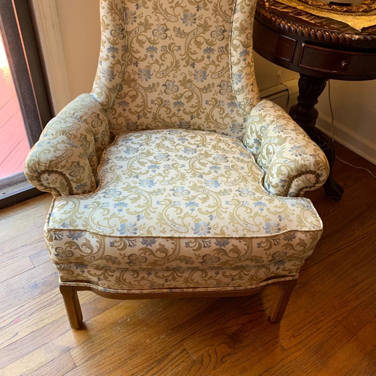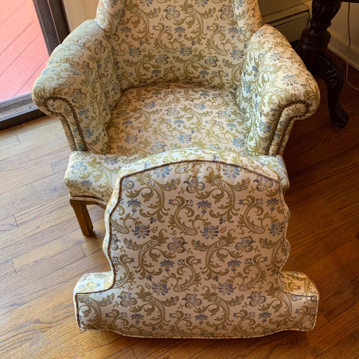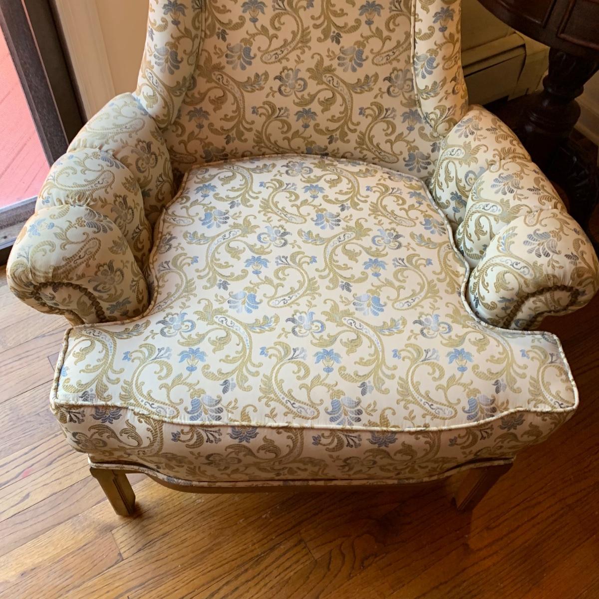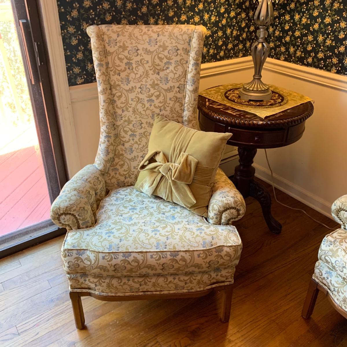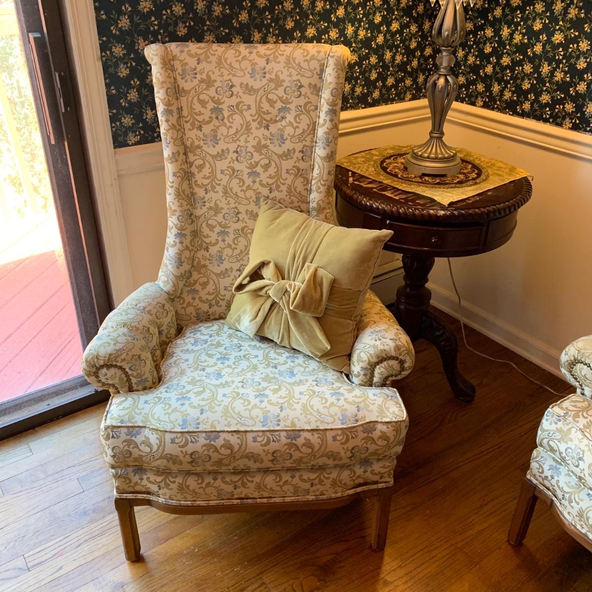 LOT 60R: Floral Wingback Chair w/ Throw Pillow