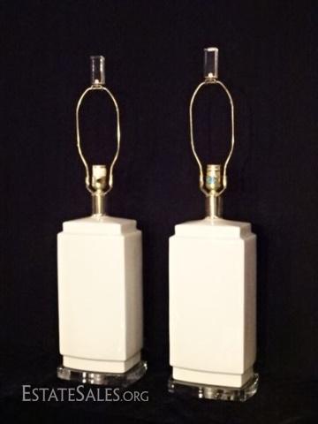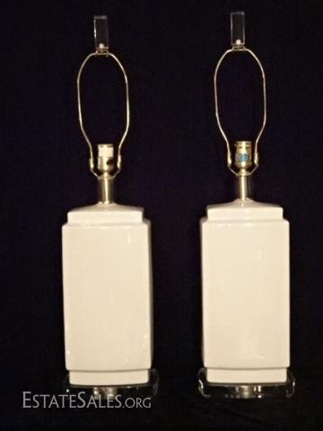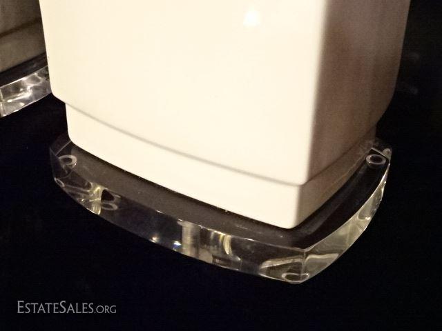 LOT 84A: PAIR WHITE CERAMIC AND LUCITE LAMPS