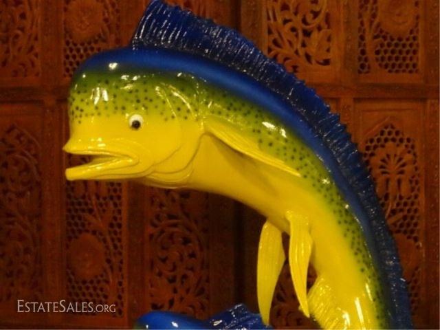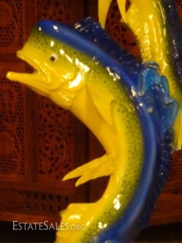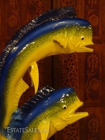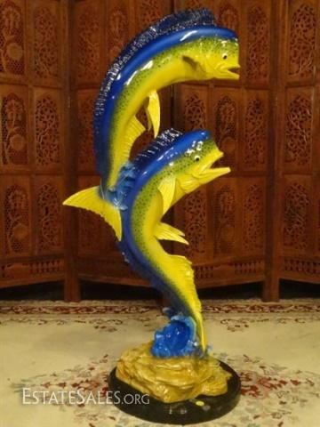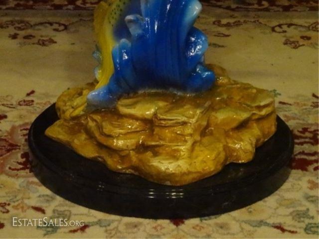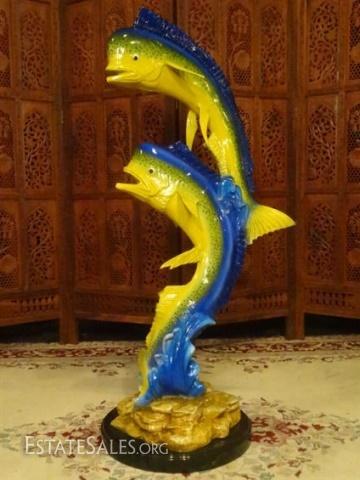LOT 84B: MONUMENTAL BRONZE SCULPTURE, 2 MAHI MAHI ON MARBLE BASE, 42"H X 18"W X 13"D, SKU172.02