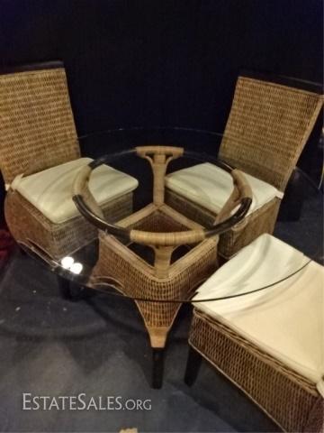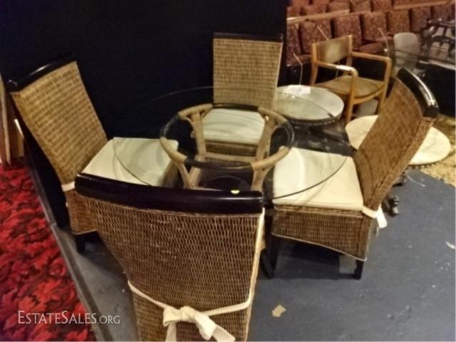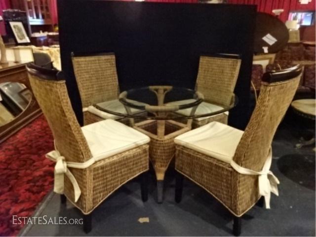 LOT 84C: 5 PC WICKER DINING SET, TABLE & 4 CHAIRS