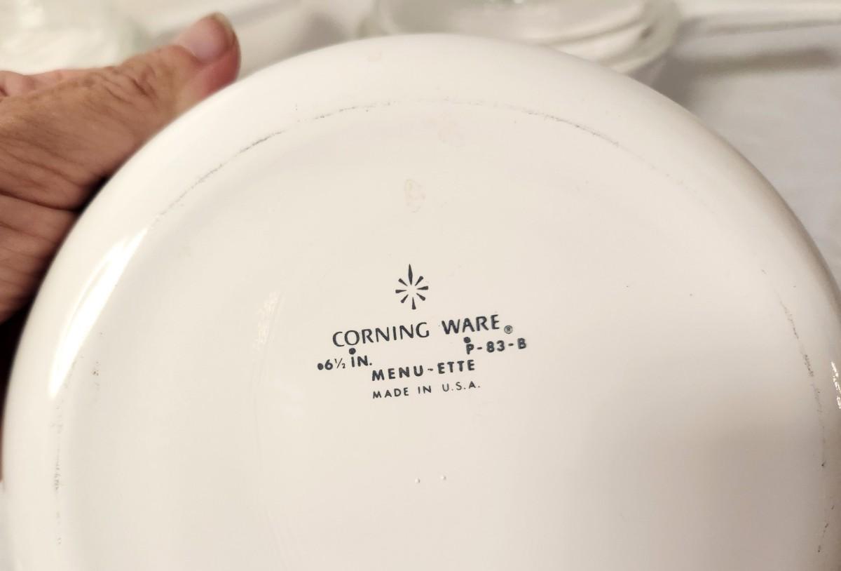 You get all you see here - 3 pieces of Corning Ware - 1 6.5" covered "Menuette", one covered 1 pint casserole, 1 covered 1.5" pint casserole. All in good condition.