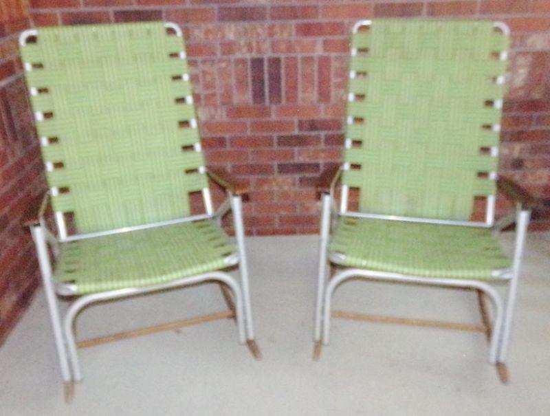LOT 85  TWO WEBBED PATIO ROCKING CHAIRS