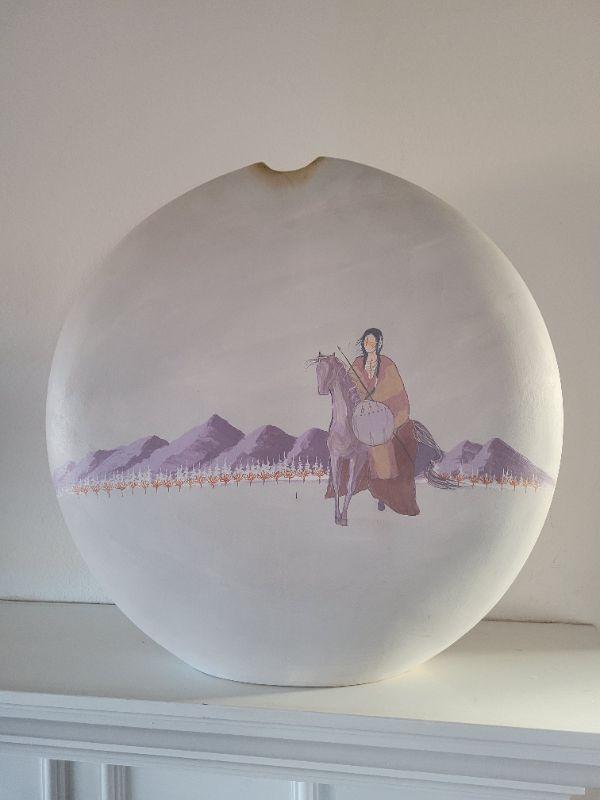 Lot #85: 19" Tall Handpainted Fine Art NAVAJO Adakai Pottery Vase "First Winter Hunt" SIGNED