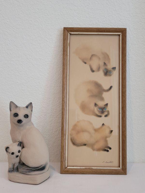 Lot 85; Vintage C. COUNTER Print & Sculpted Treasures Cats (kitten missing an eye)