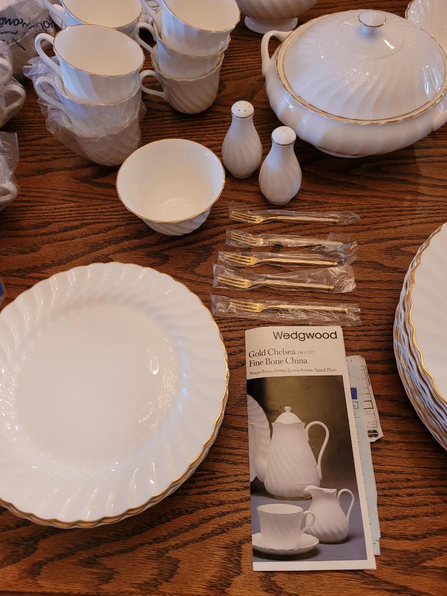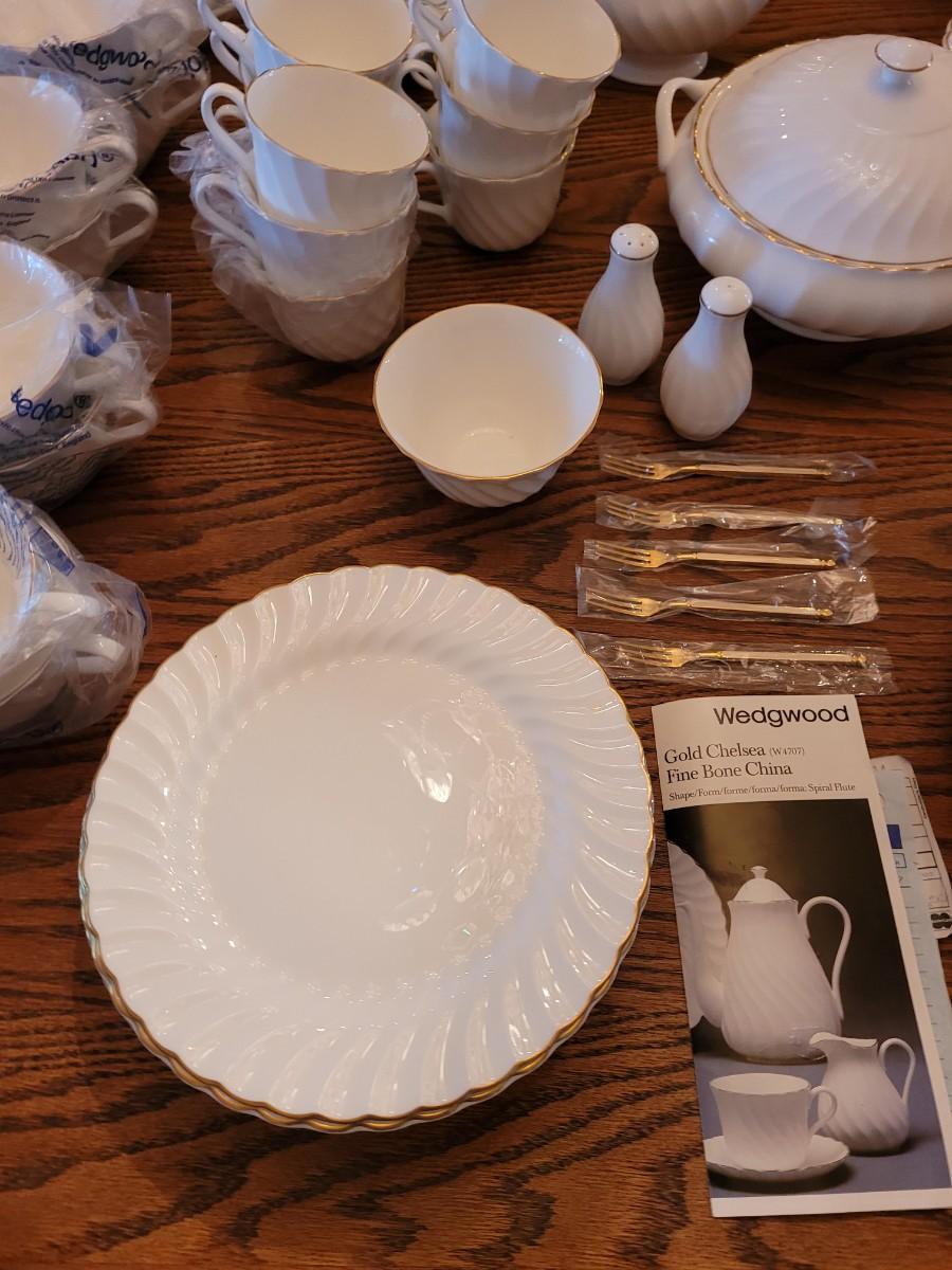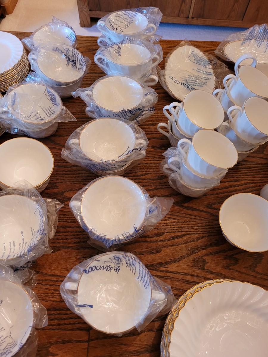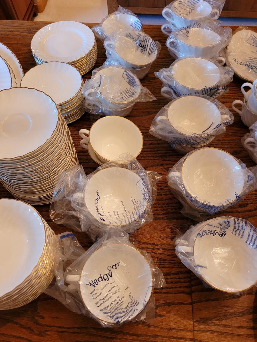 Lot 85: Wedgwood Gold Chelsea (many pieces still New in original packaging)